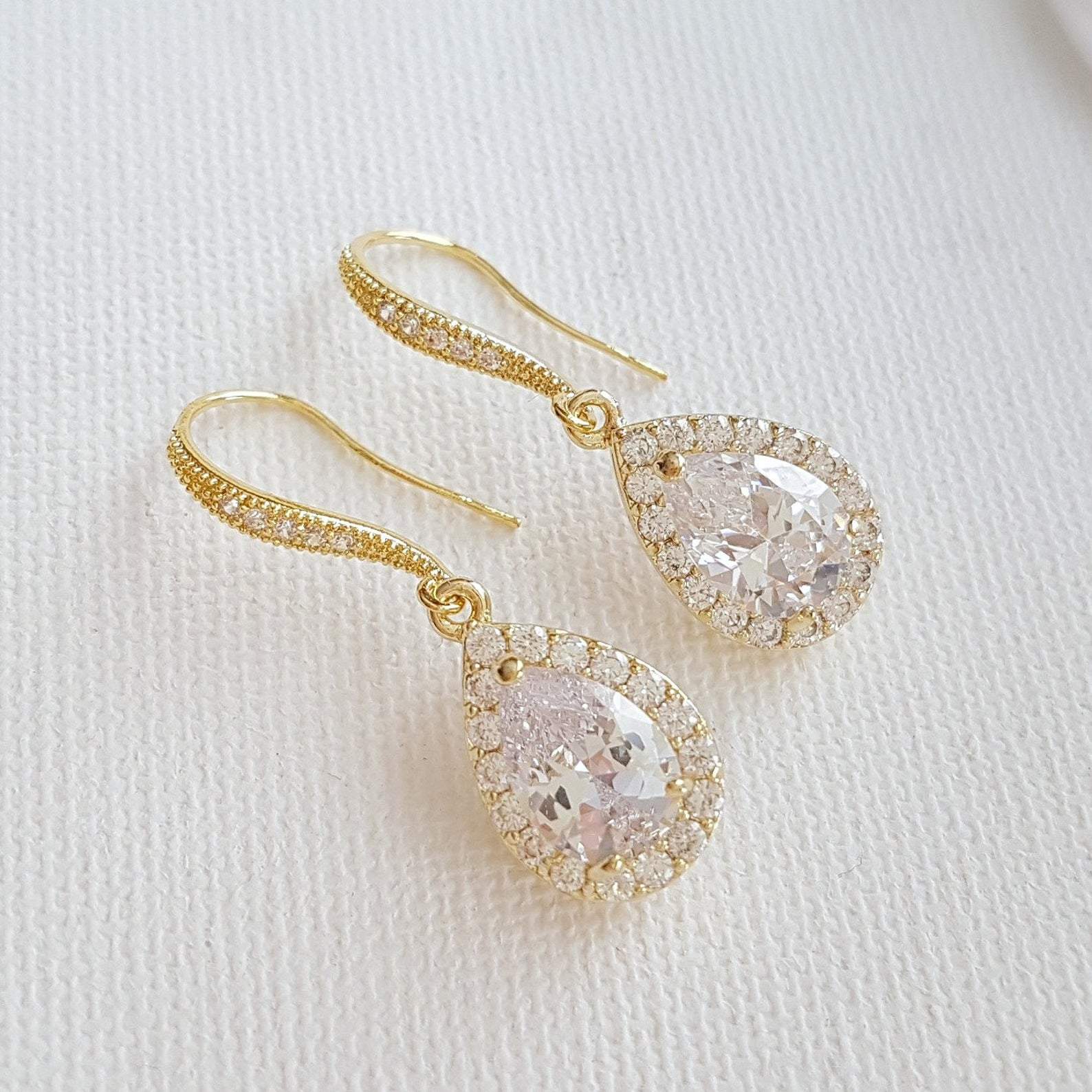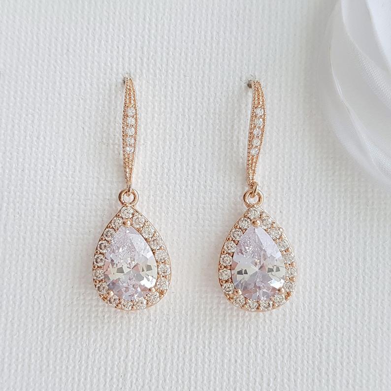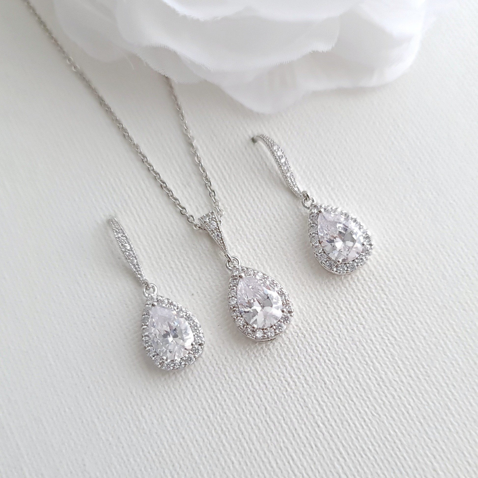 These dangle earrings set are gorgeous on bridesmaids and brides. If you are looking for simple wedding jewelry set with bling these are just perfect. They are also available in three finishes of silver, gold, and rose gold to perfectly match with your wedding style or looks.