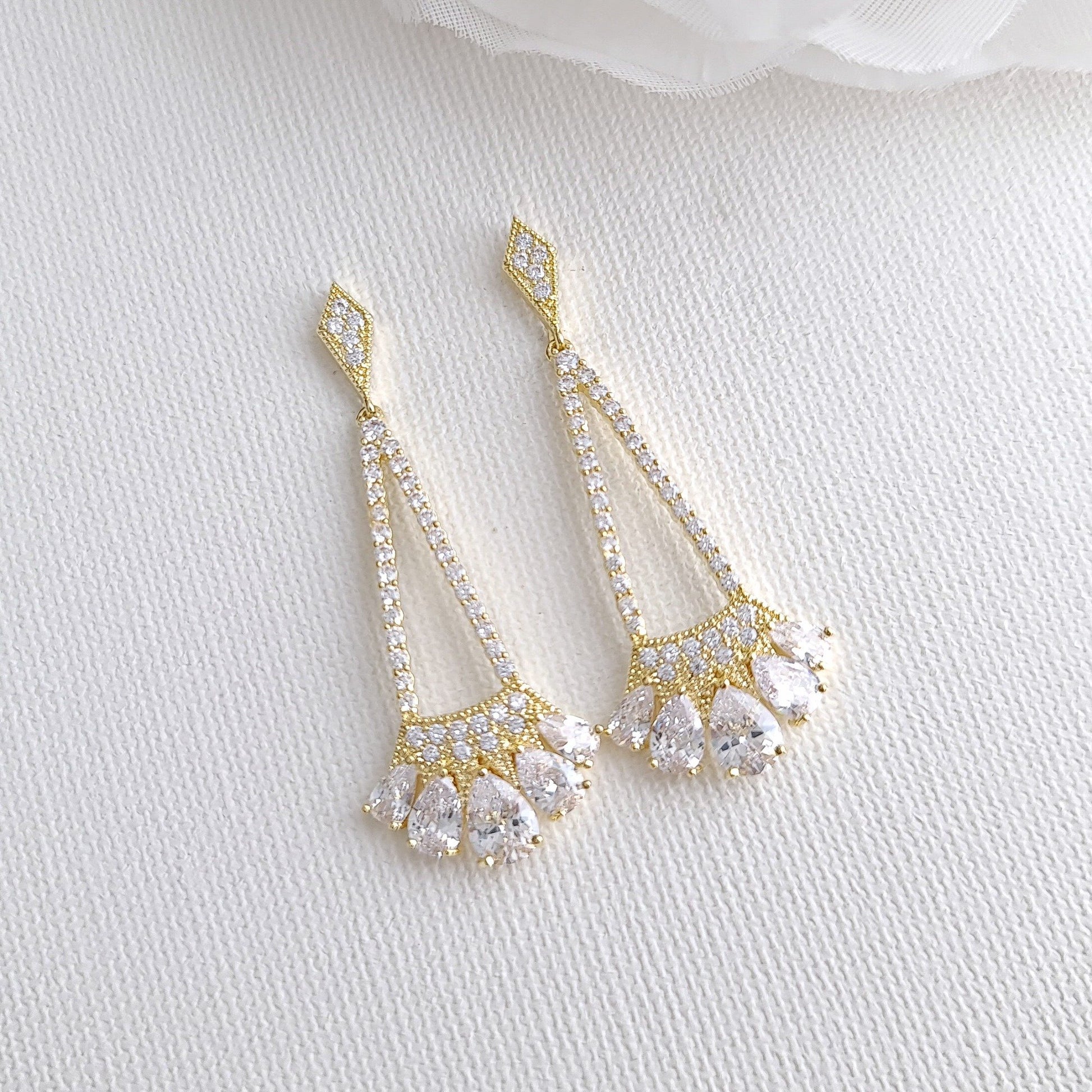 If you are looking for trendy wedding jewelry set with a long necklace pendant drop and a long pair of earrings? Then, this beautiful and delicate pendant and earrings set in rose gold for both brides and your bridal party.