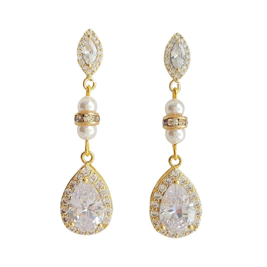Pendientes colgantes de cristal dorado para bodas- Sarah