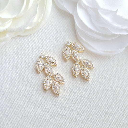 Aretes de hoja de oro con circonitas cúbicas - Abby
