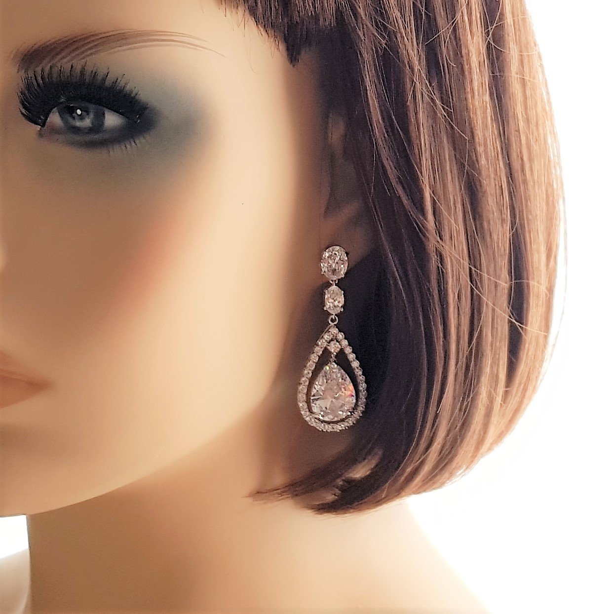 Pendientes de lágrima con circonita cúbica para novias y damas de honor