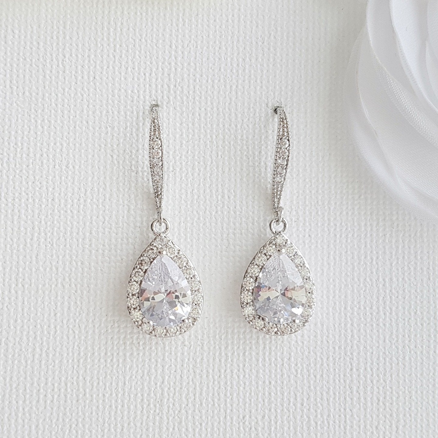 Pendientes colgantes de lágrima en plata con circonitas cúbicas para novias y damas de honor