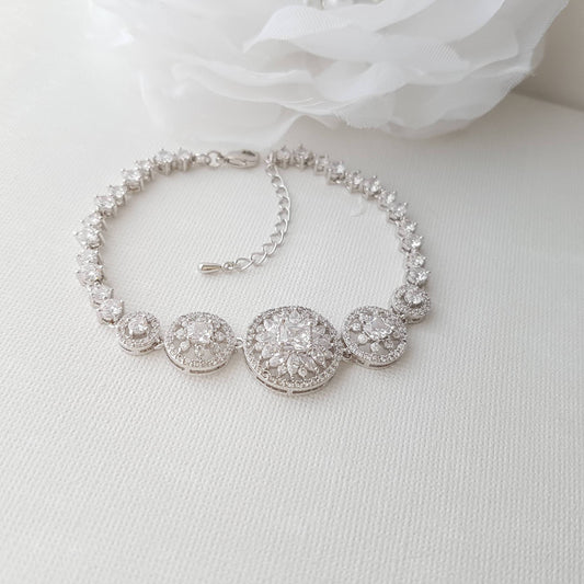 Pulsera nupcial, pulsera de boda redonda, pulsera de boda de cristal, pulsera de circonita cúbica, estilo Halo, joyería nupcial, Adonia