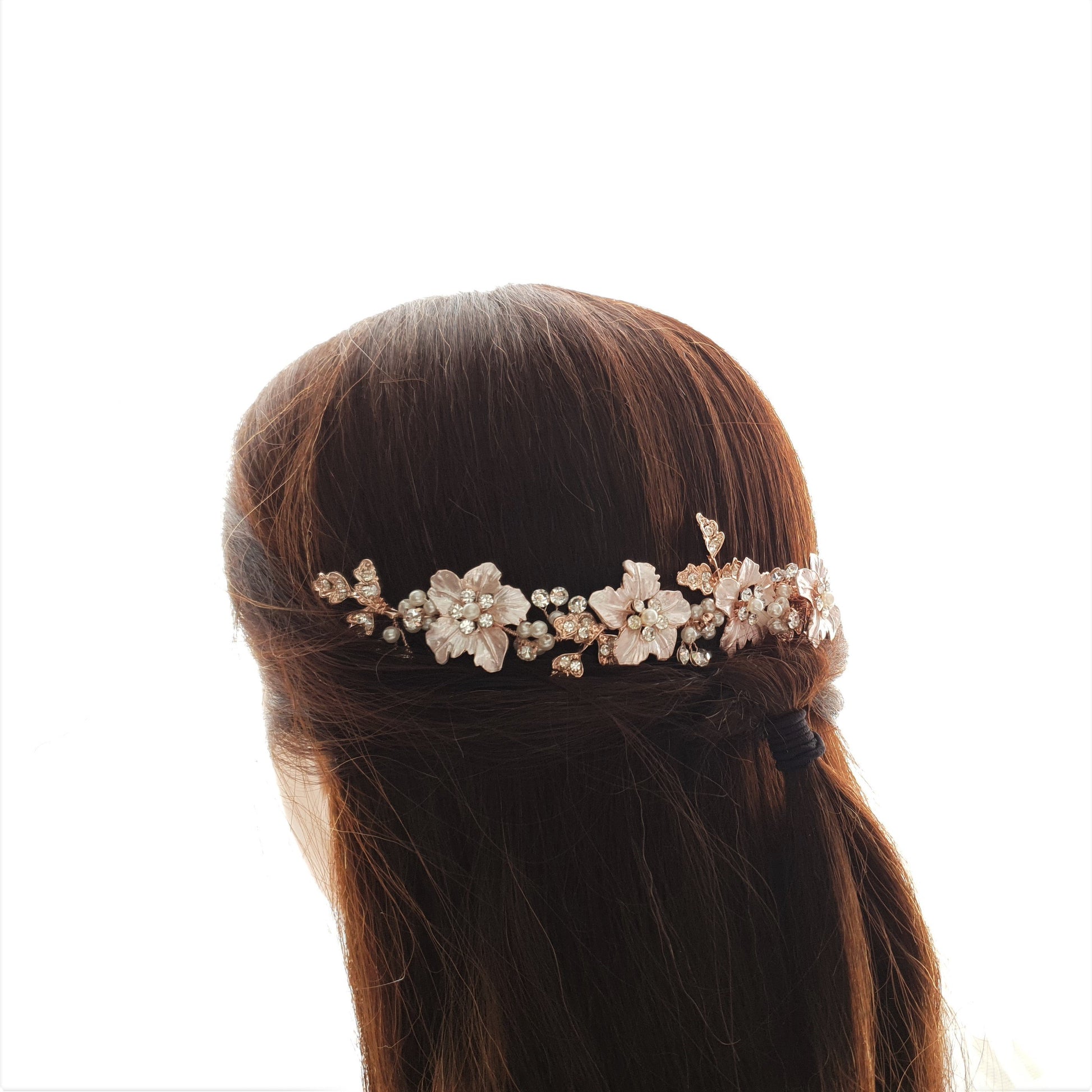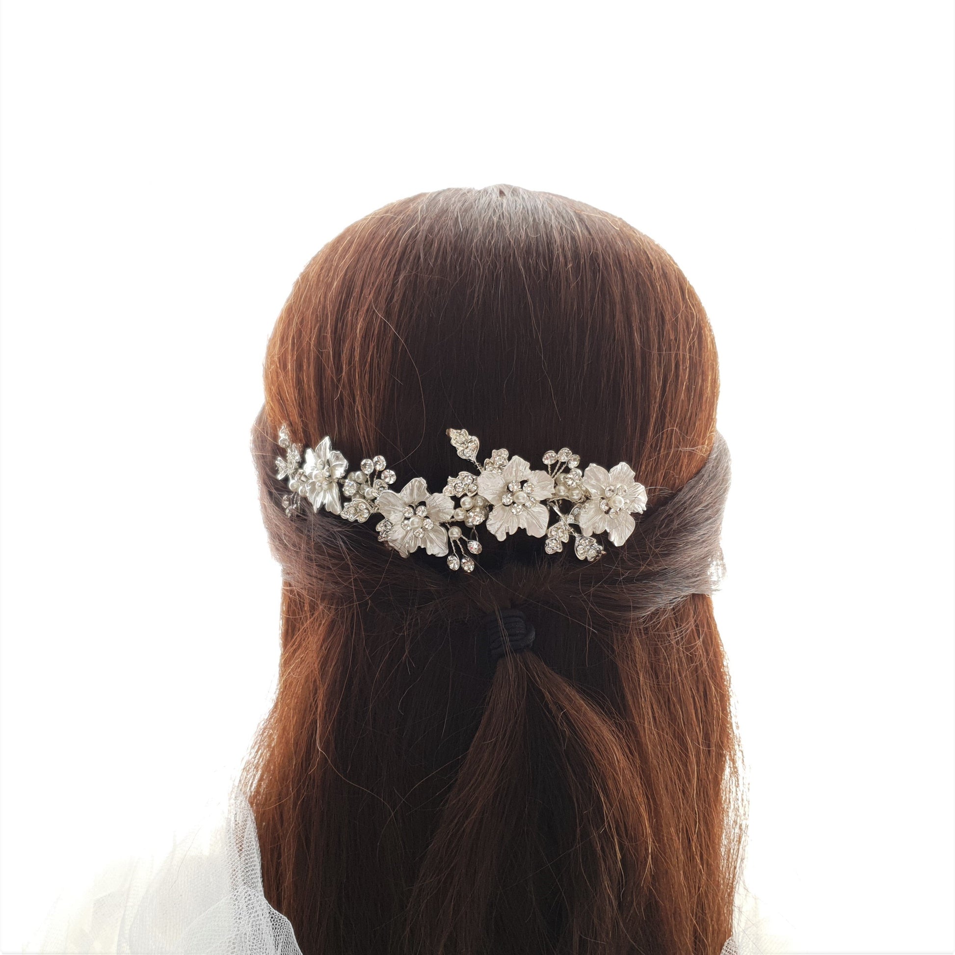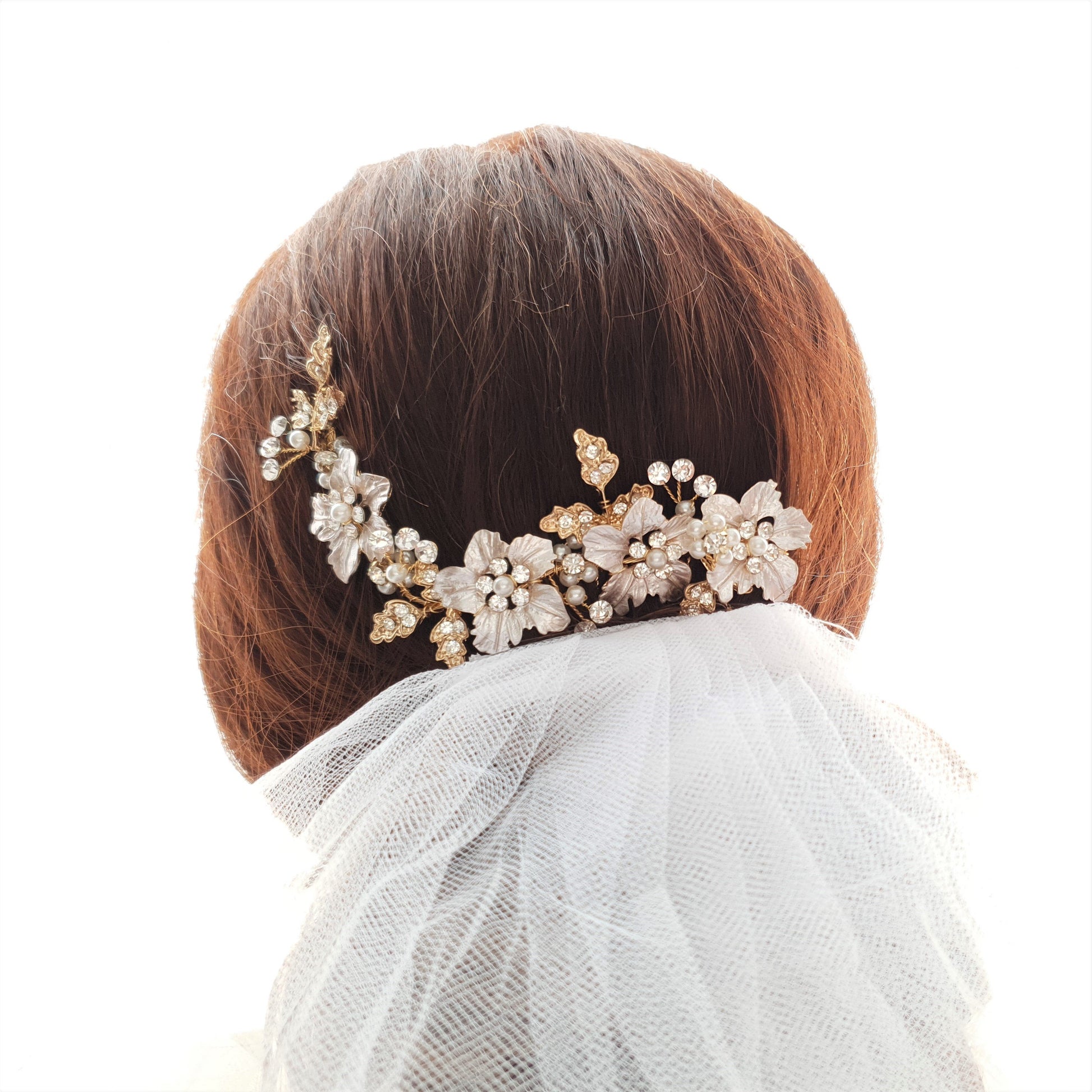 Un magnifique peigne à cheveux à considérer et à ajouter un motif floral à votre look de mariée.