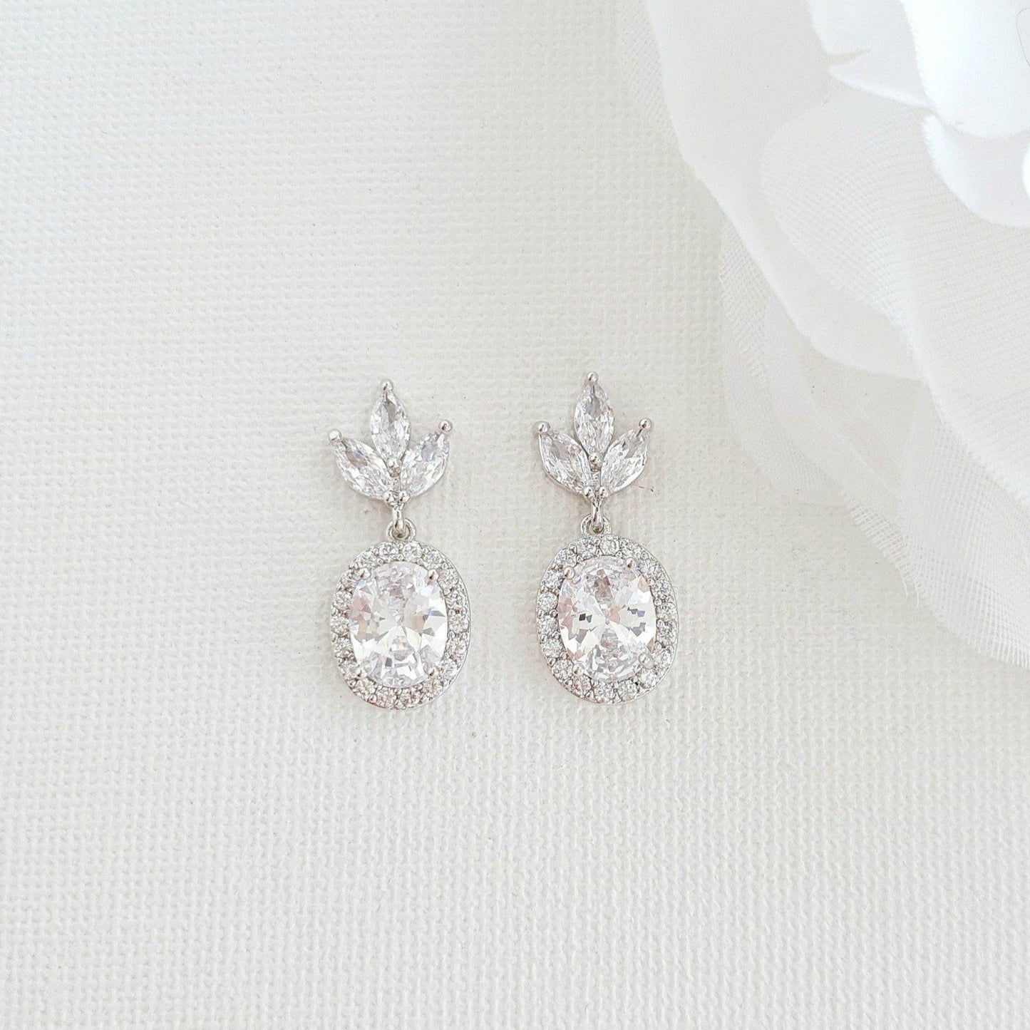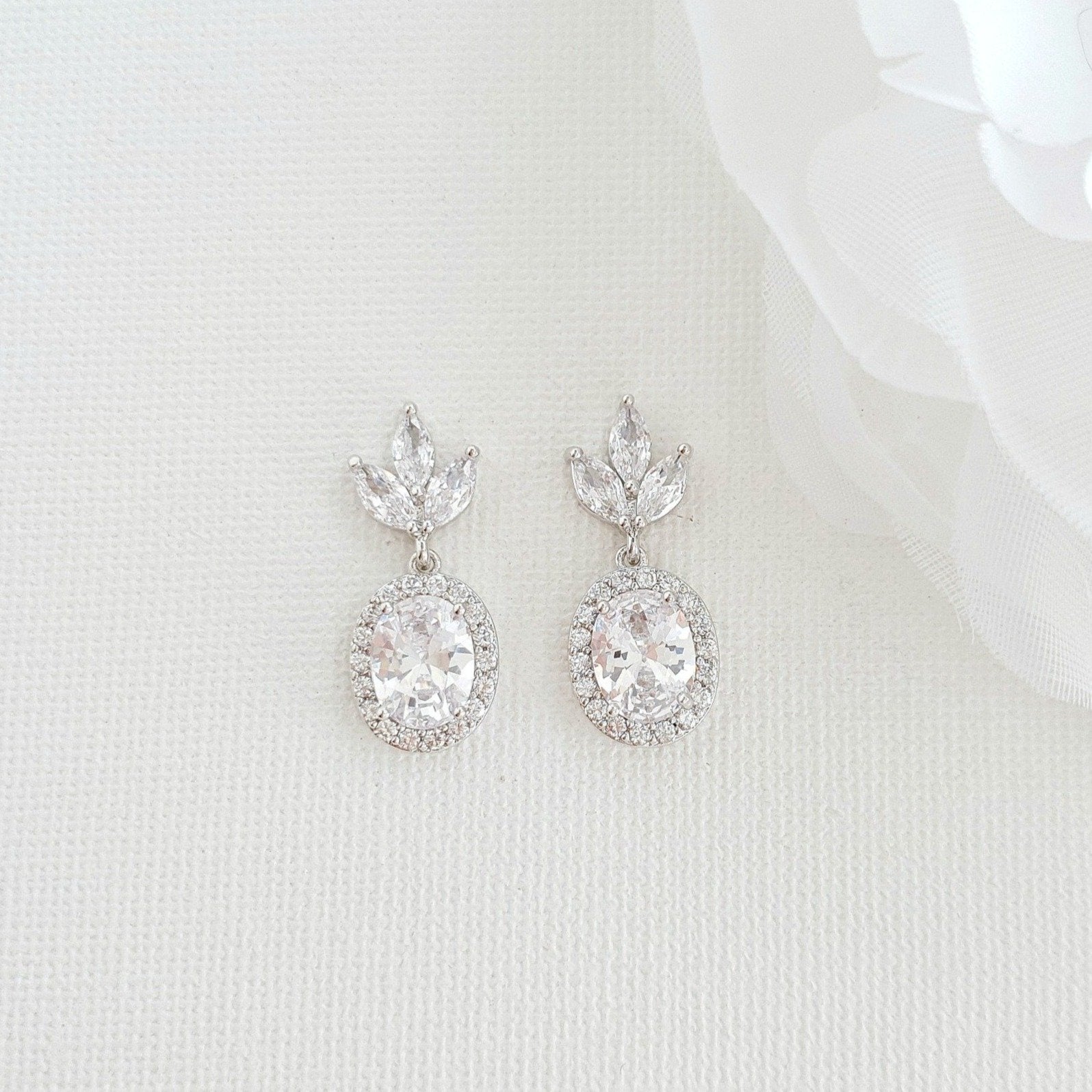 Boucles d'oreilles – Cet ensemble de bijoux comprend une paire de boucles d'oreilles délicates et étincelantes. Le dessus d'oreille est réalisé en zircone cubique marquise en forme de feuille avec une goutte ovale.