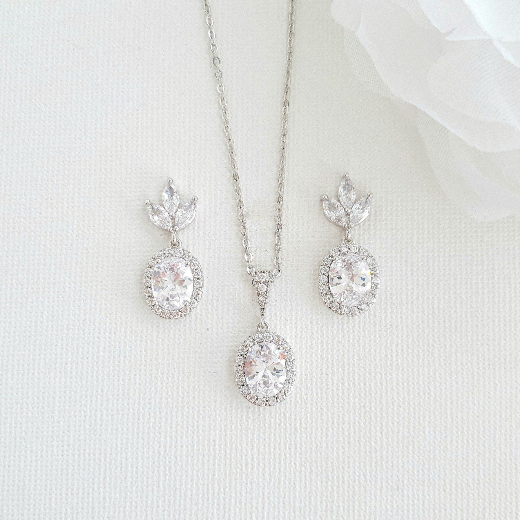 Si vous recherchez un ensemble de petites boucles d'oreilles et un collier de bijoux de demoiselle d'honneur ou quelque chose de simple et délicat pour vous en tant que mariée le jour de votre mariage. C'est le magnifique ensemble de bijoux sur lequel vous ne pouvez pas vous tromper.