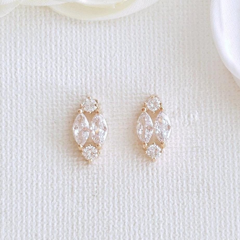 Small Diamond Shaped Gold Stud Earrings for Weddings