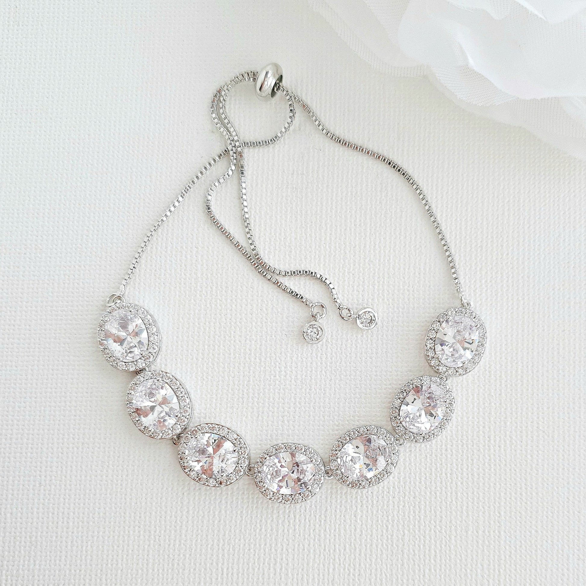 Bracelet- It is adjustable with slider clasp and will with wide or small wrist sizes. The oval crystals are in an array. Bracelet Measurement:- Crystal components on the bracelet measures 3 6/8th inches or 9.5 cms. Bracelet width is 10mm.