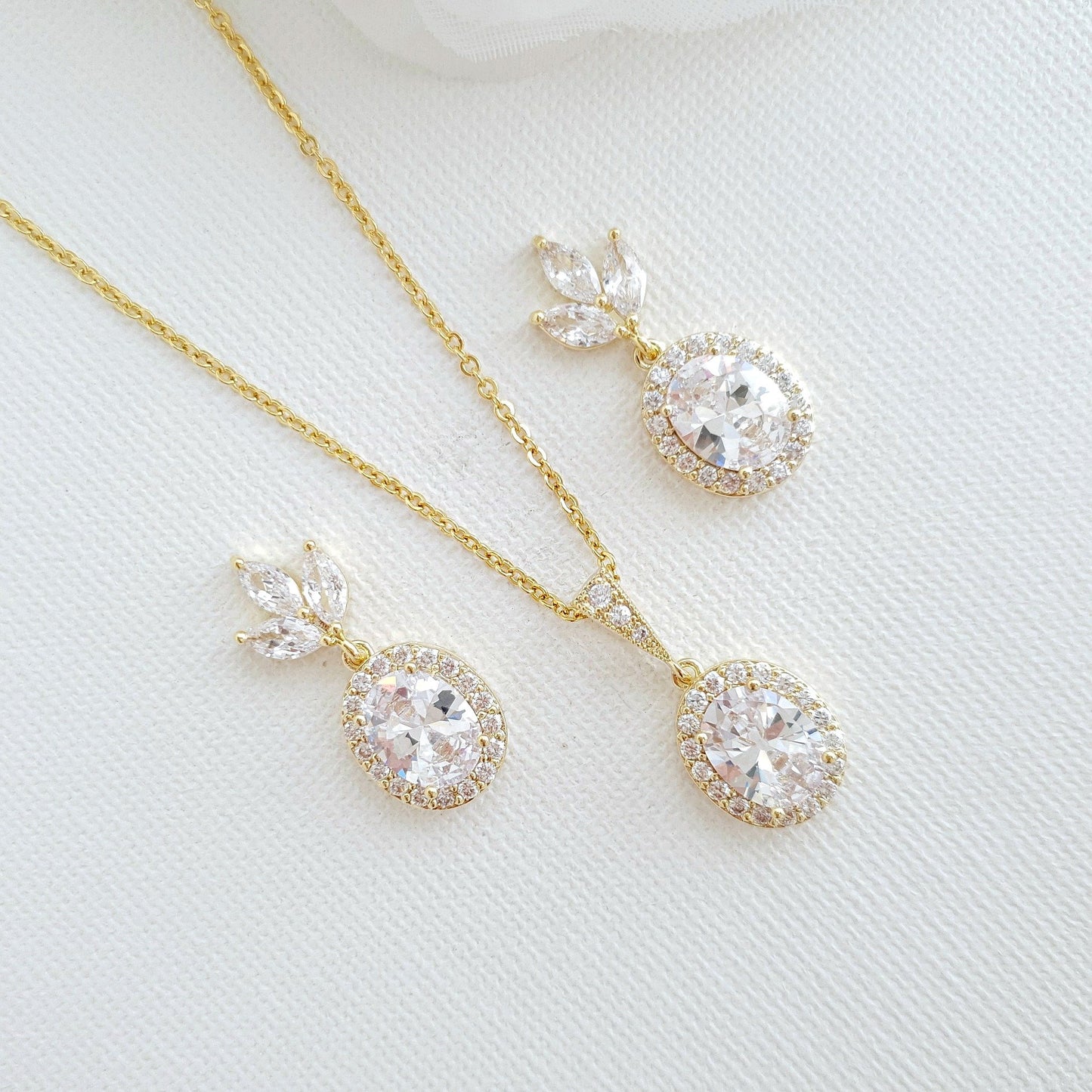 14K Gold Plated Oval Wedding Jewelry Set-Emily