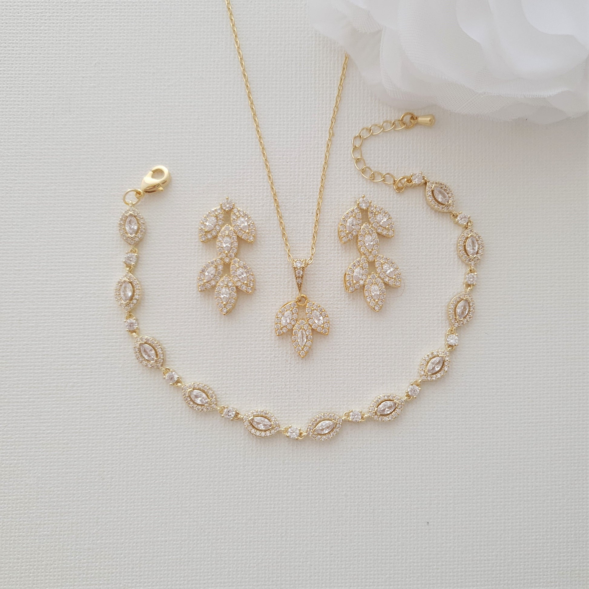 This combination of the bracelet, stud earrings, and a pendant necklace is great to gift on special days like birthdays and anniversaries and your bridesmaids.