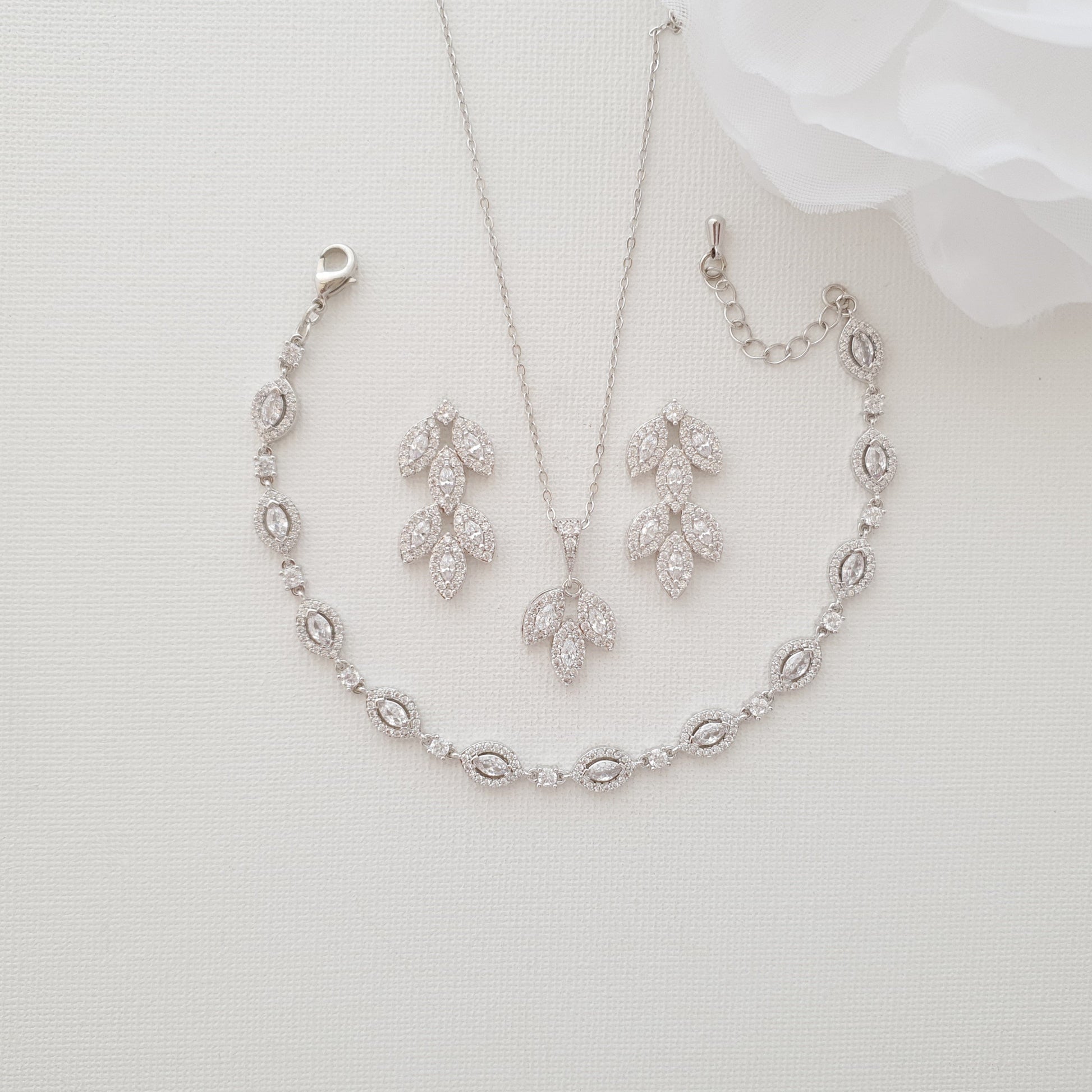 Bracelet Necklace & Stud Earrings Set for Brides & Bridal Party-Abby