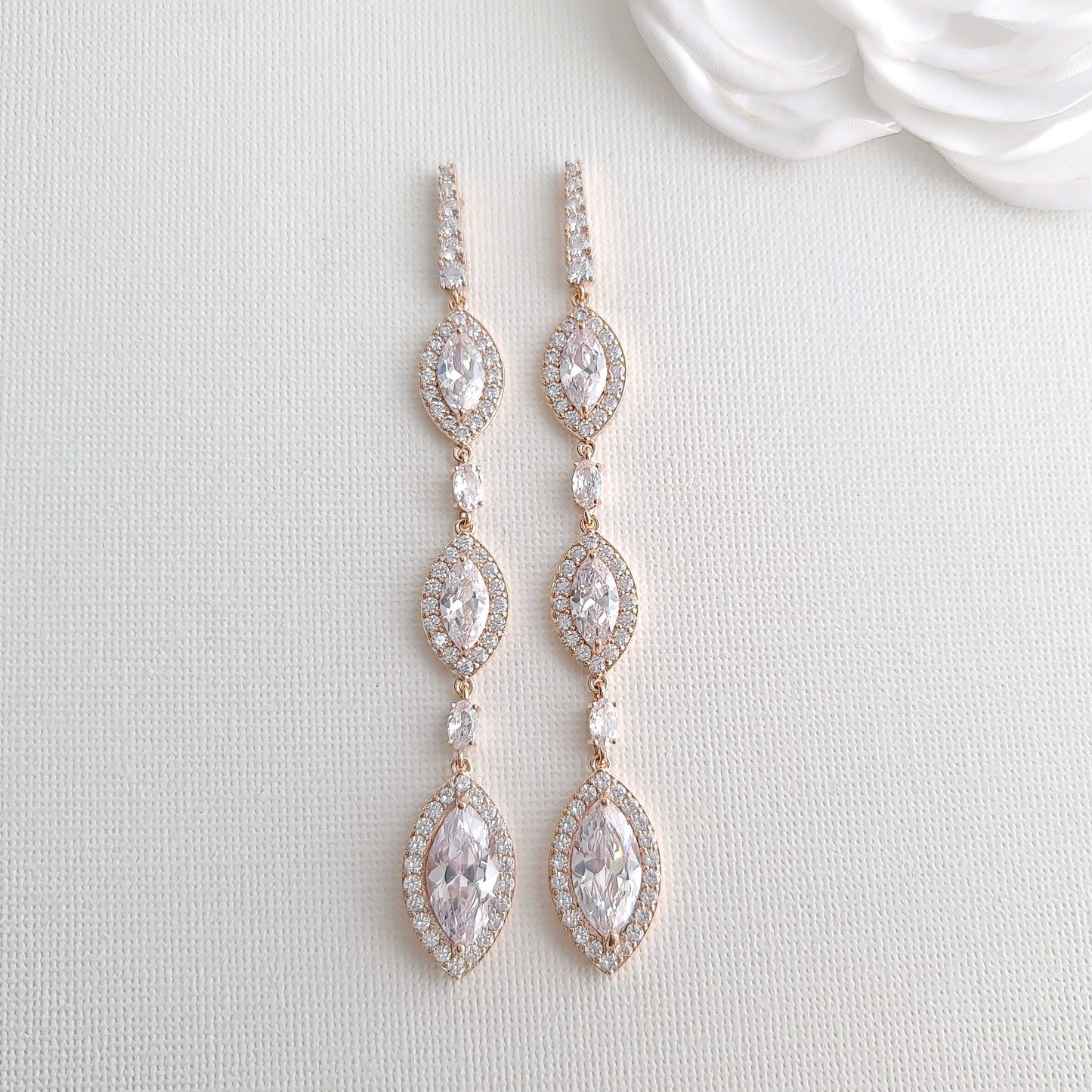 Wedding Bracelet Set with Long Statement Earrings, Pick your Jewelry Set in Silver, Gold & Rose Gold