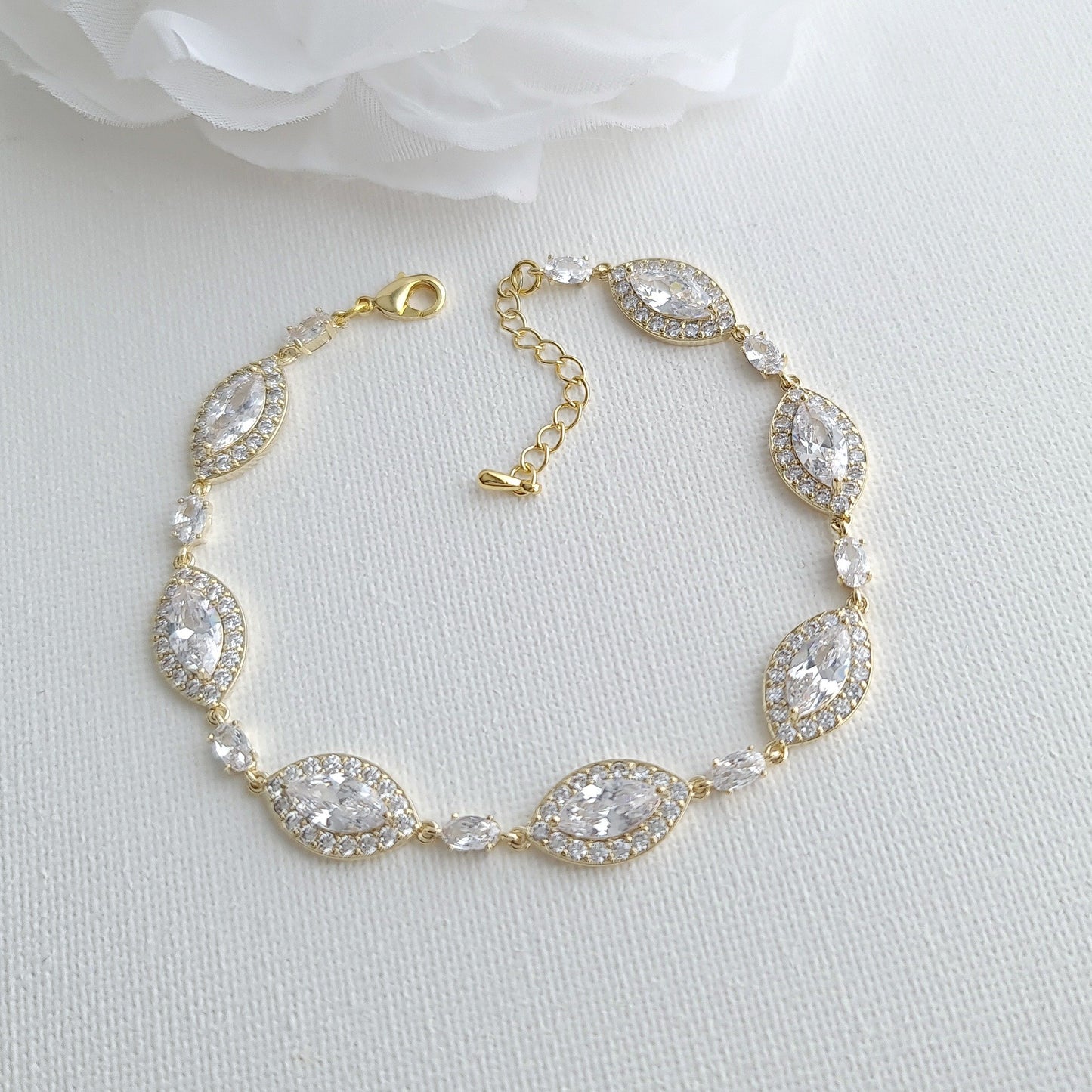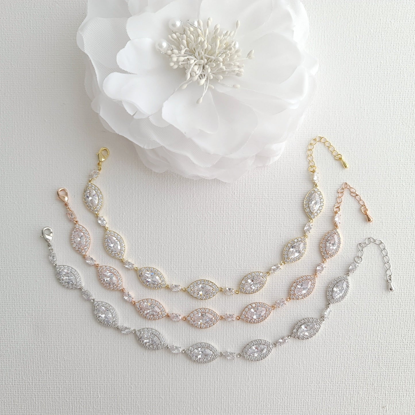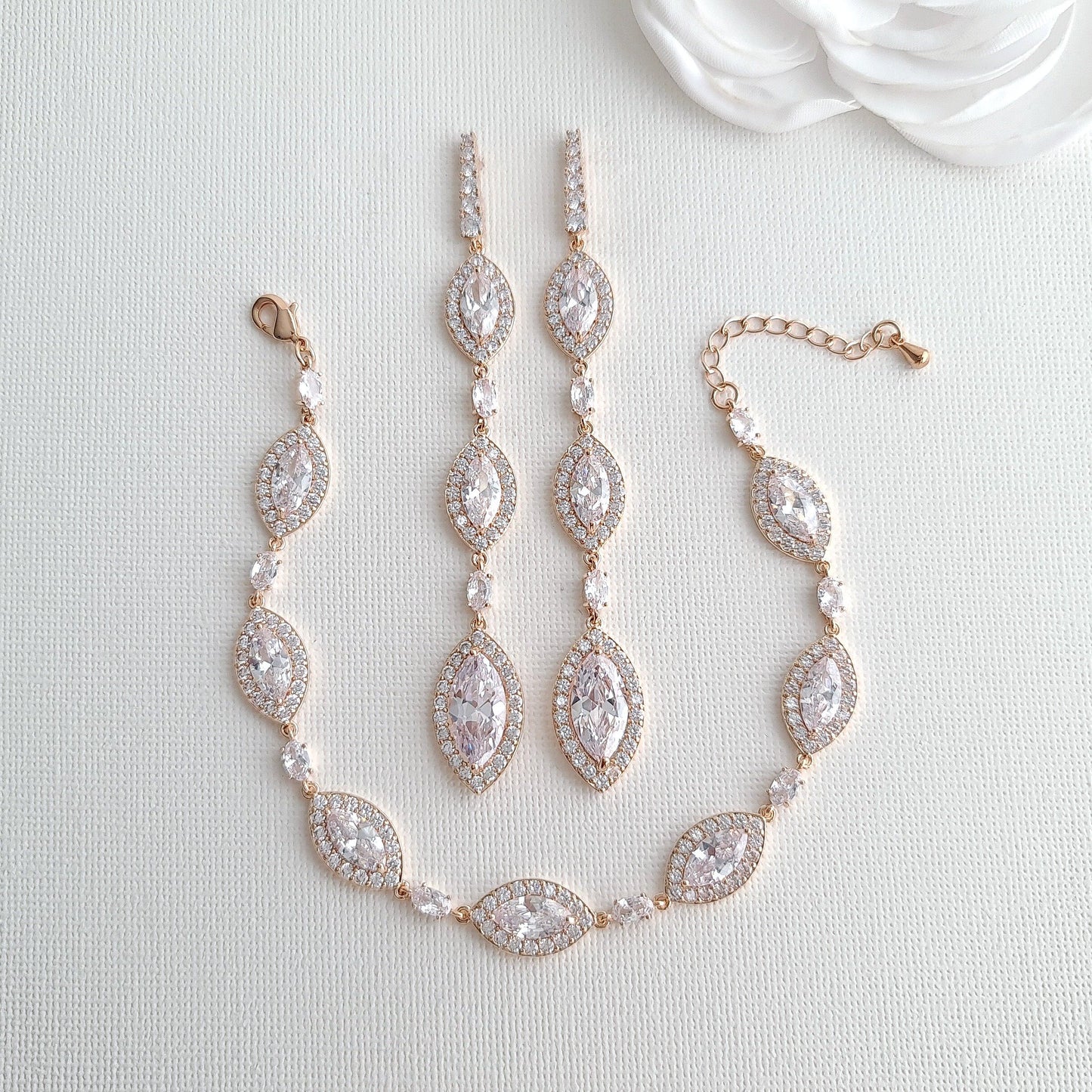 The bracelet and earrings are perfectly matched, sparkly, and are available in silver, gold, and rose gold for you to choose the perfect one that goes with your dress.