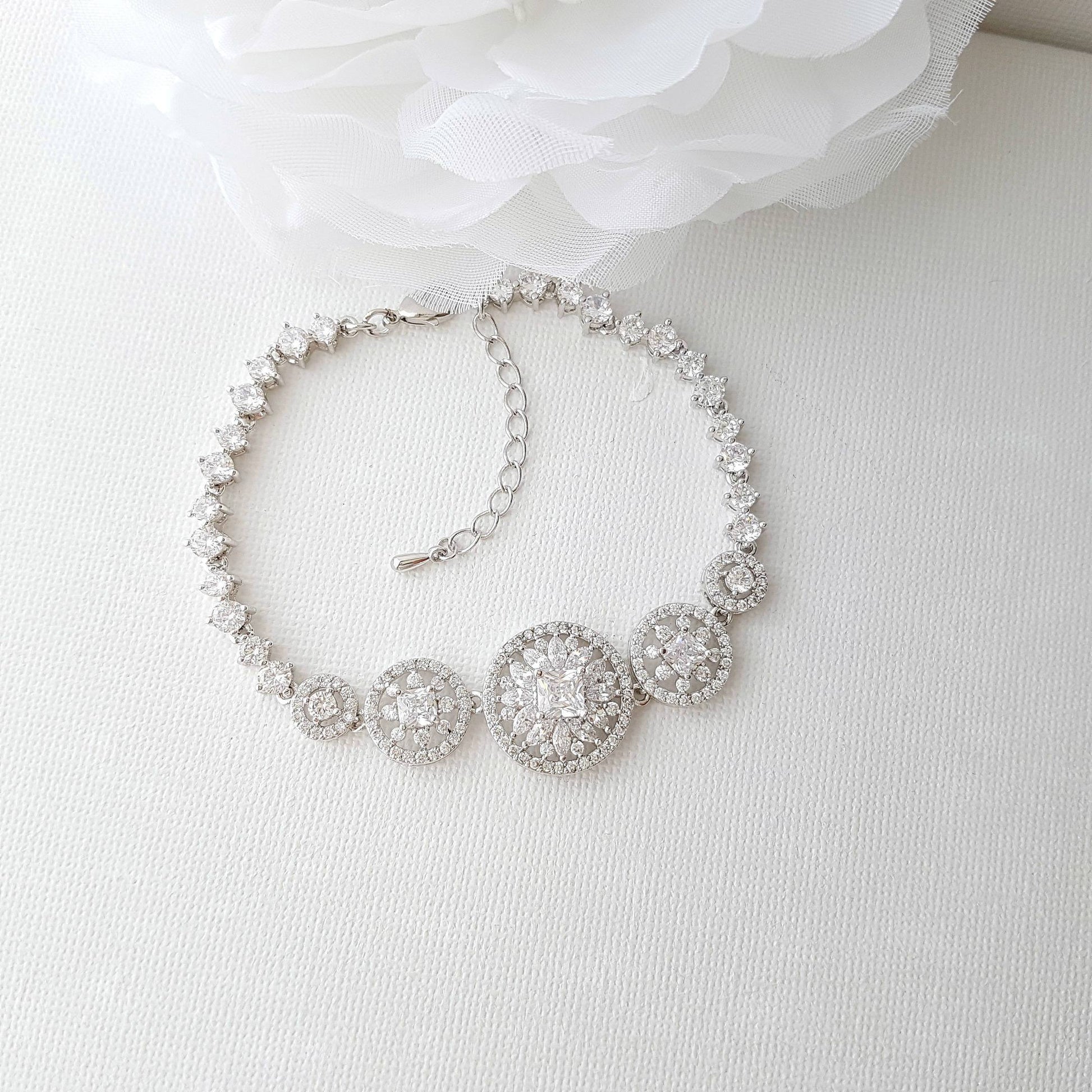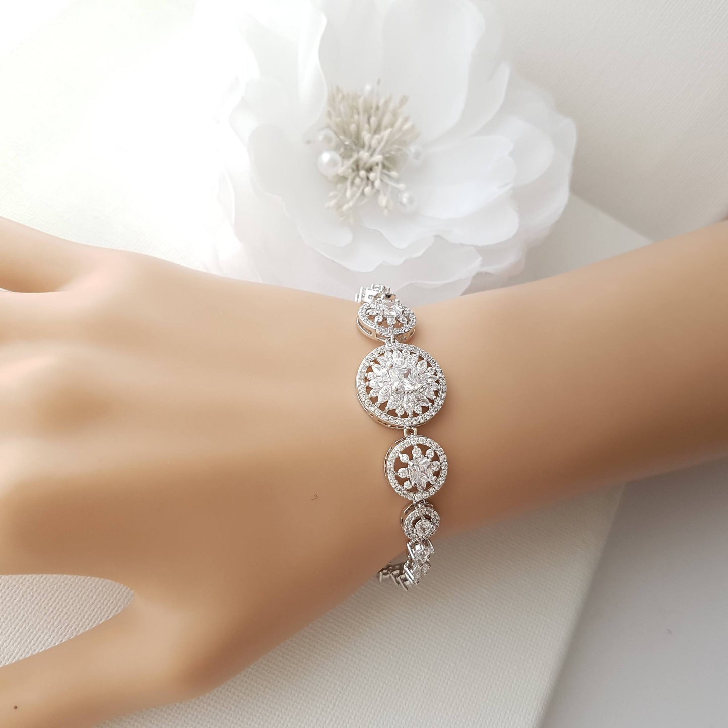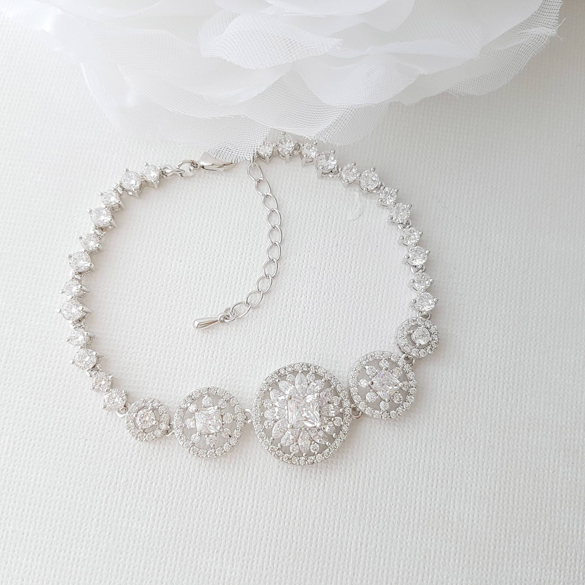 Bridal Bracelet, Round Wedding Bracelet, Crystal Wedding Bracelet, Cubic Zirconia Bracelet, Halo Style, Bridal Jewelry, Adonia