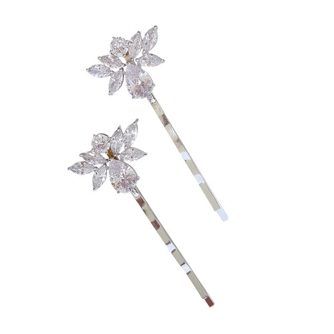 Bridal Hair Pins Crystal Pearl Silver-Nicole