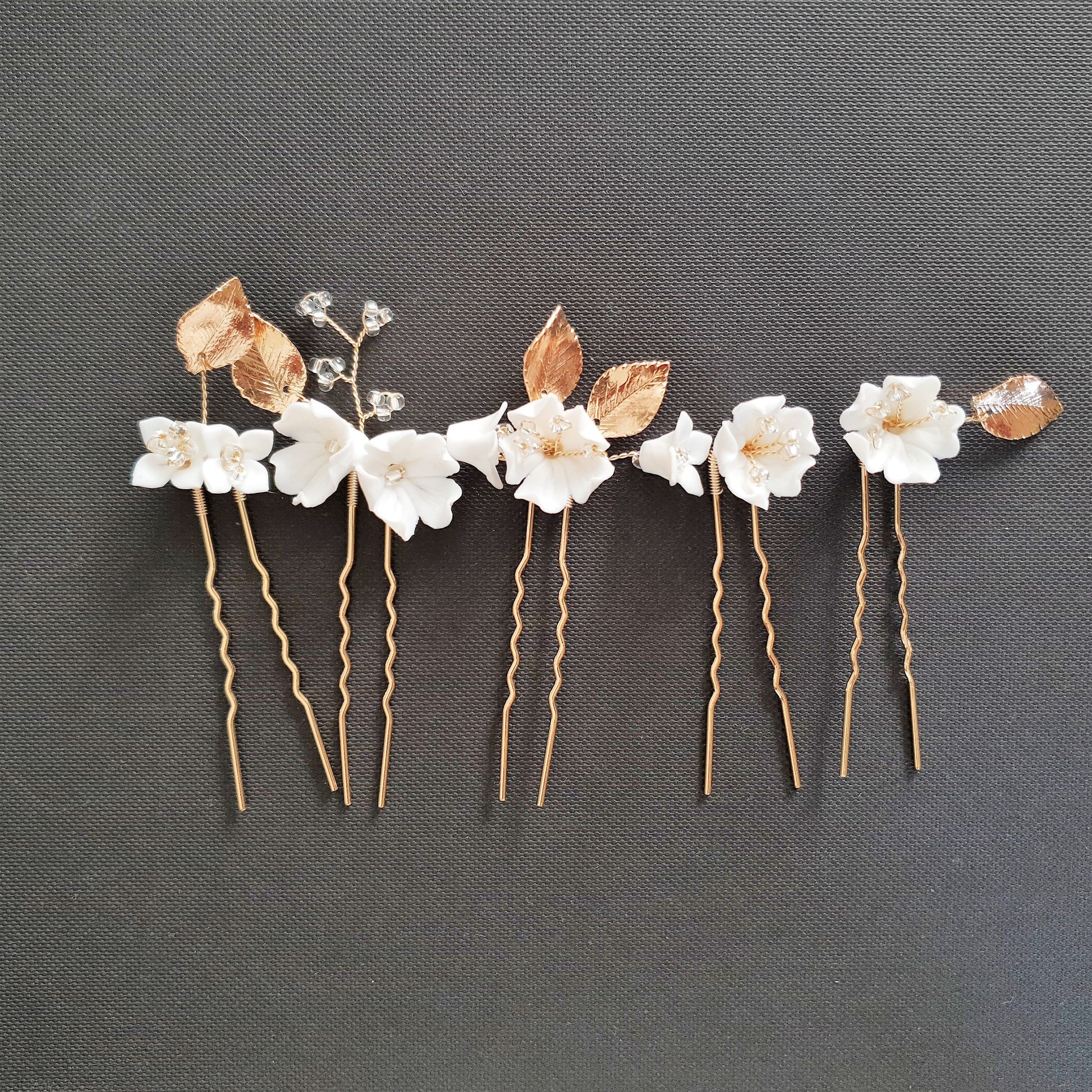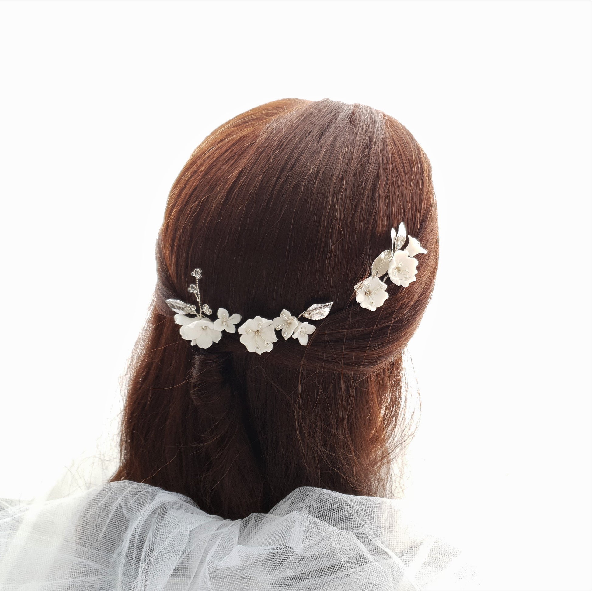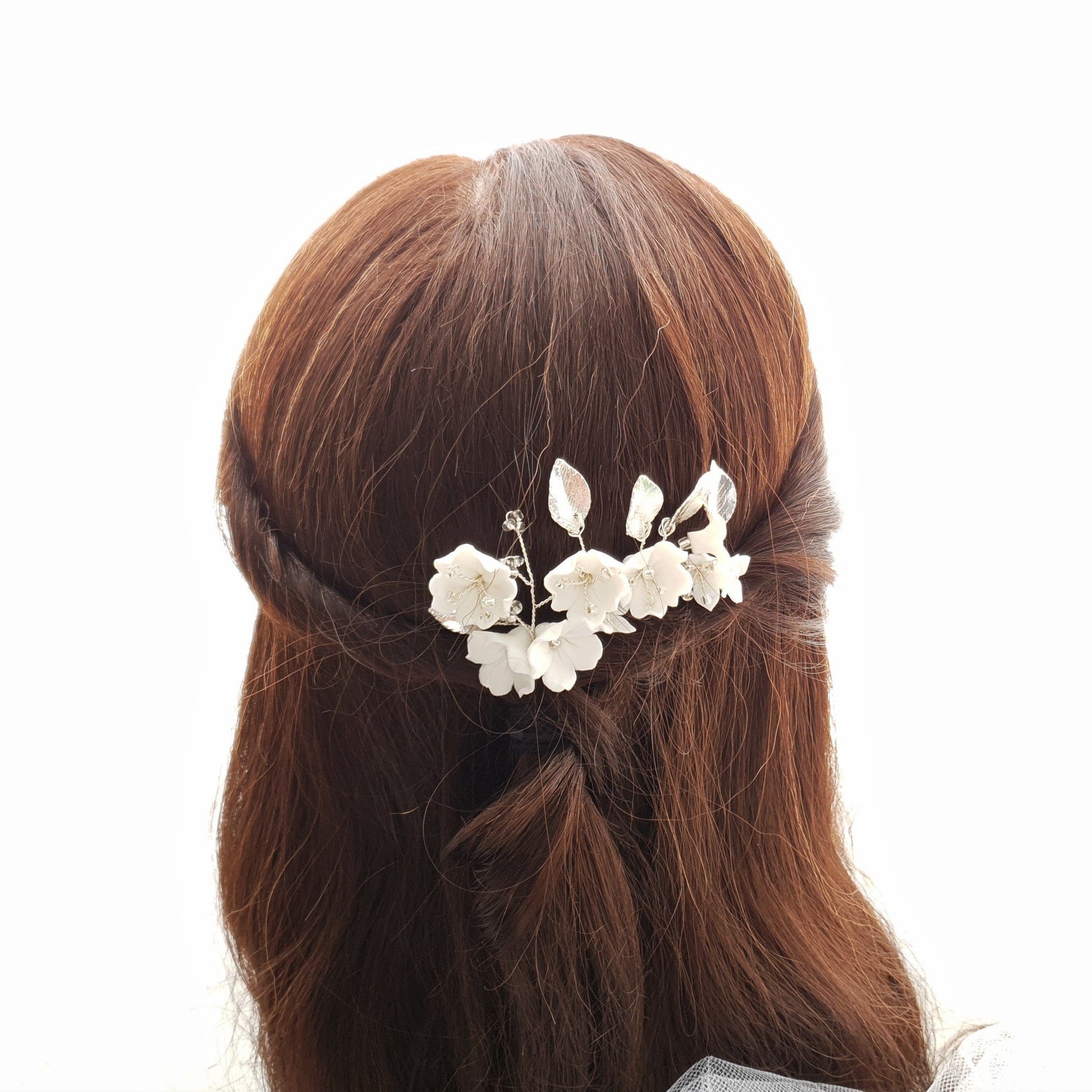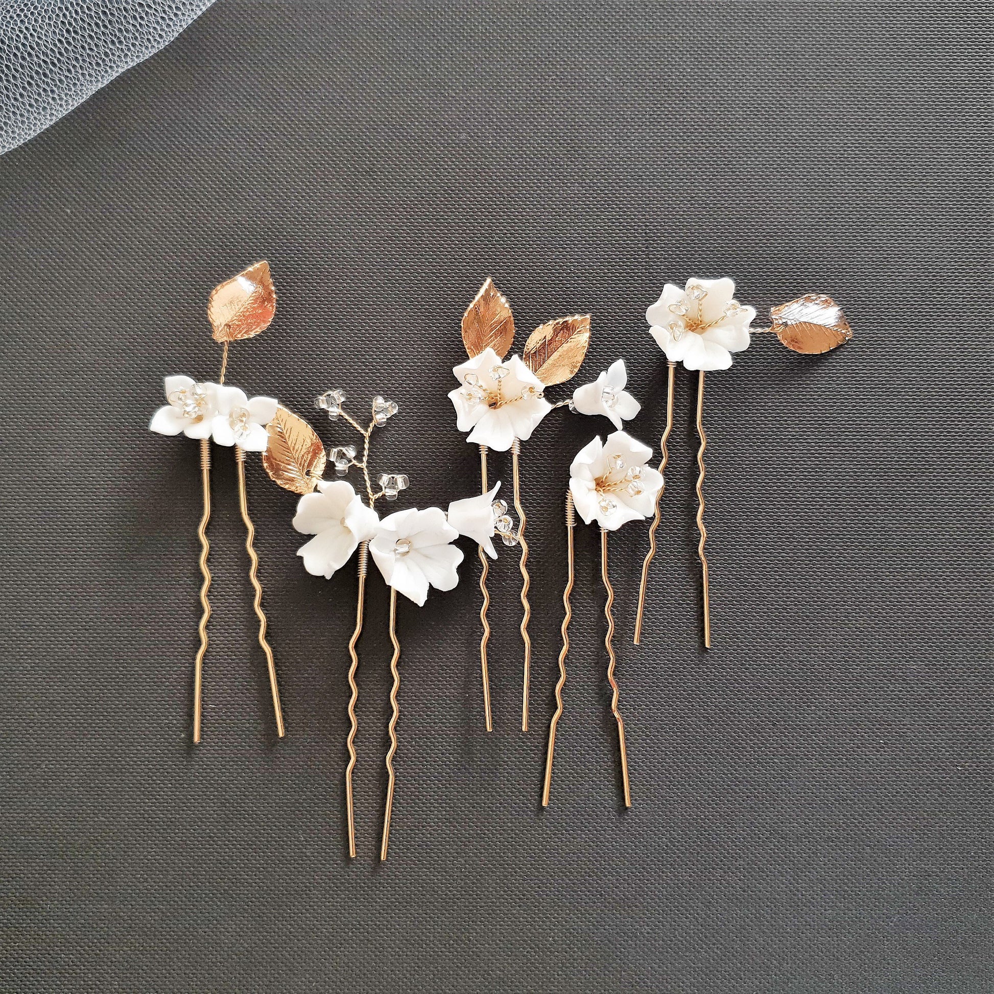 Get creative you will be able to accessorize your hair and give it a unique look with your wedding hair style. This floral hair pin set consists of 5 hairpins, each slightly different from the other.