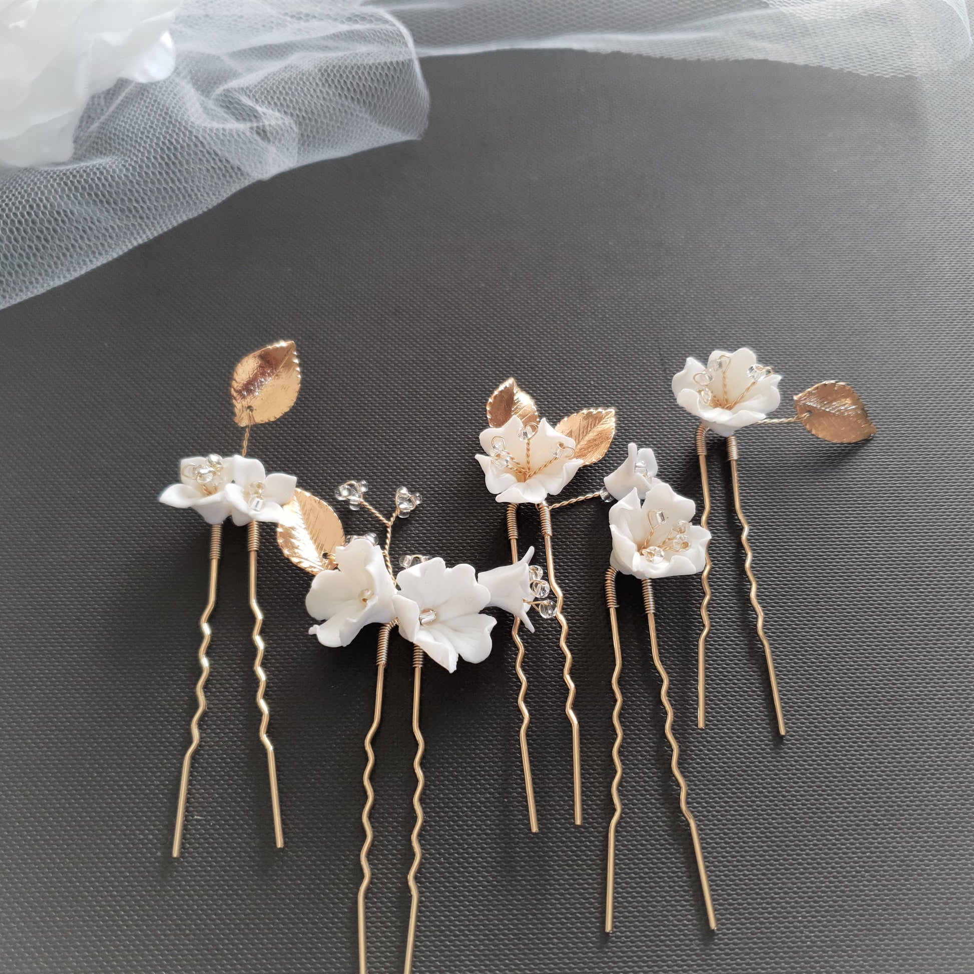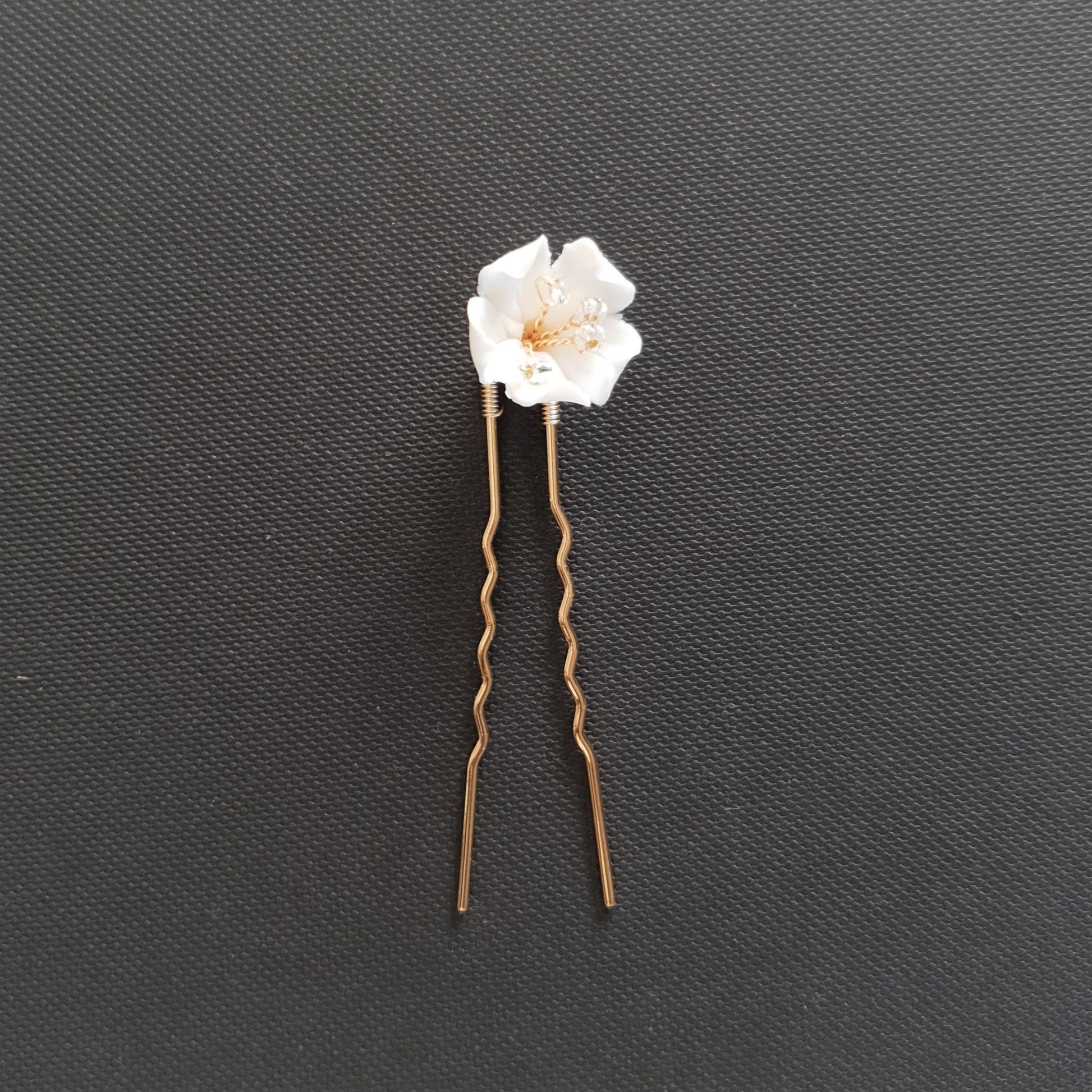 Bridal Hair Pins Set with White Flowers-Magnolia