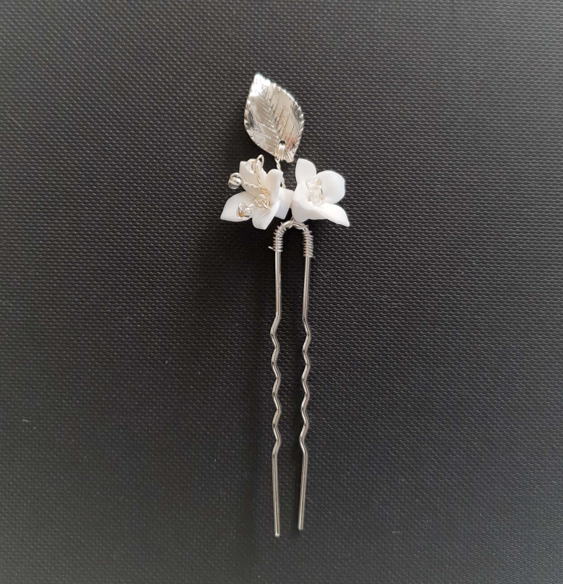 The advantage of this hairpin its flexibility to create a unique look to suit your style. These pins can also be combined with other hair combs if you please. The hairpin set is also available in gold with white flowers.