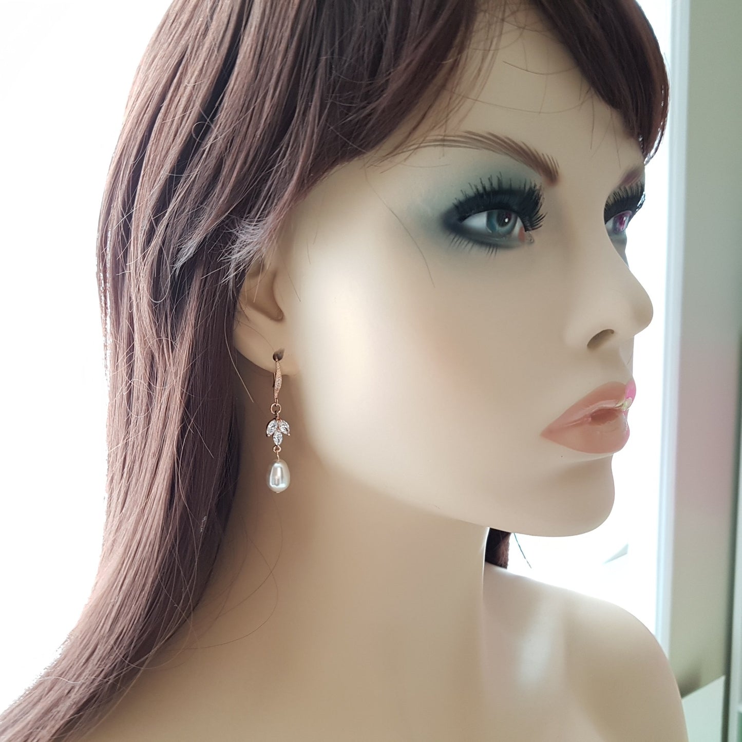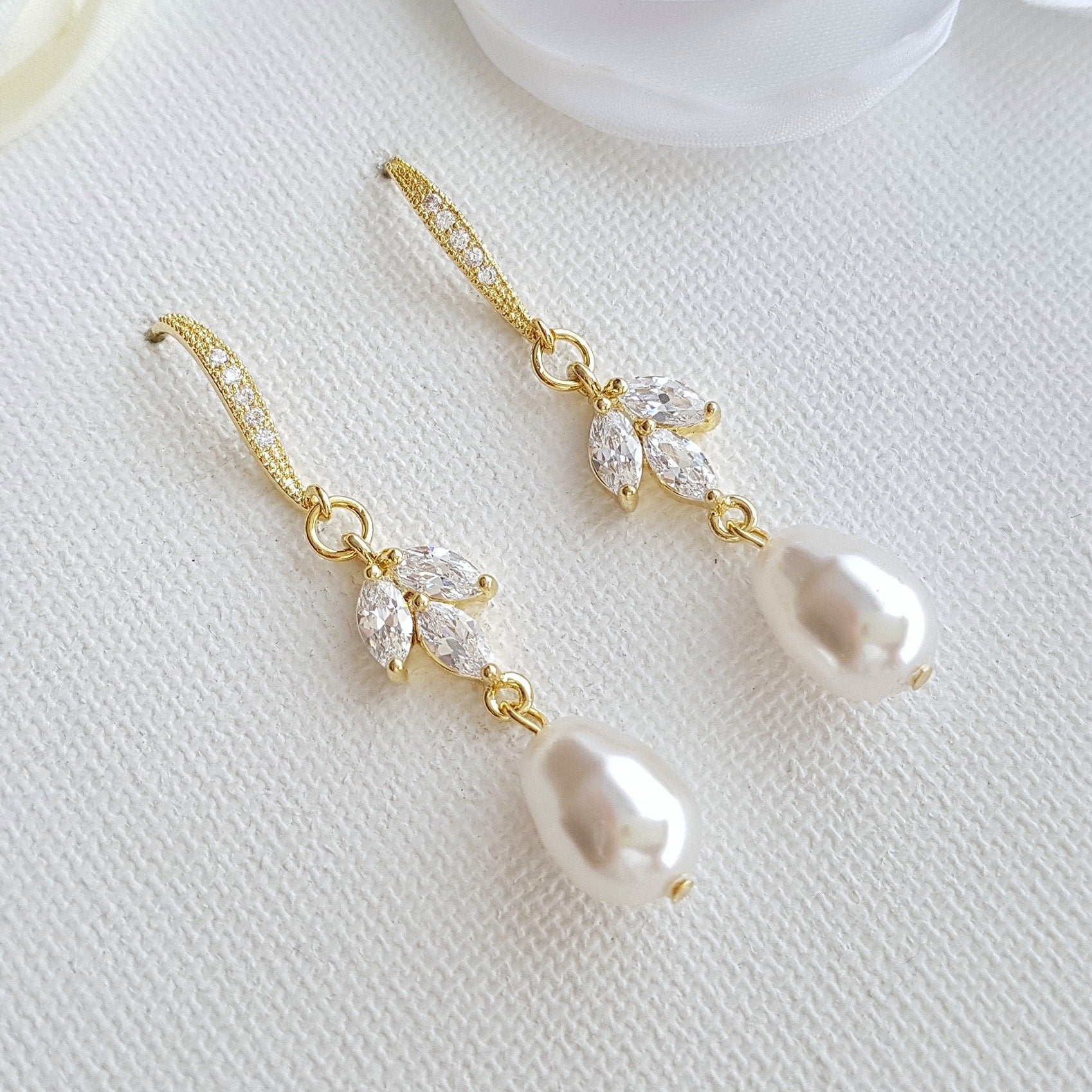 Earrings:- Simple, and lightweight pretty dangle earrings made with ear hooks that are combined with marquise cubic zirconia and pearls. The length of the earrings 1 6/8 inches or 4.5 cms.