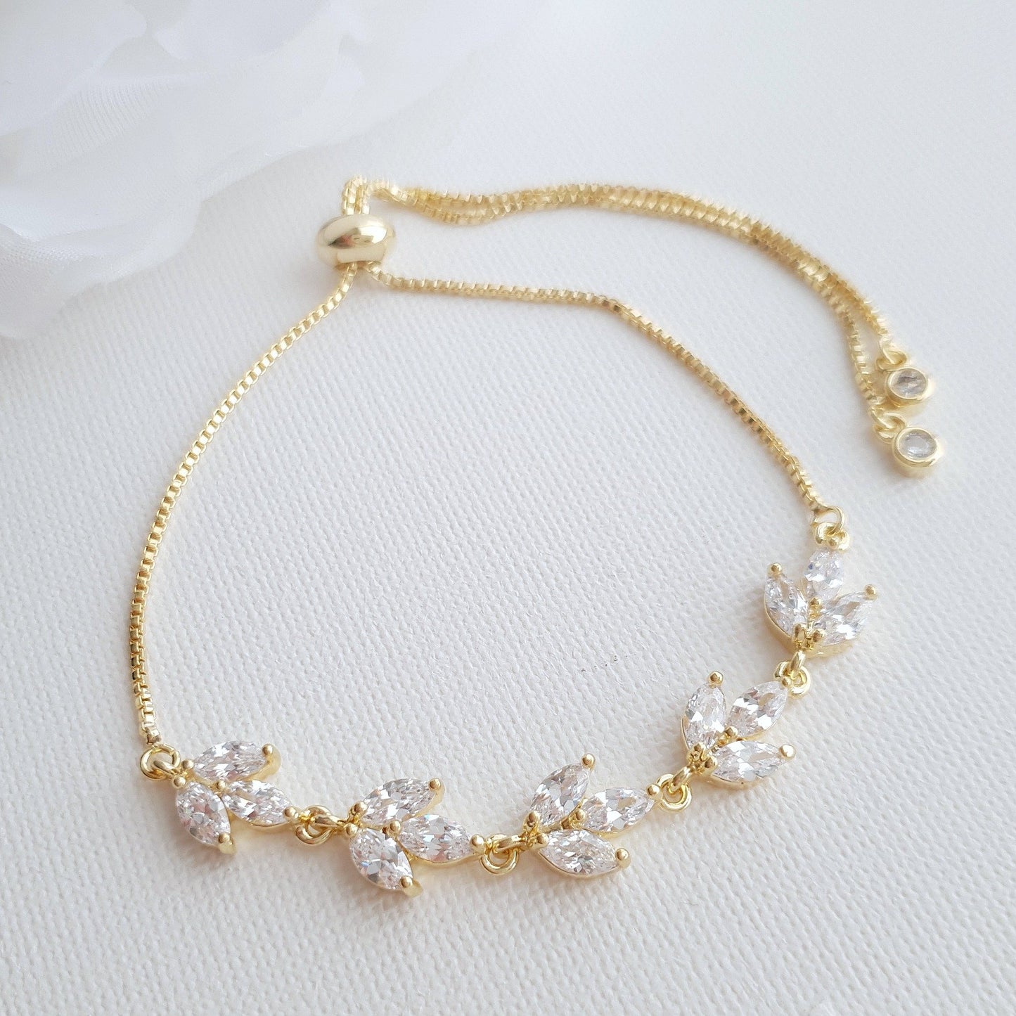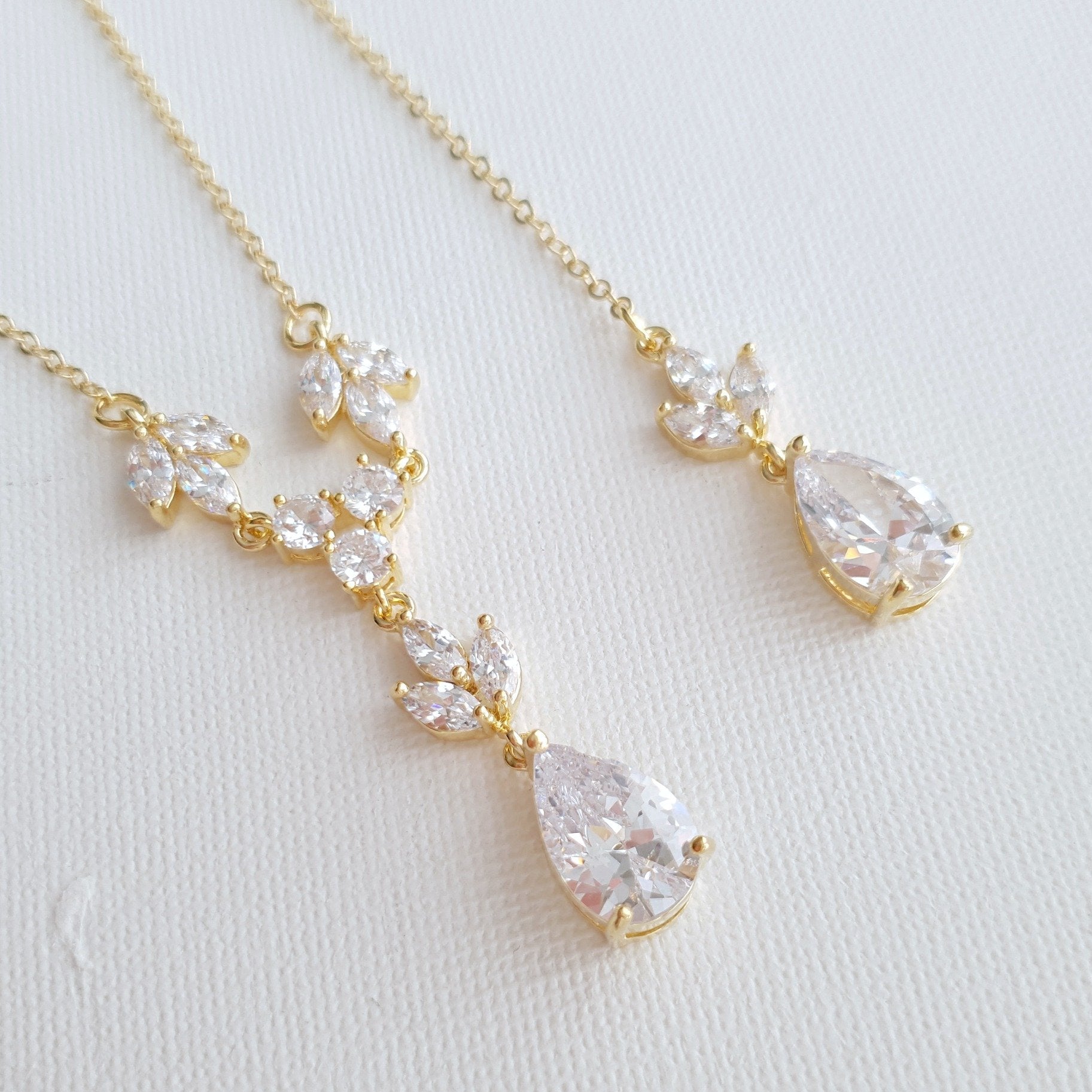14K Gold Plated Delicate Necklace Set with Dangle Earrings and Slider Bracelet for Brides