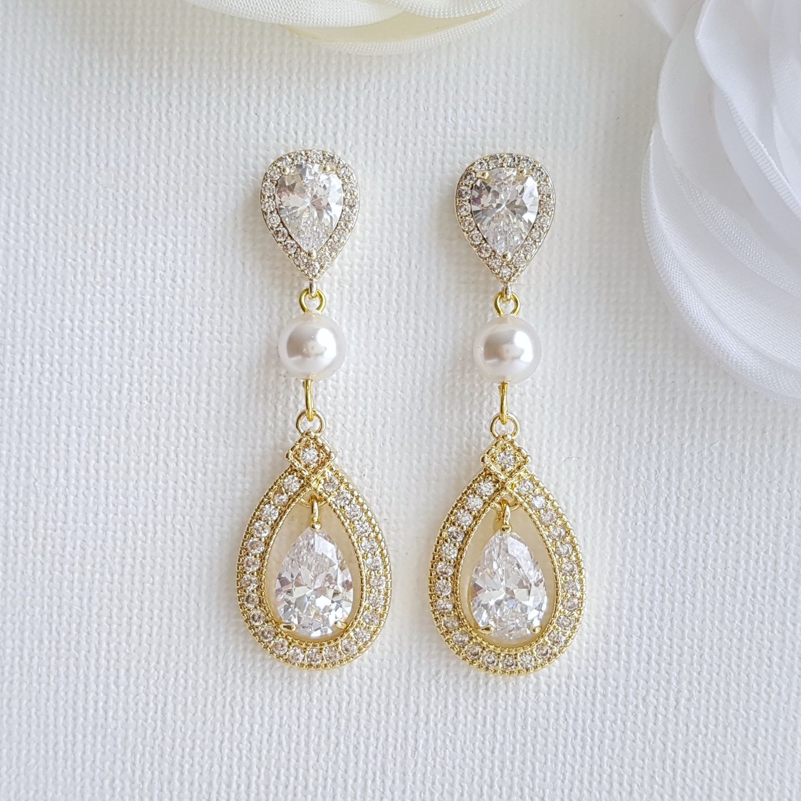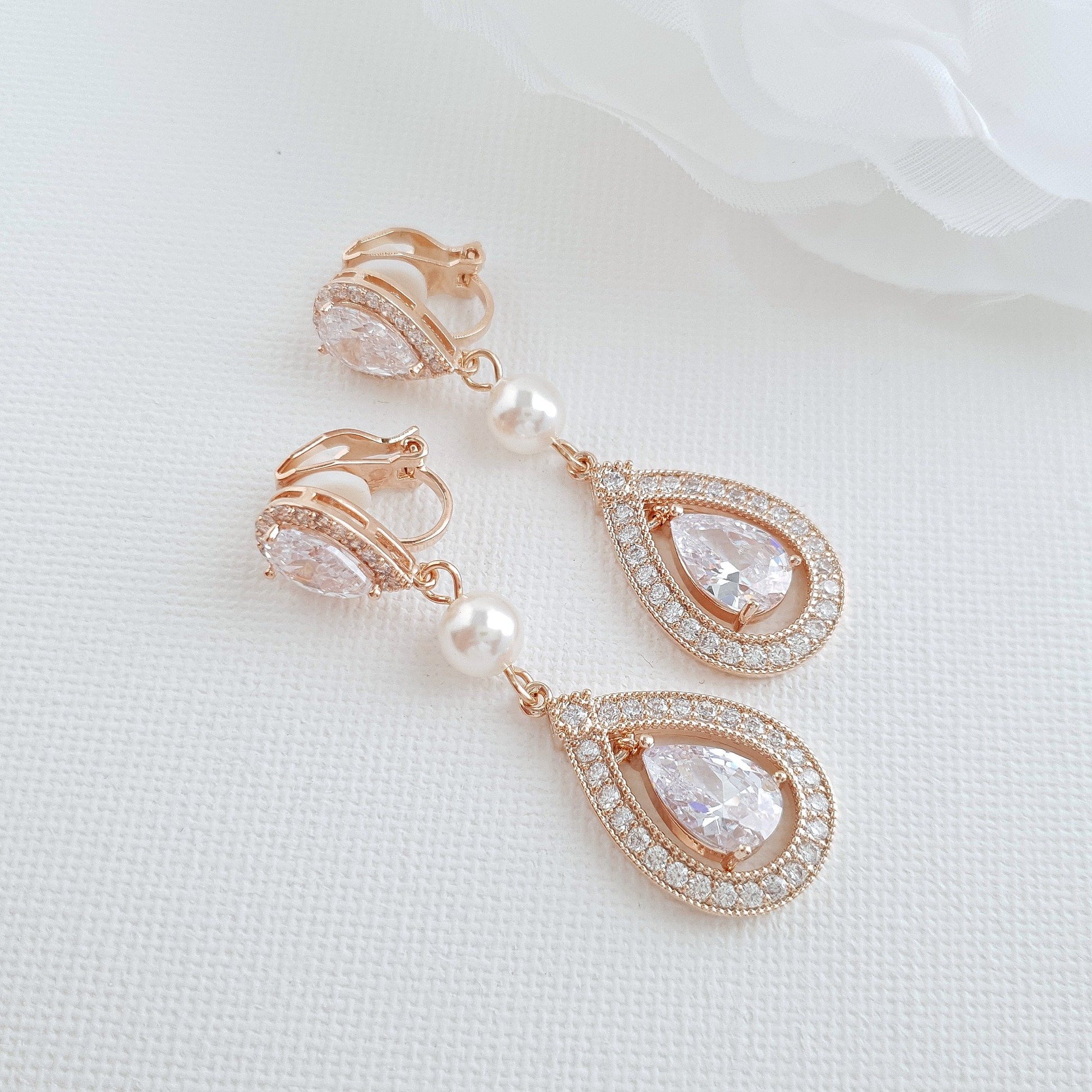 These silver clip-on wedding earrings in cubic zirconia is also available in gold and rose gold platings with pearl color options to choose from.