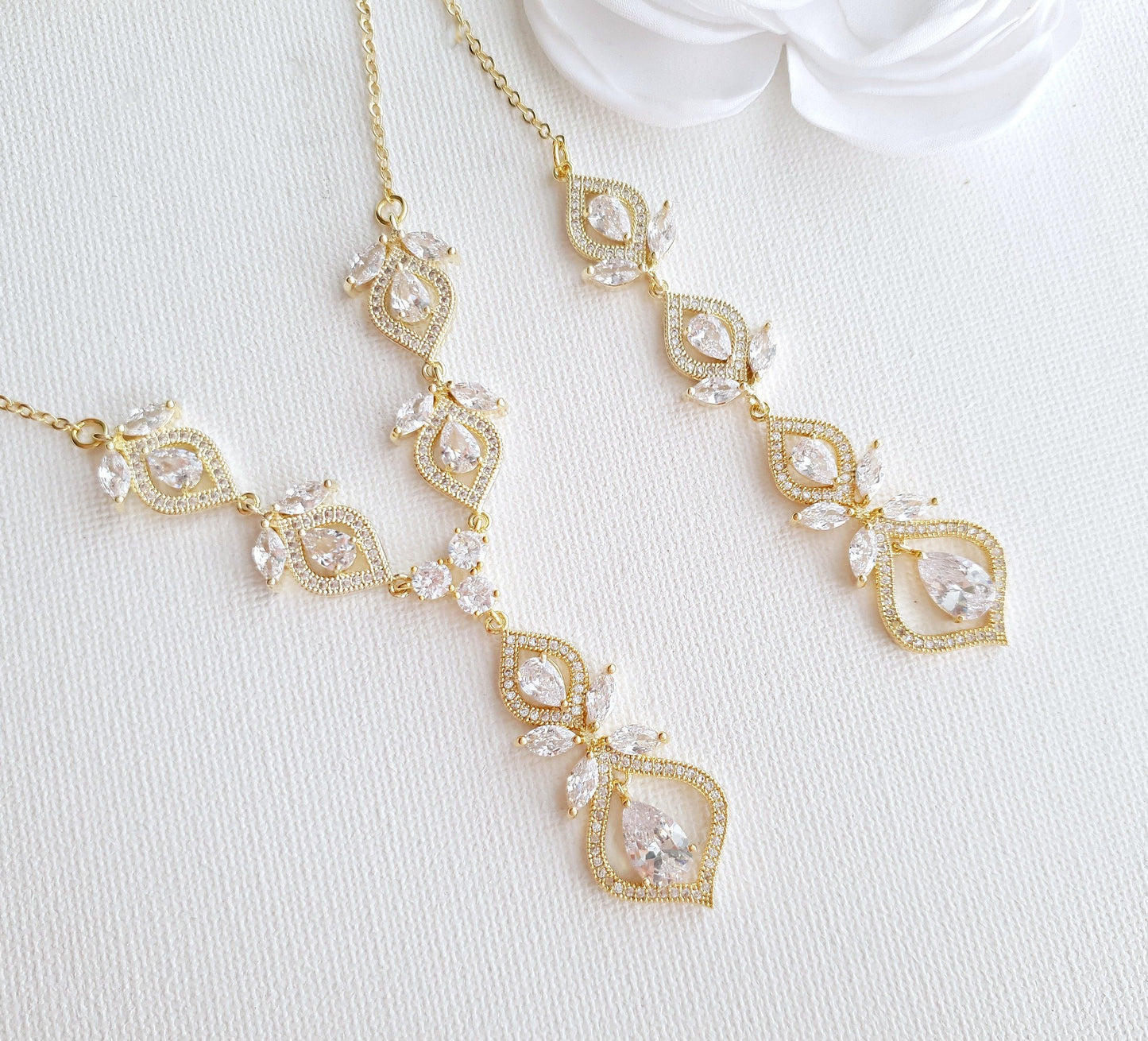 Elegant Crystal Gold Wedding Necklace & Back Jewelry for Brides