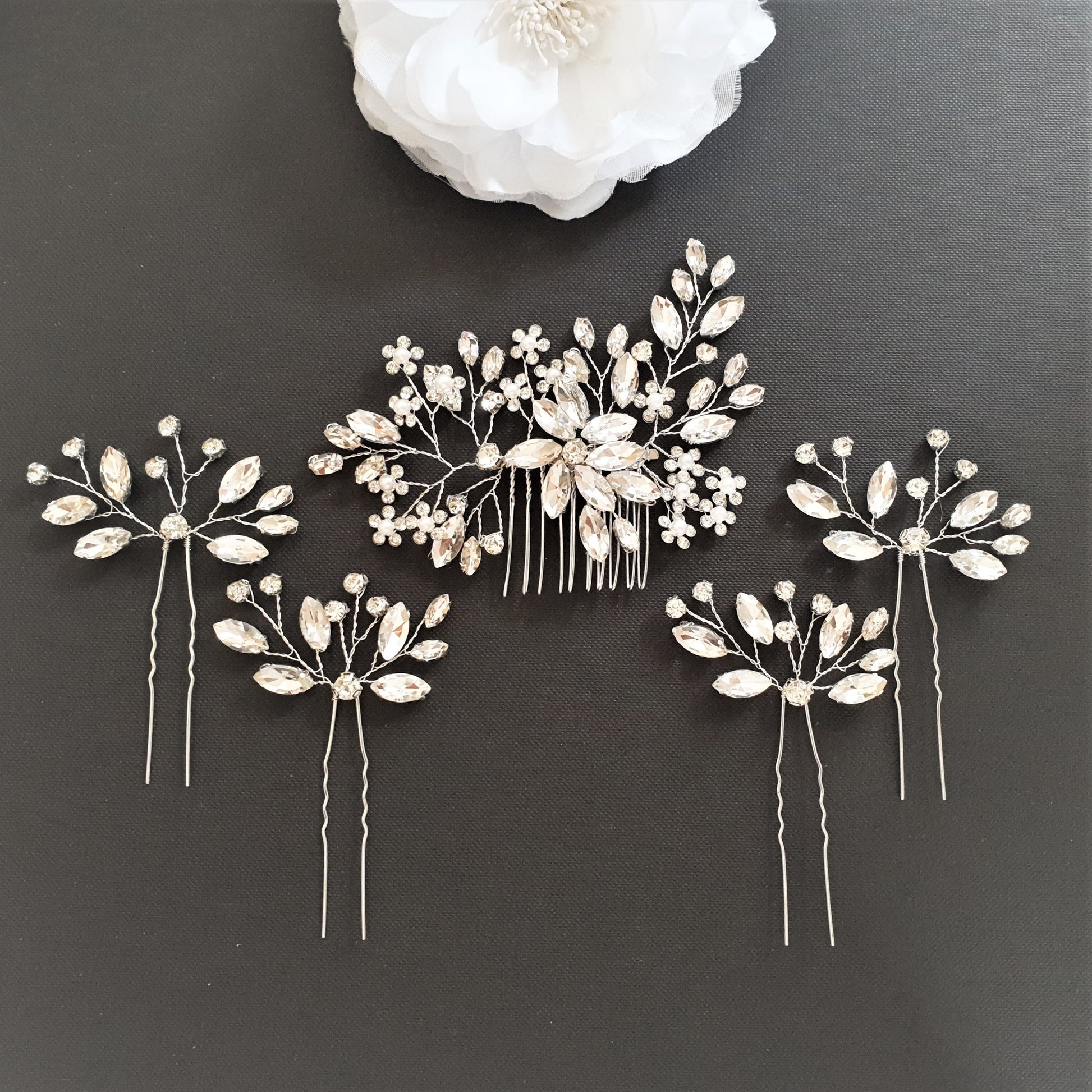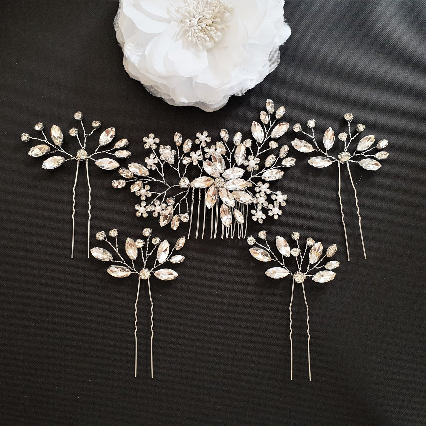 Wholesale Wedding Hair Accessory Set with 4 Hairpins & 1 Hair Comb- A 5 Piece Set