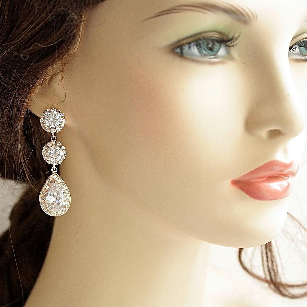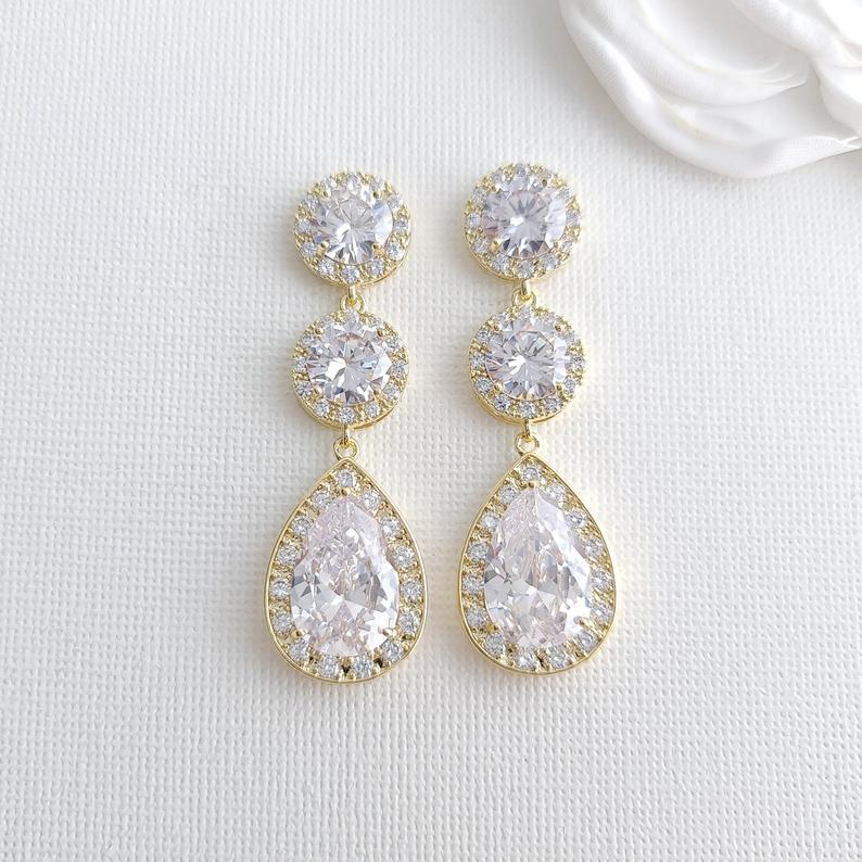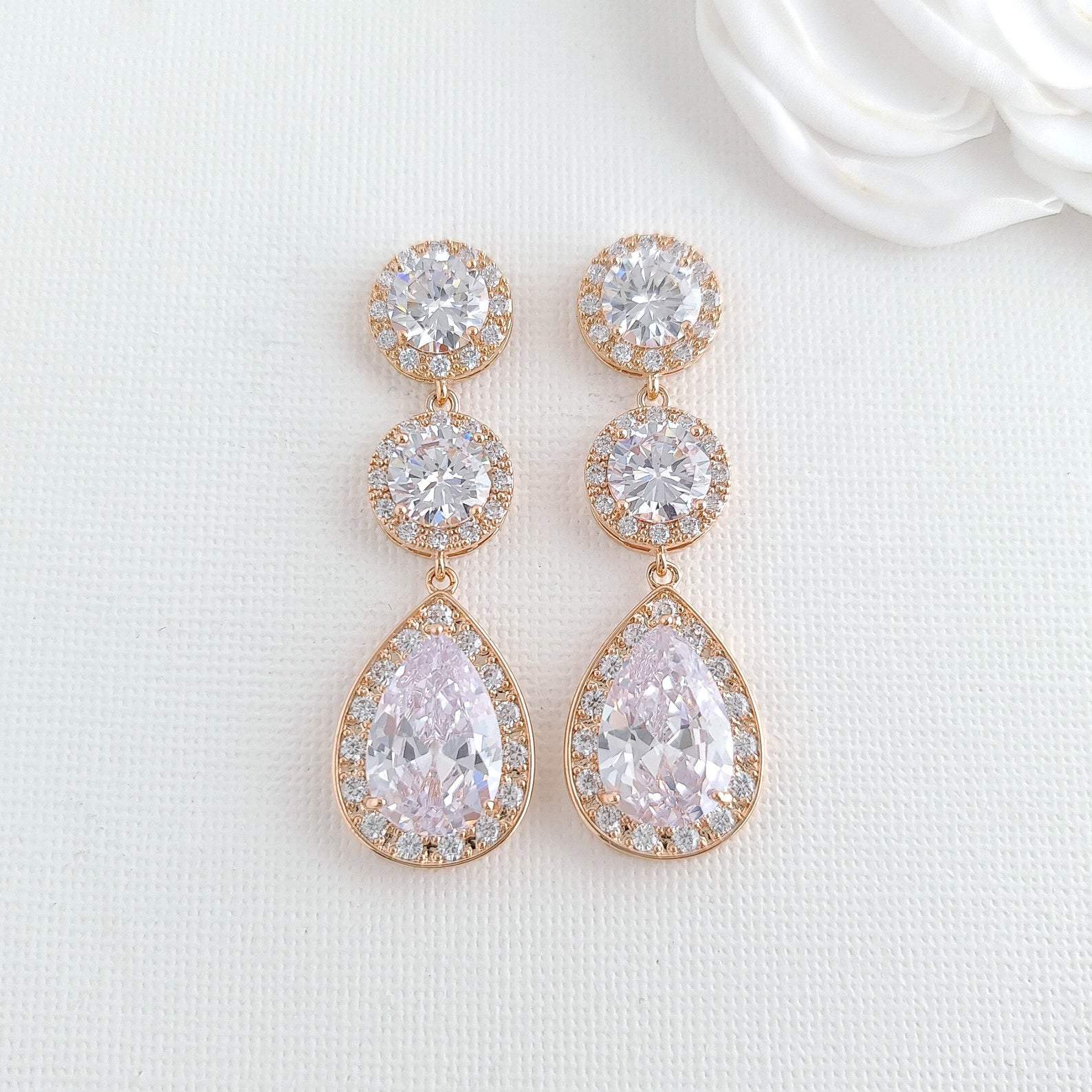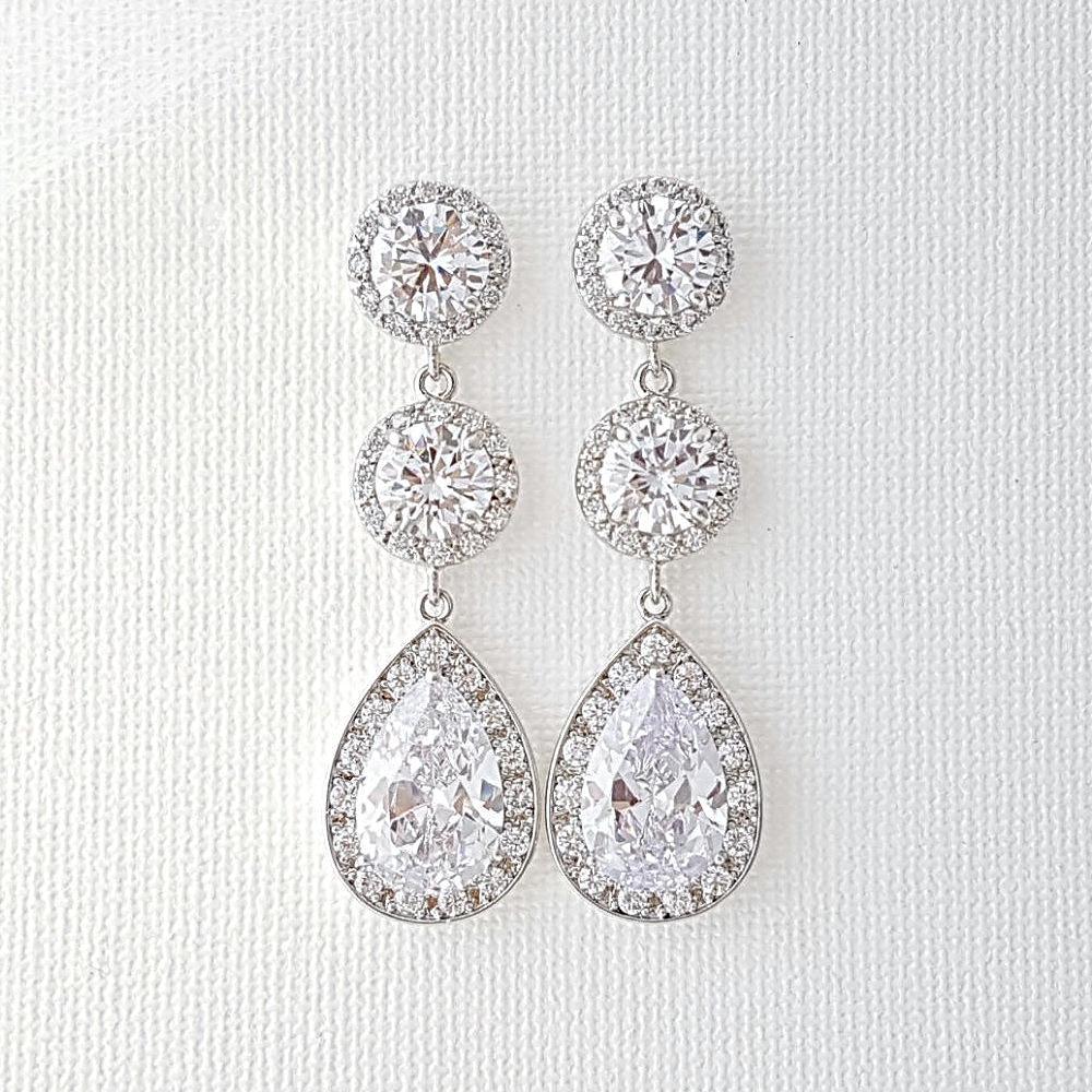Flattering style beautiful cubic zirconia earrings for brides, weddings,s and special occasions. These cubic zirconia drop earrings are made with round and teardrop sparkly clear cubic zirconia crystals.