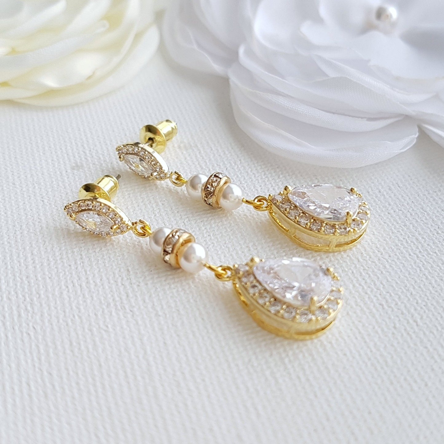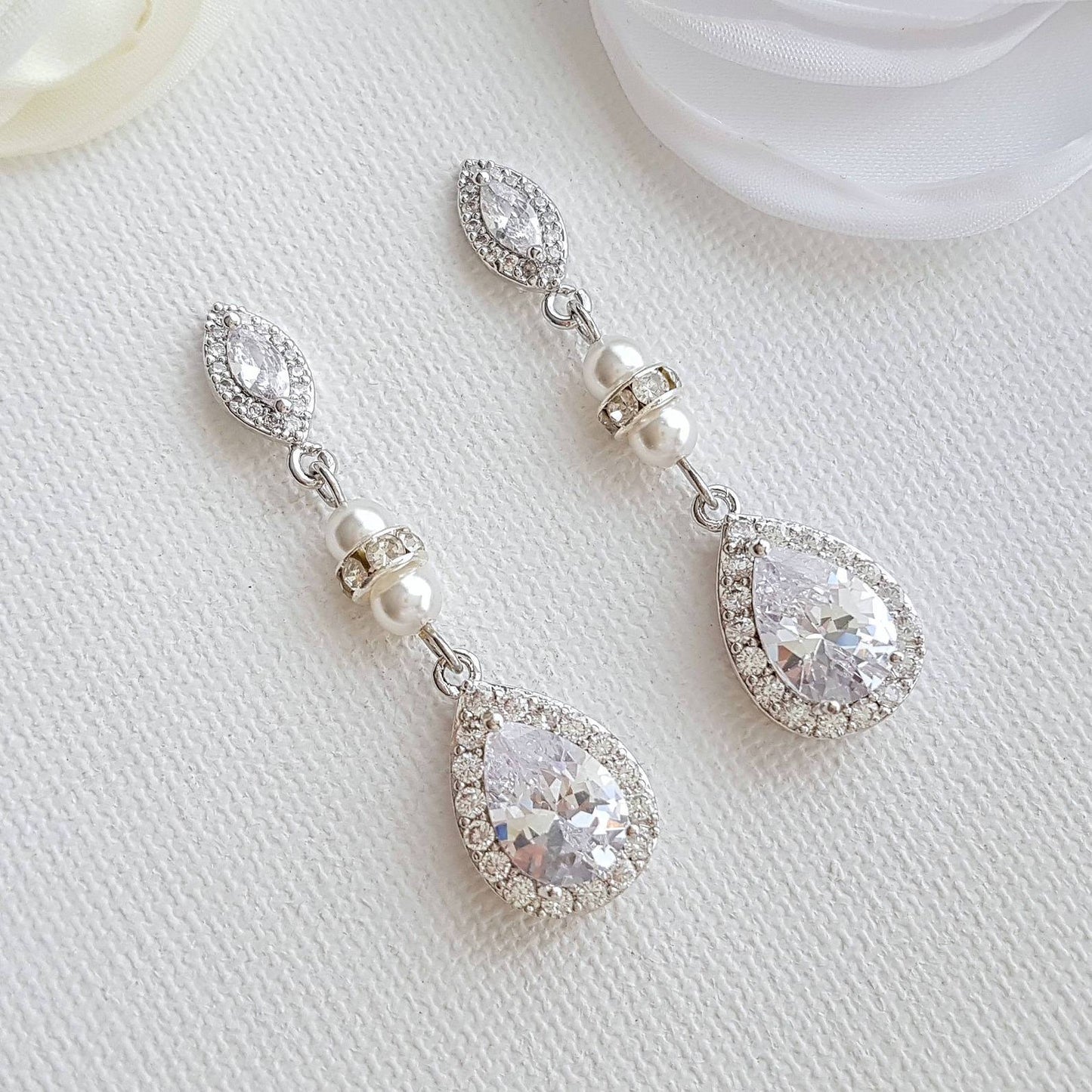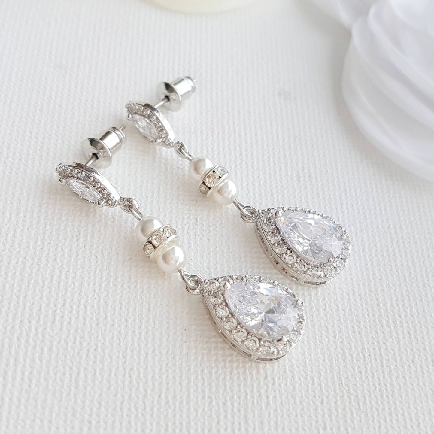 CZ & Pearl Wedding Drop Earrings for Brides-Ella