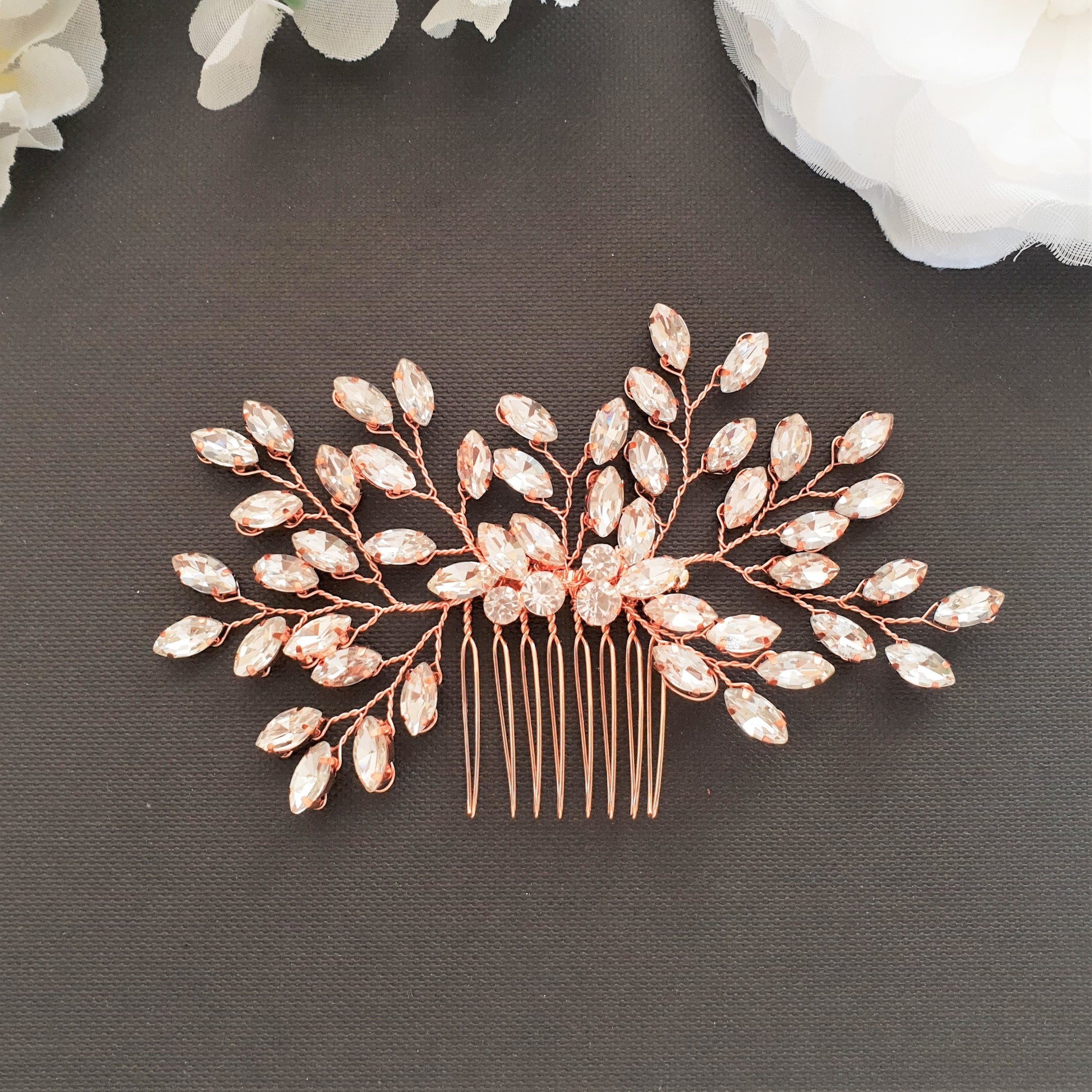 Delicate Gold and Crystal Bridal Hair Comb-Pasque