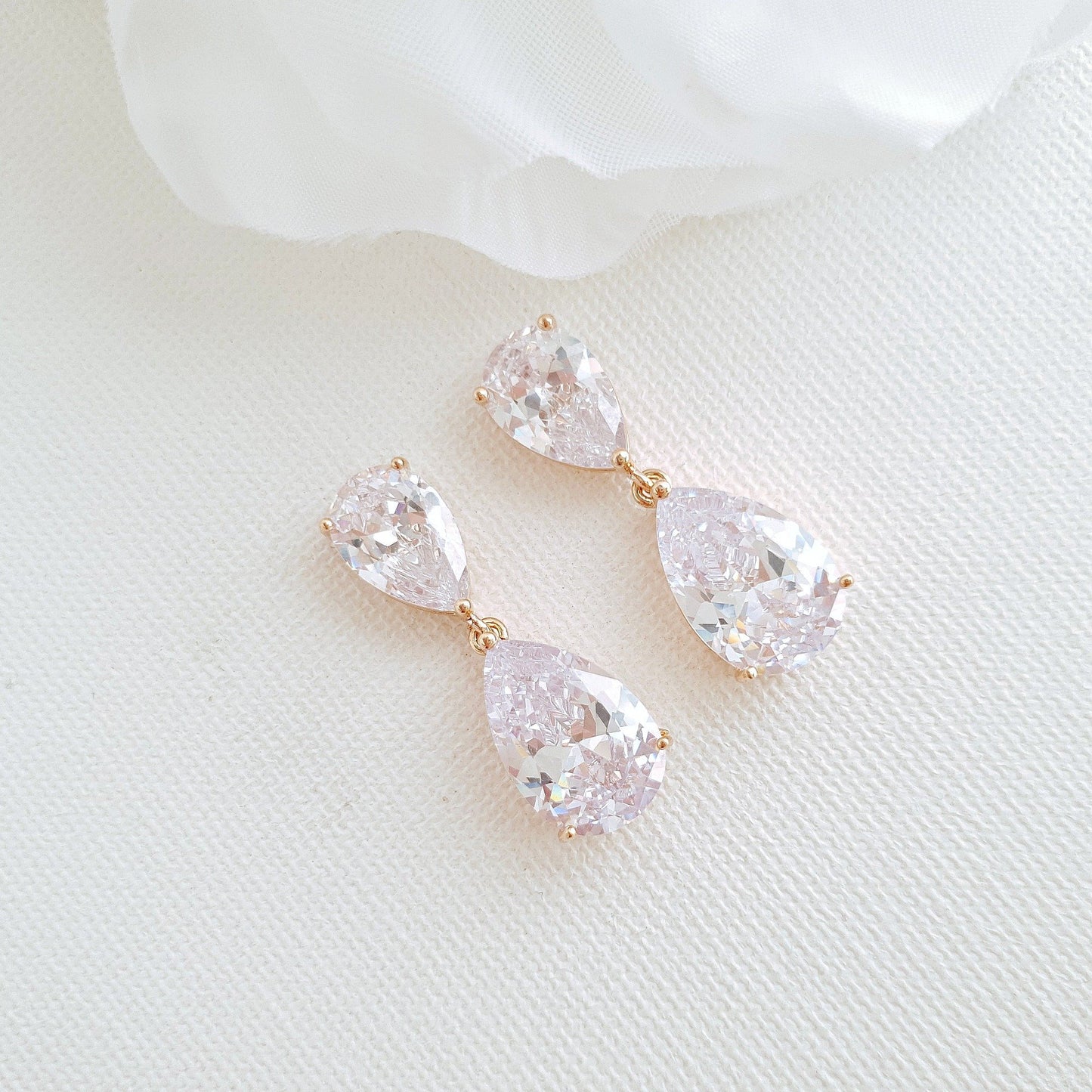 They reflect the slightest of light falling, natural or artificial light, making them super sparkly to wear with any wedding dress and your favorite outfits. The metalwork on these earrings is rhodium plated (Silvertone) and tarnish resistant. The earrings are available in three finishes of silver, gold, and rose gold. The earrings are comfortable to wear and the ear pins are of stainless steel.