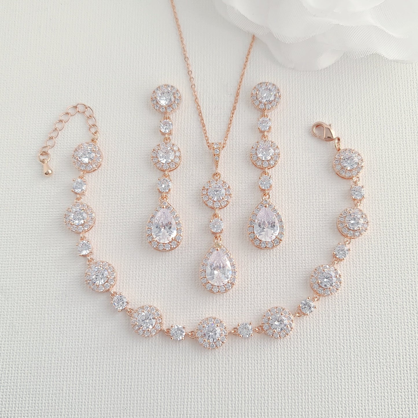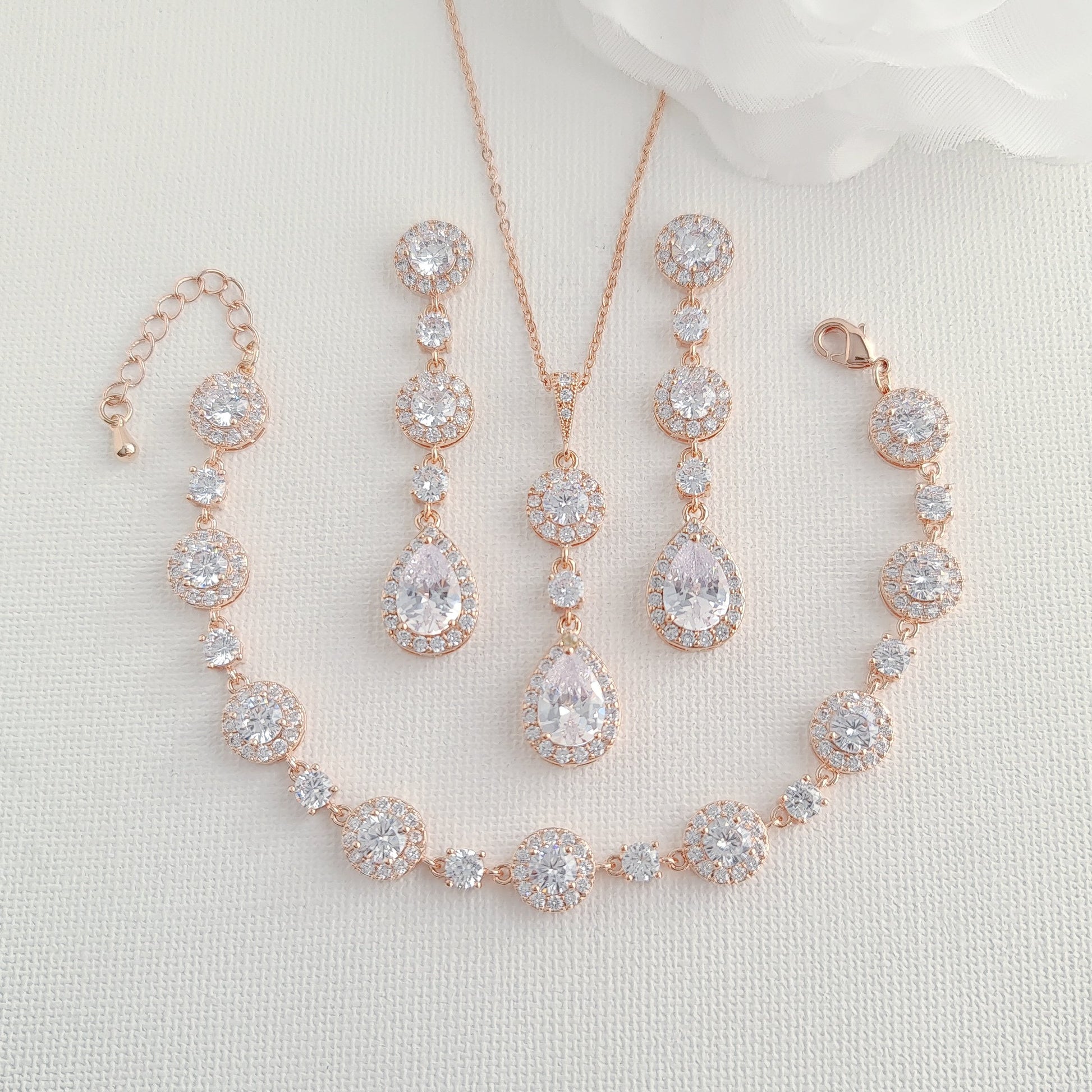 We have combined matching earrings, necklace, bracelet 3 piece rose gold jewelry set that would simplify the selection process, not just that, they are also available in silver and yellow gold colors to choose from.