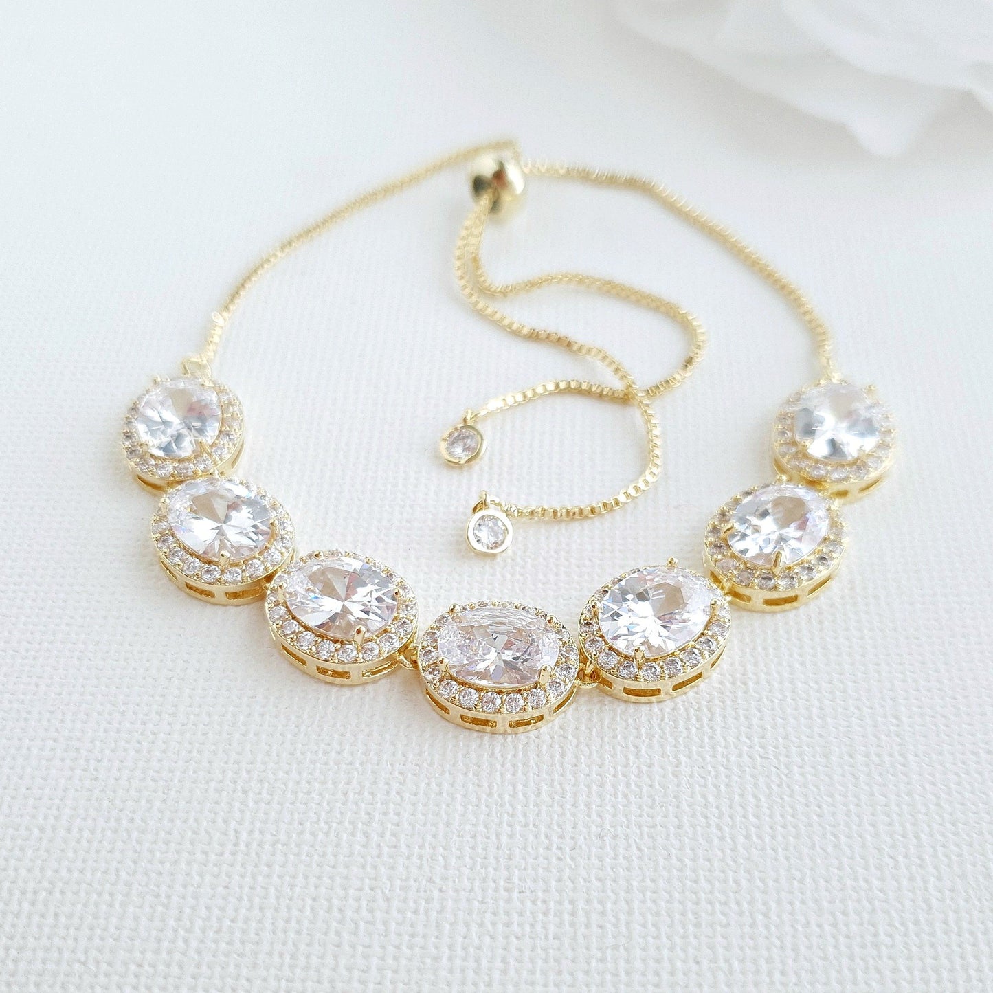 Oval Shaped Cubic Zirconia Crystals Bracelets for Brides in Gold