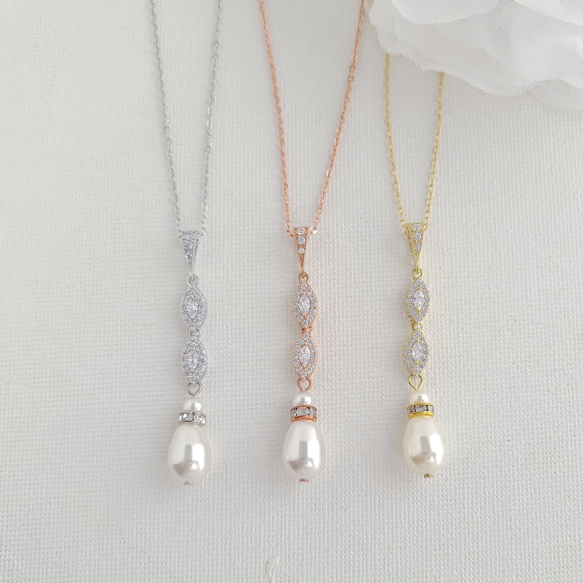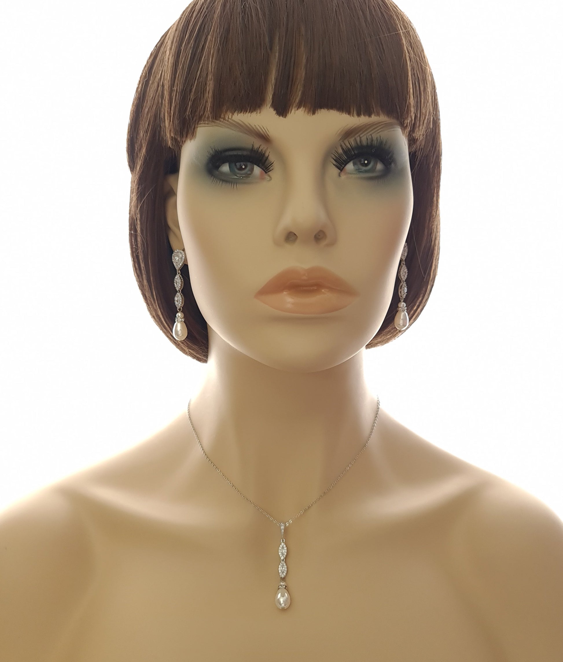 Necklace:- The long pendant drop matching the earrings great to wear with almost all wedding dress neckline styles or if you are looking for a long pendant drop.