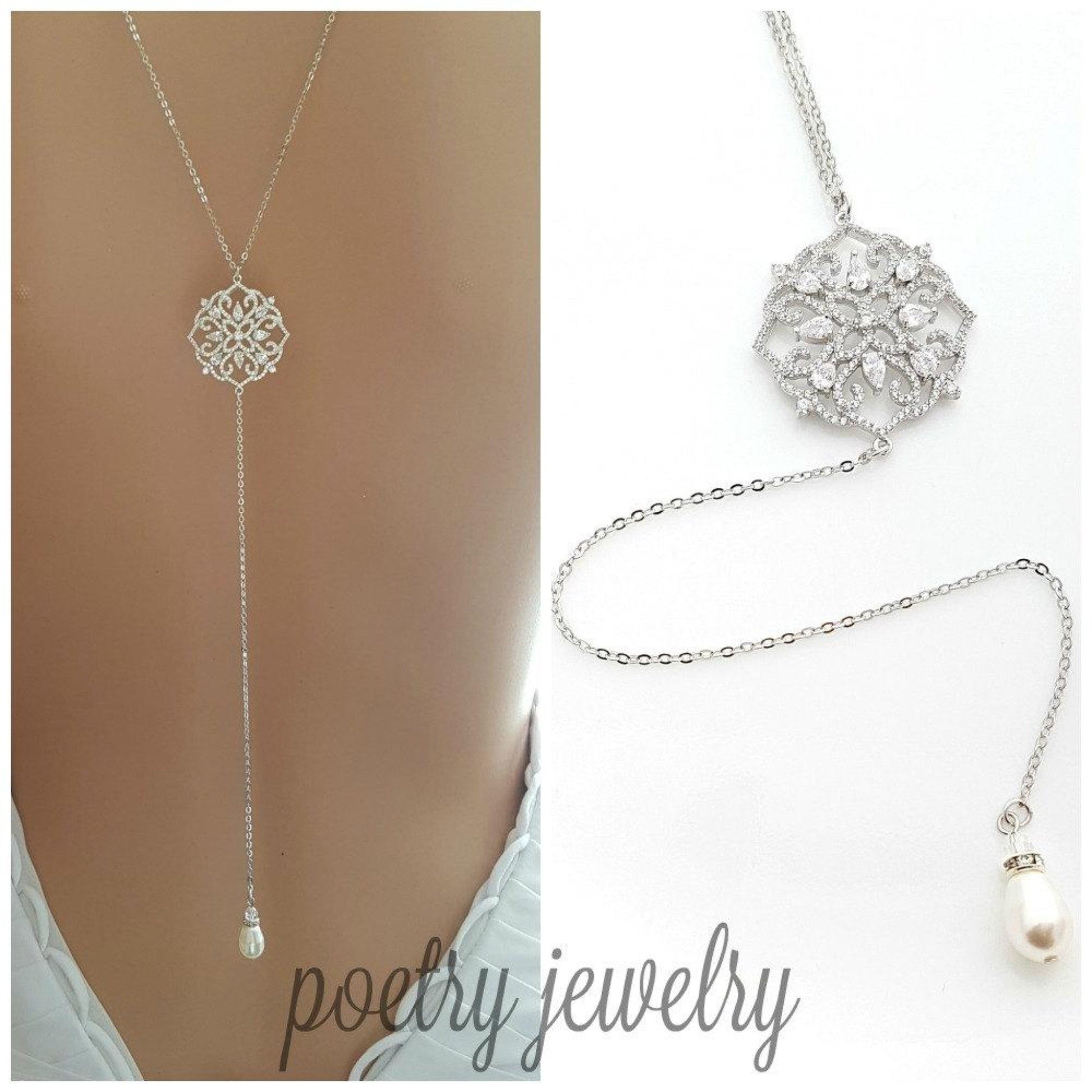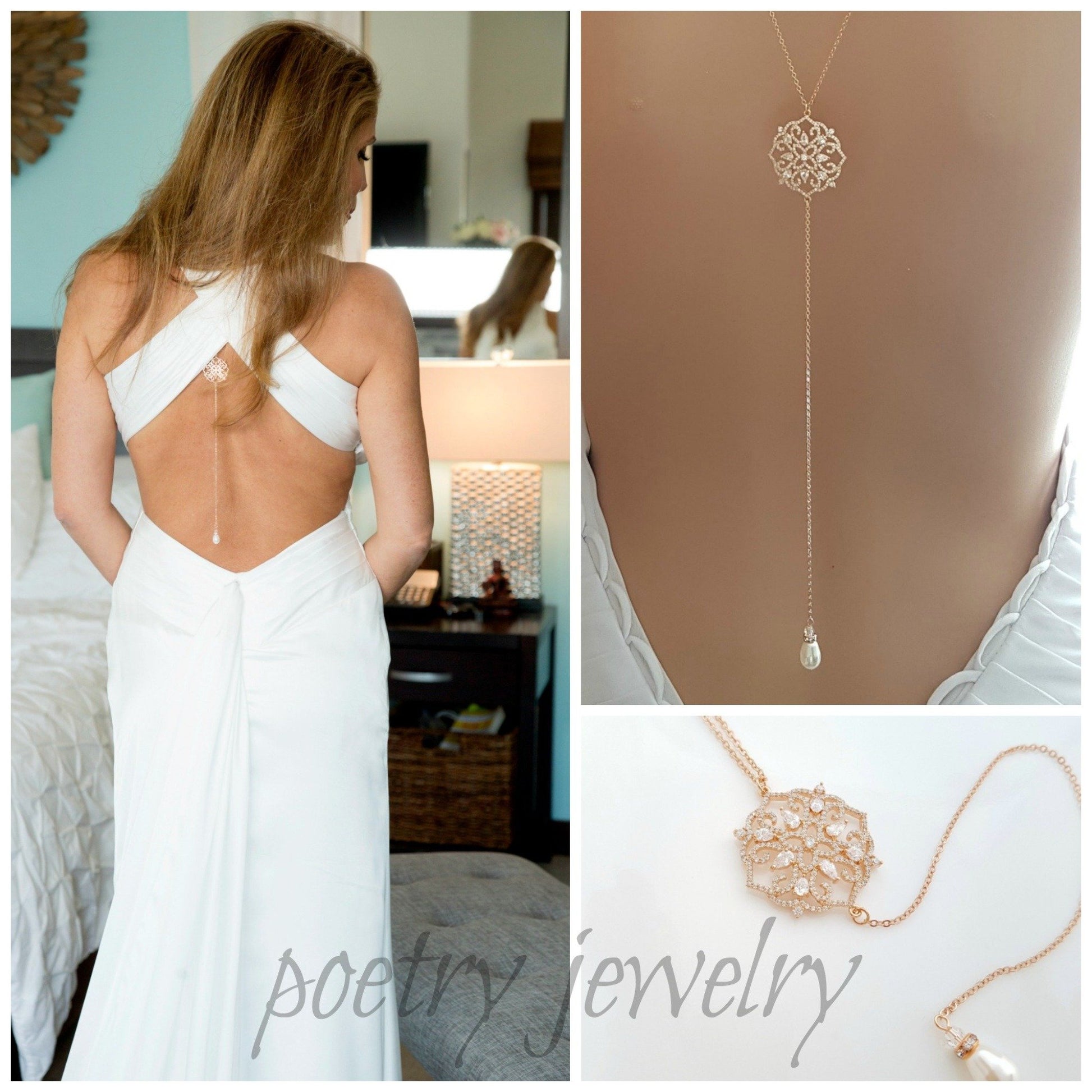 When worn the backless necklace measure approx. 13 inches or 33 cms from the nape. A great option for women and girls with a deep V back or backless wedding, cocktail, formal, and prom dresses.