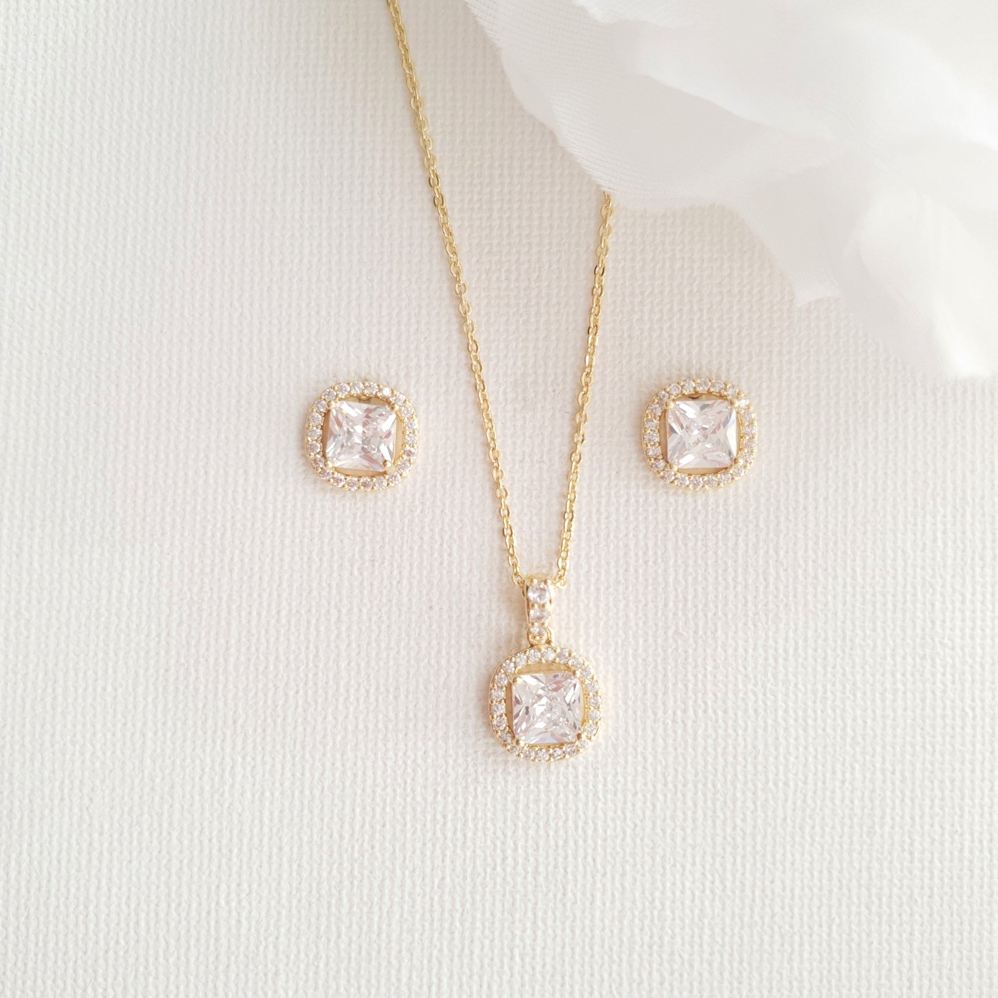 Gold Bridesmaids Jewelry Set with Simple Earrings and Pendant Necklace