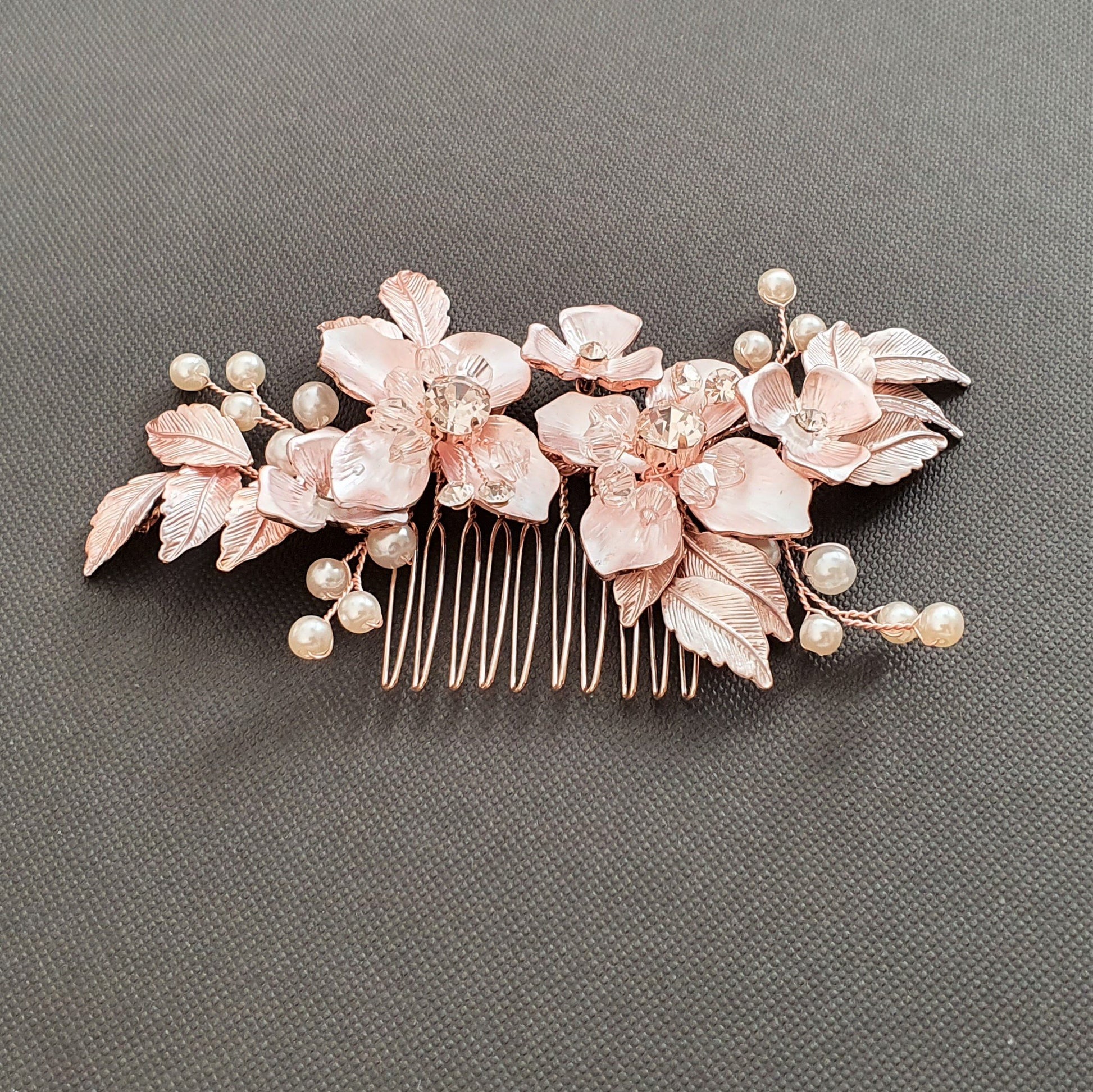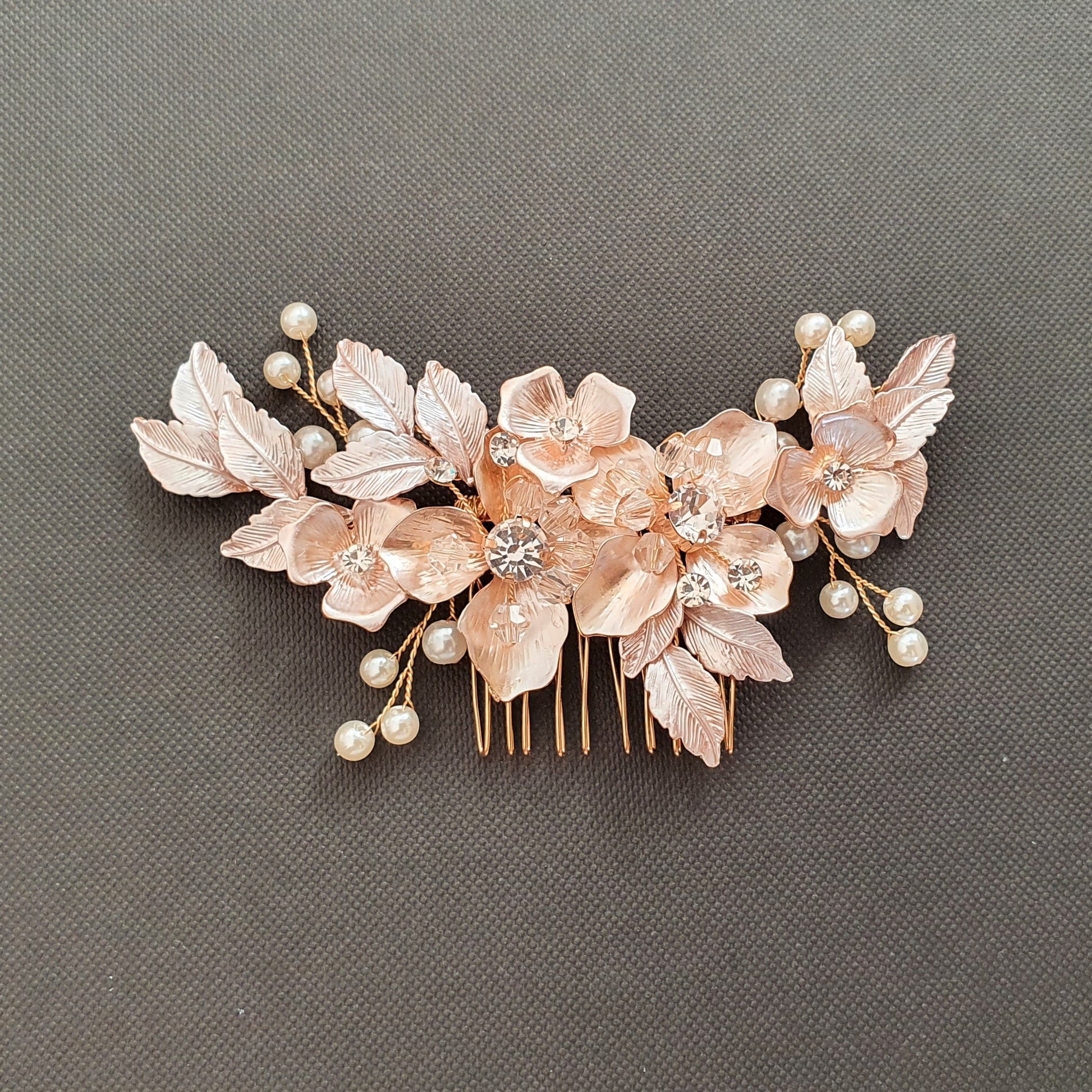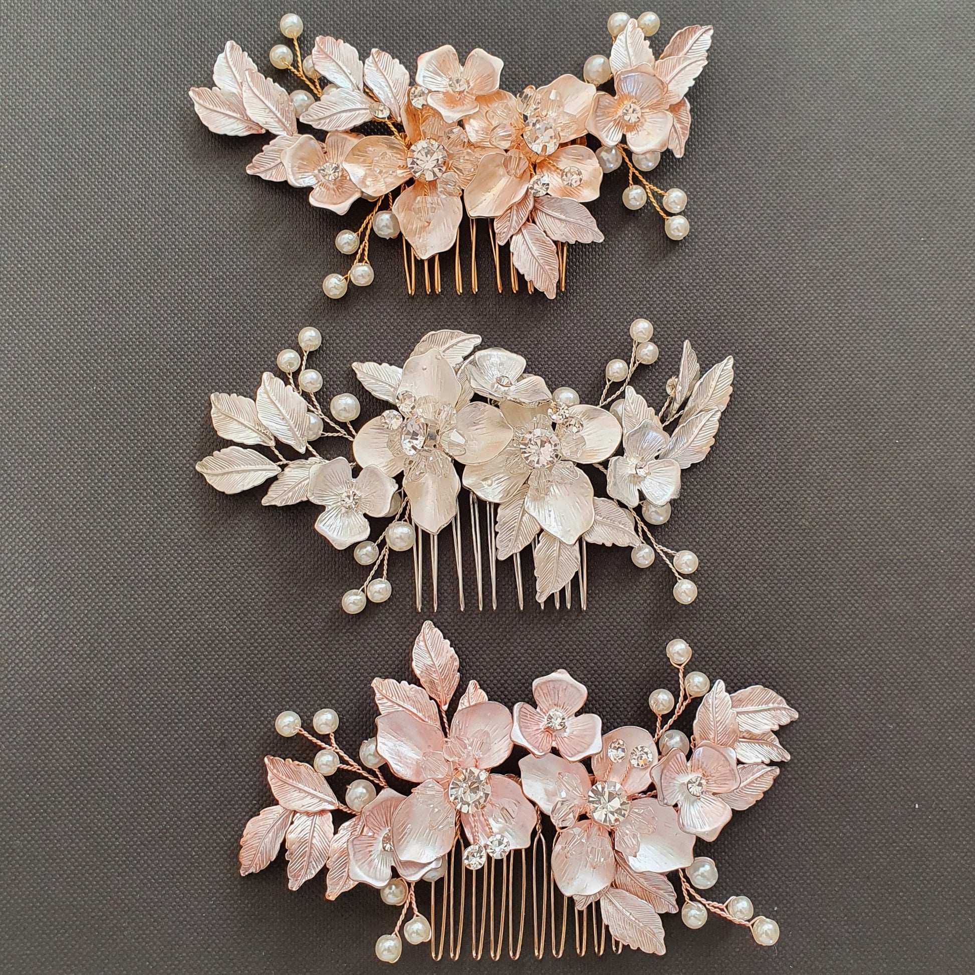 This gold wedding hair comb is an easy flow with your plain or floral-patterned wedding dresses. The bridal hair comb can be purchased in three tones of gold, silver, rose gold tones to suit and match your style.