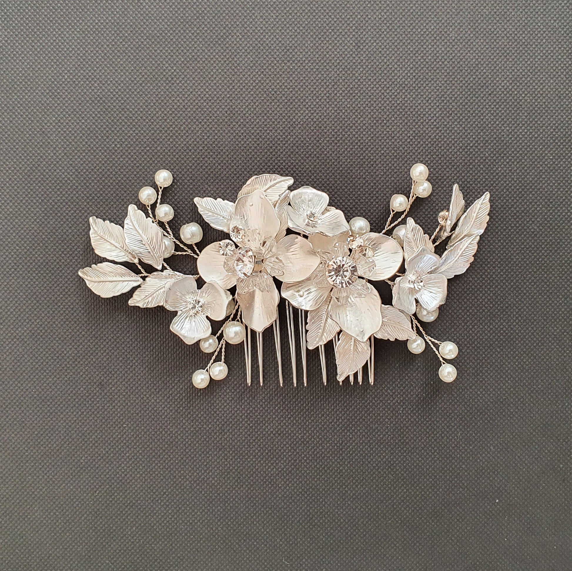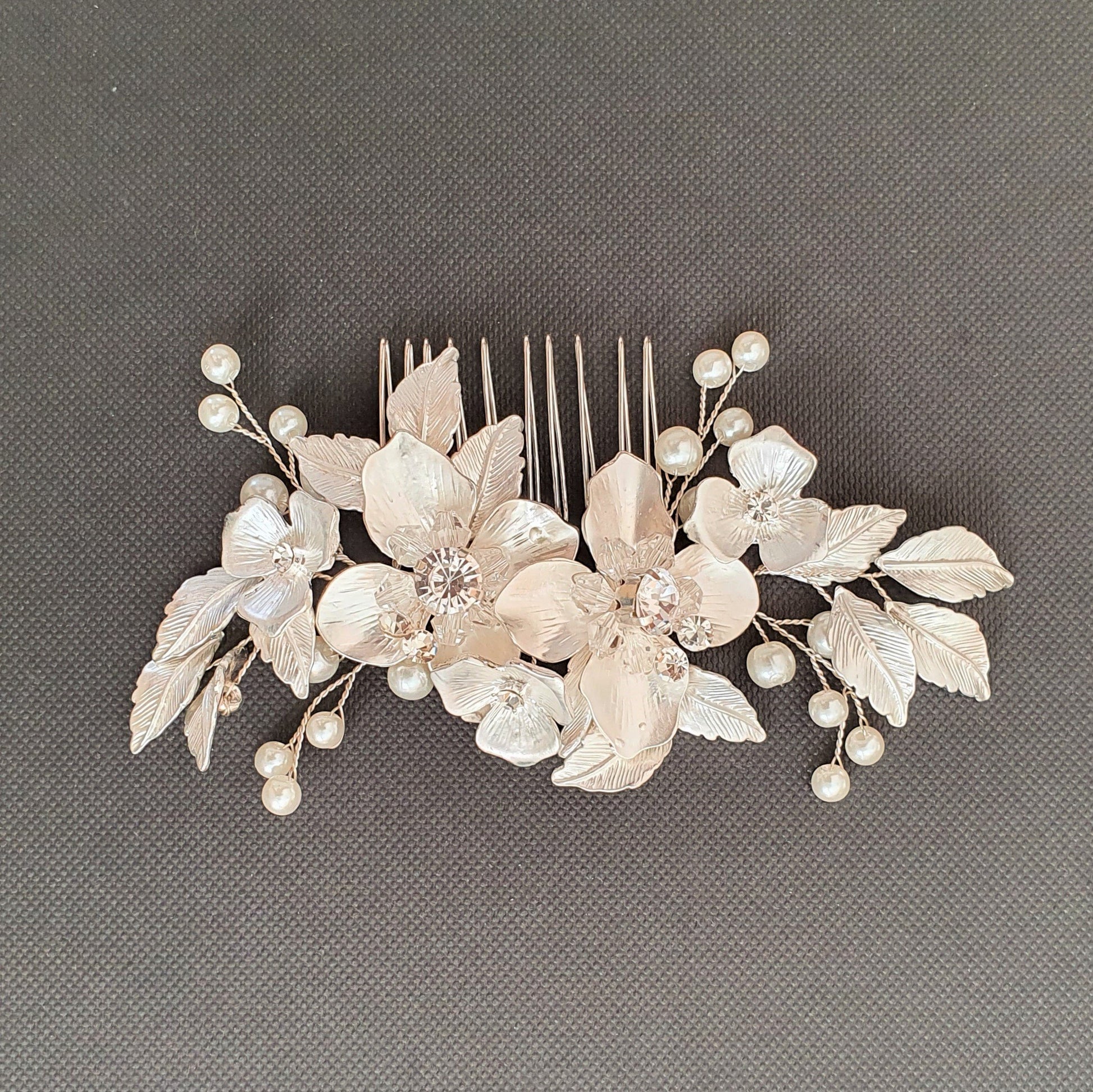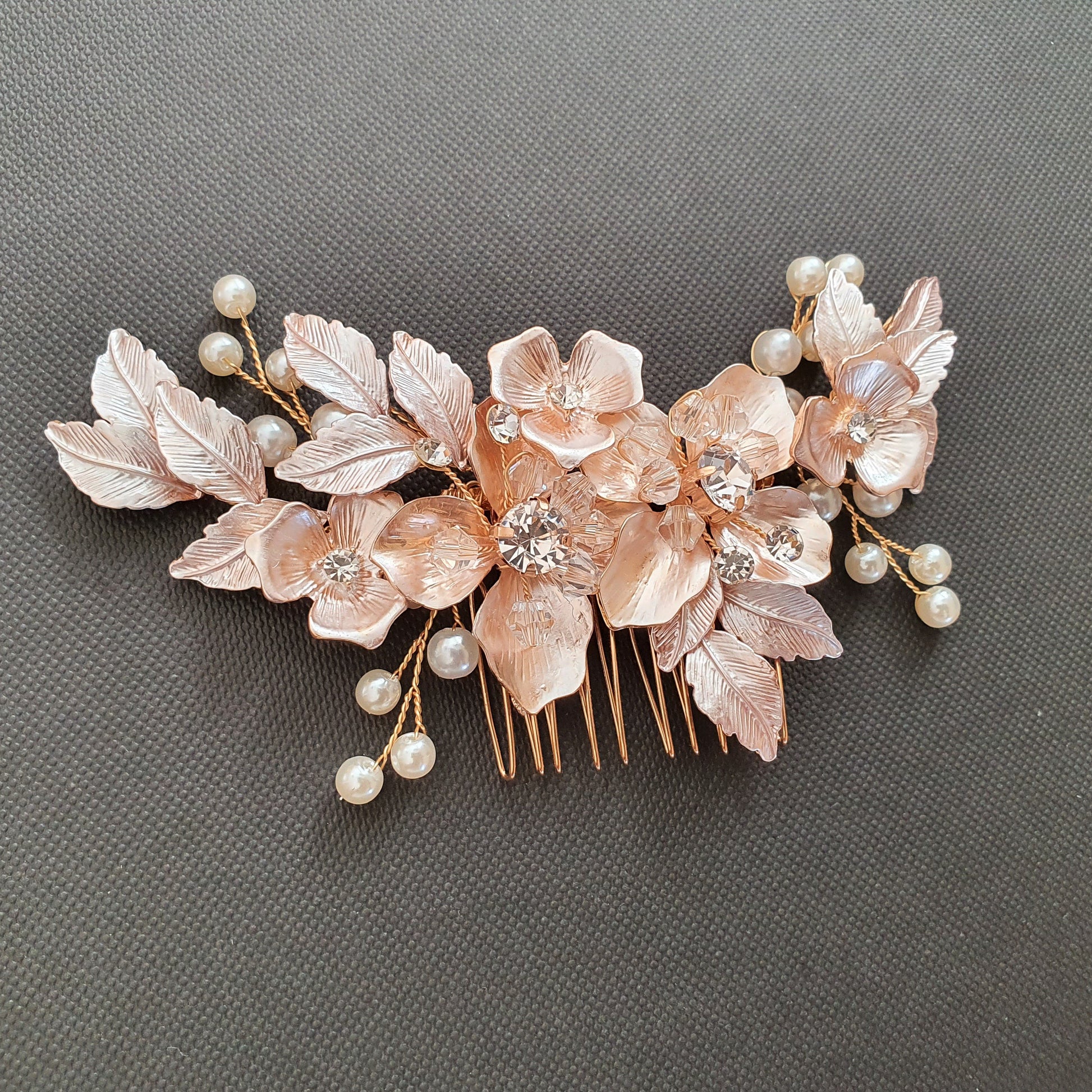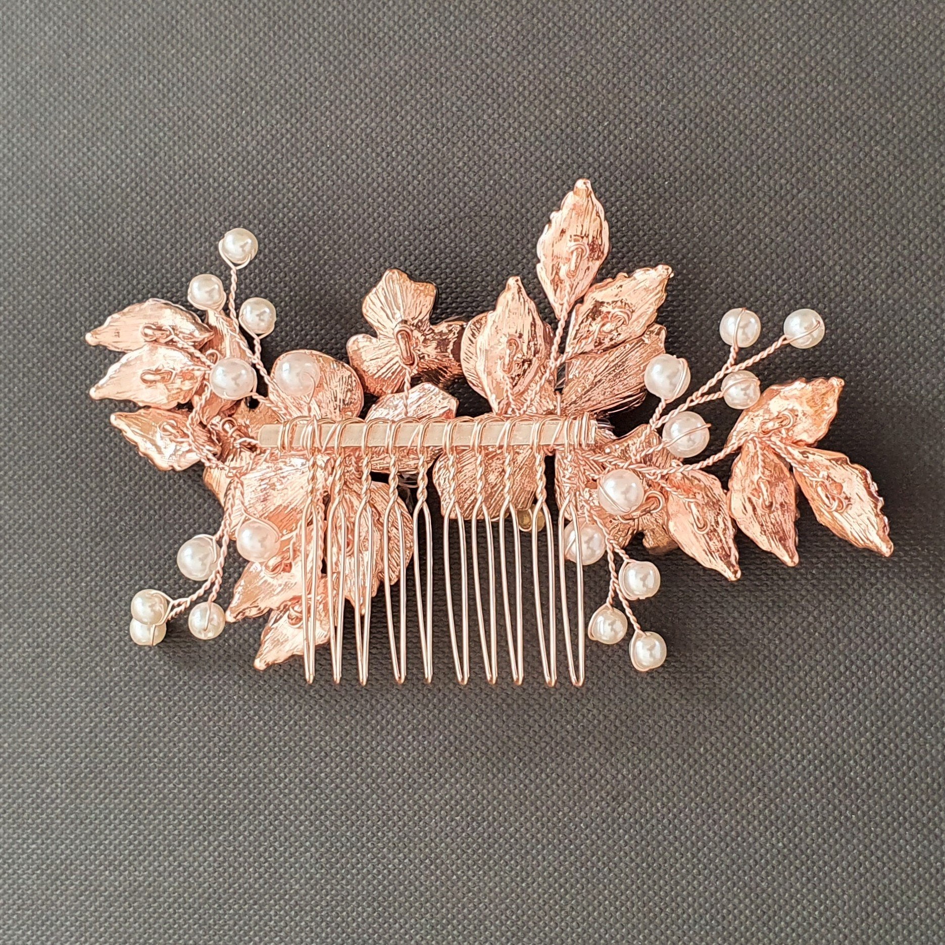 Gold Hair Comb with Flower and Leaf Petals for Weddings