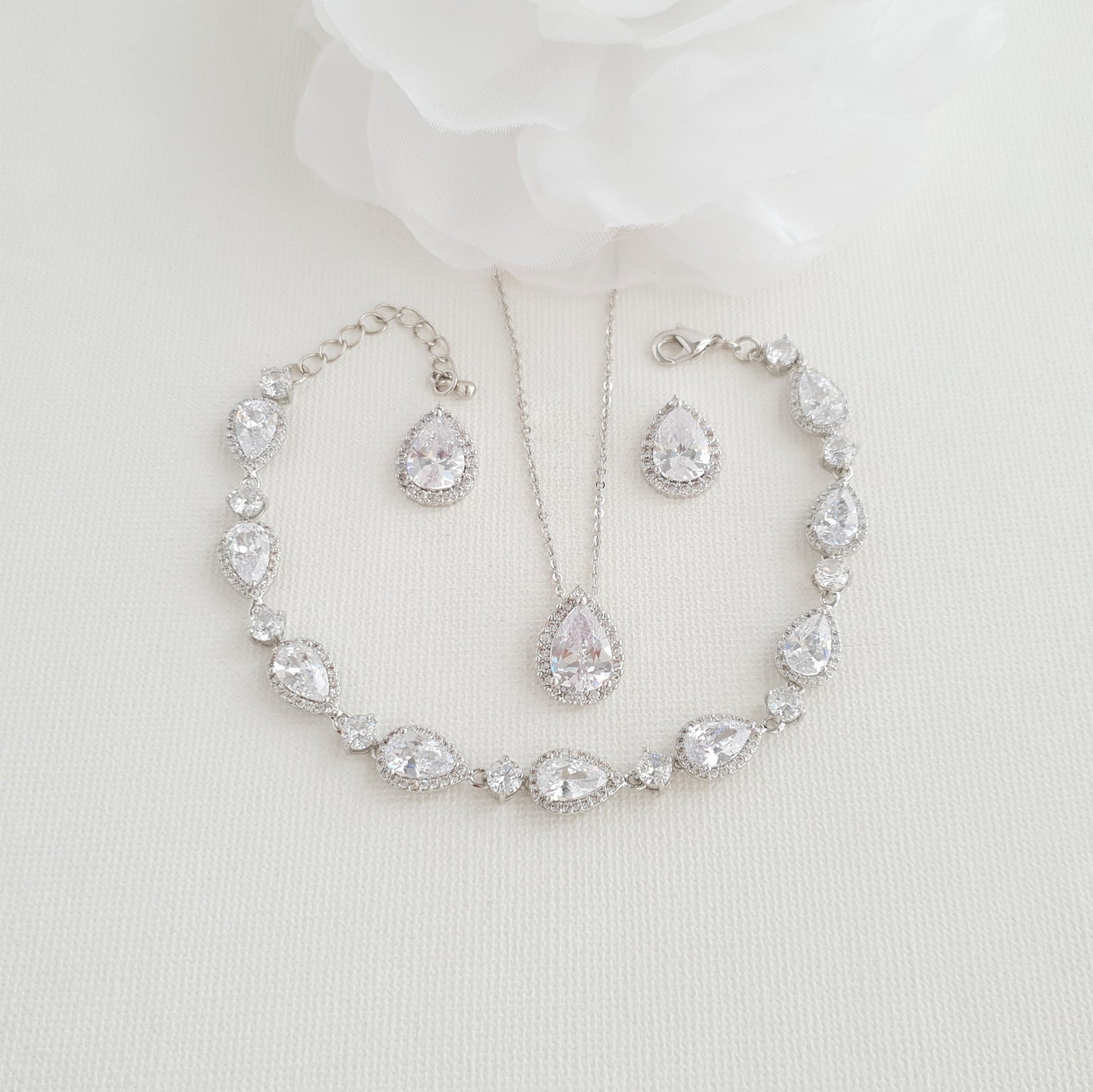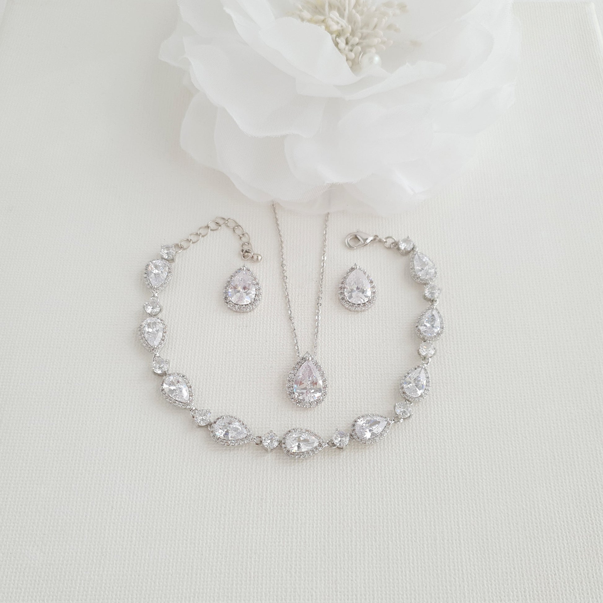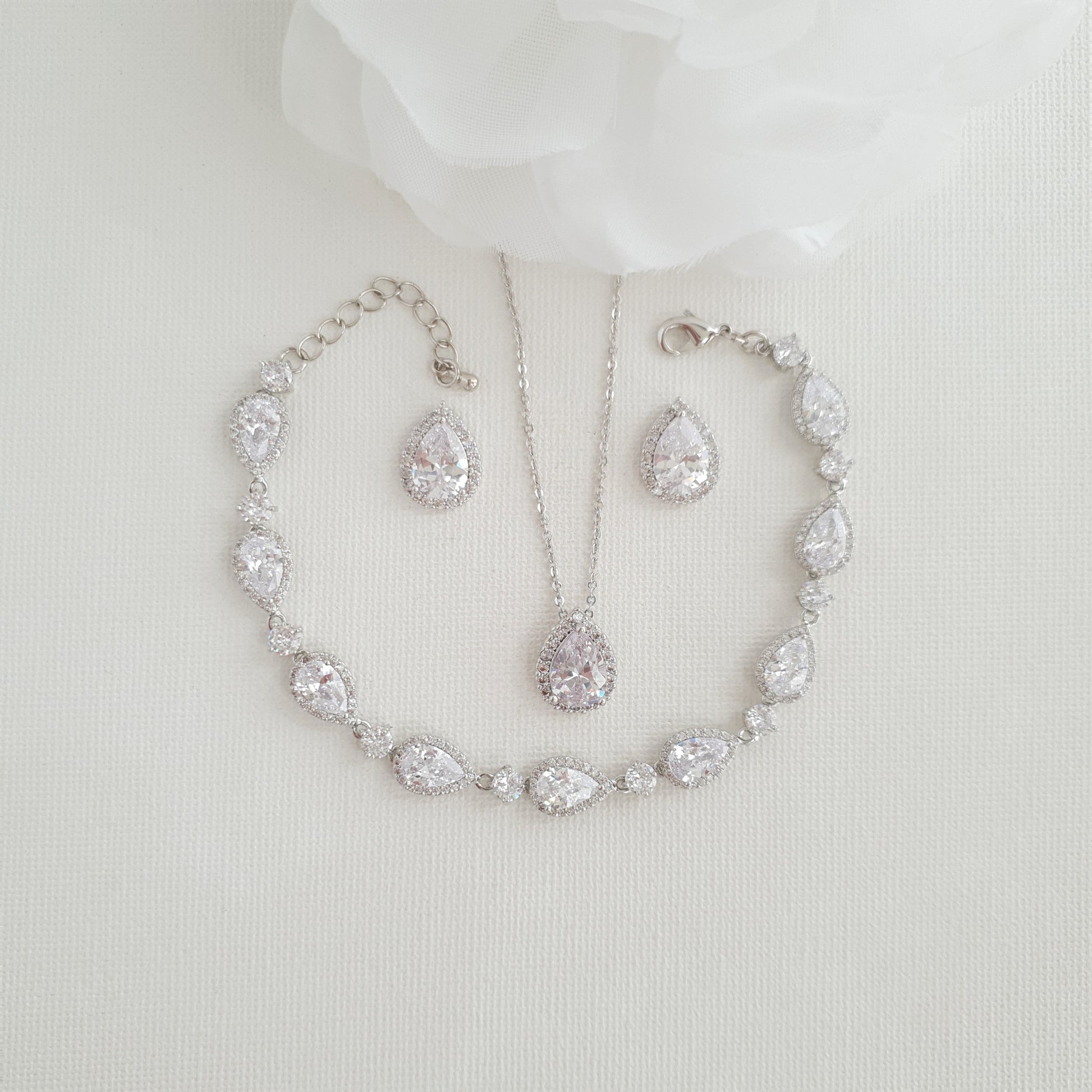 Bracelet:-The teardrop bracelet matches the necklace and earrings; however, smaller teardrop crystals give it a slim and elegant design. The bracelet is available in three sizes 6' inches, 6.5" inches, and 7" inches, with a 1/4 of an inch (approx.) or 3 cm.
