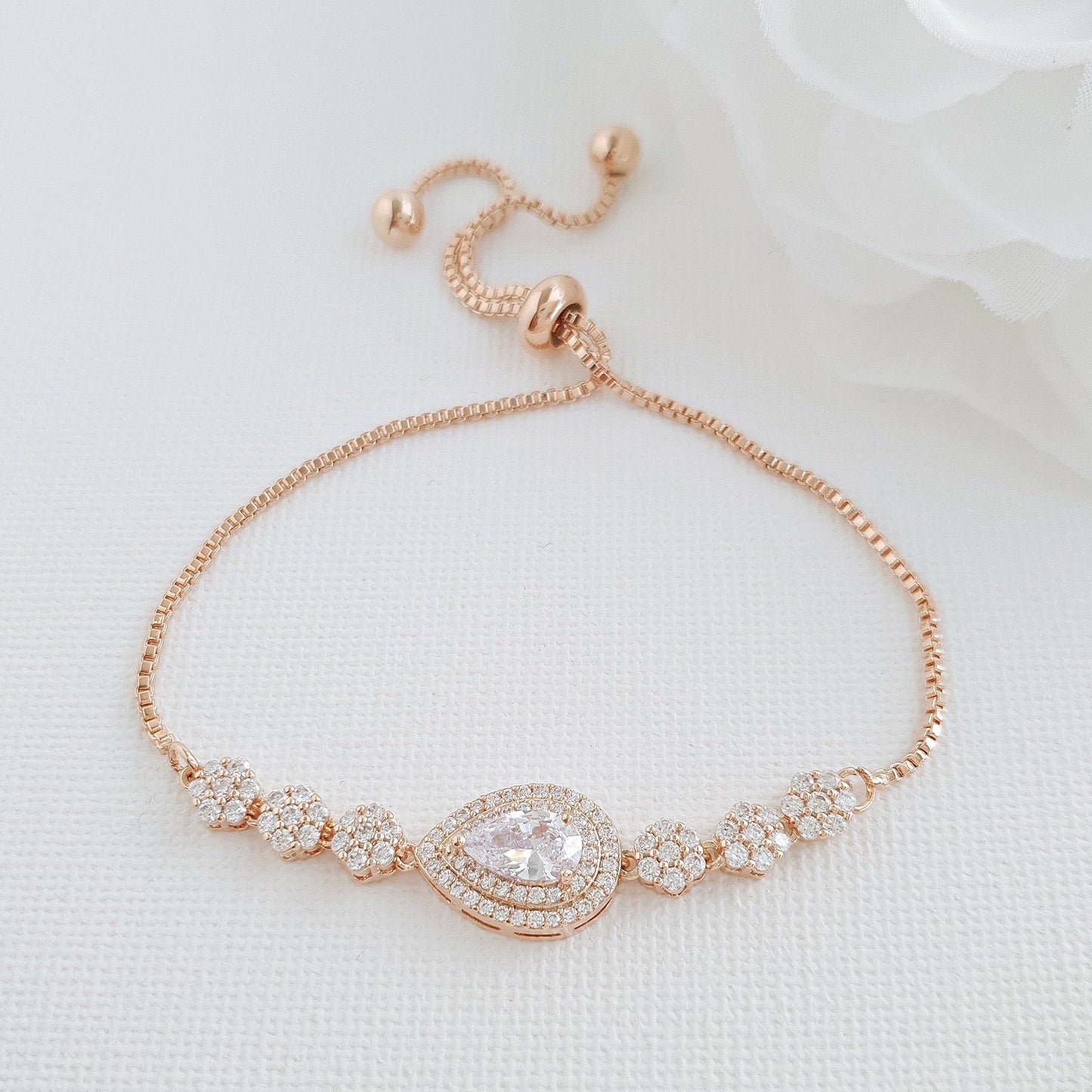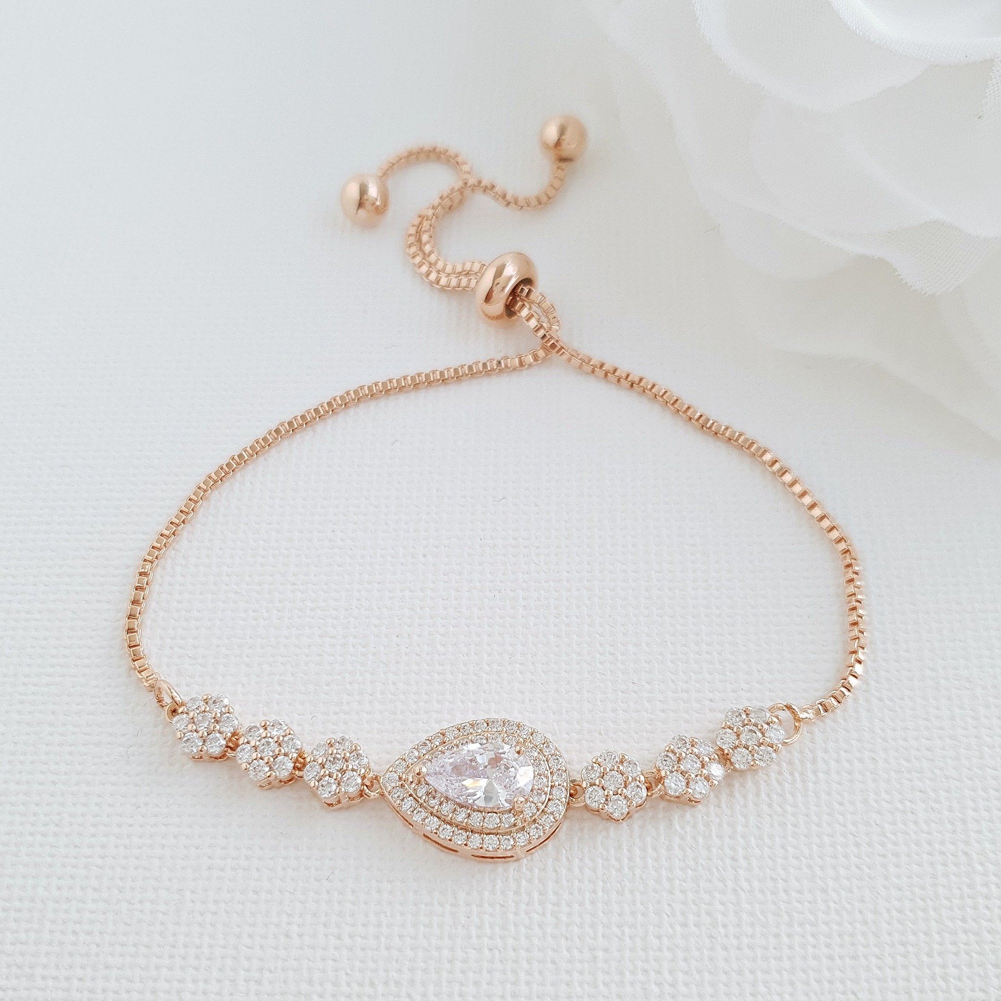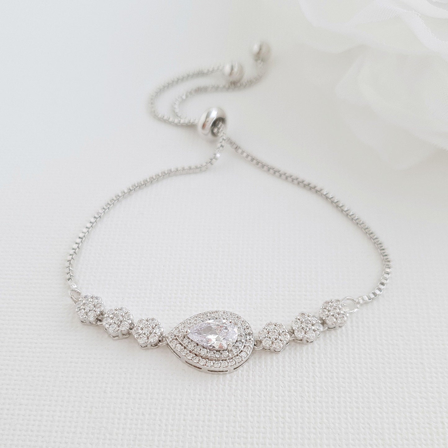 These beautiful & shiny wedding slider clasp bracelets are perfect for brides, bridesmaids & women to instantly add some glamour. This sliding bracelet design is comfortable with a secure fit for both small and big wrist sizes.