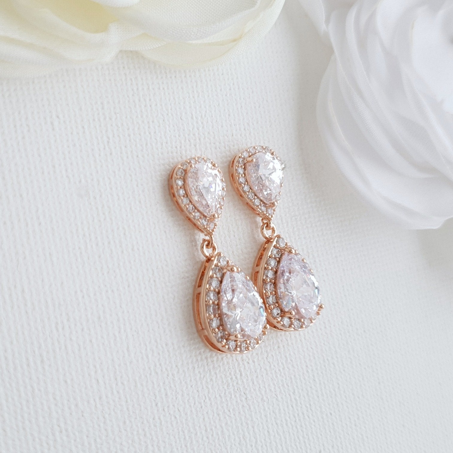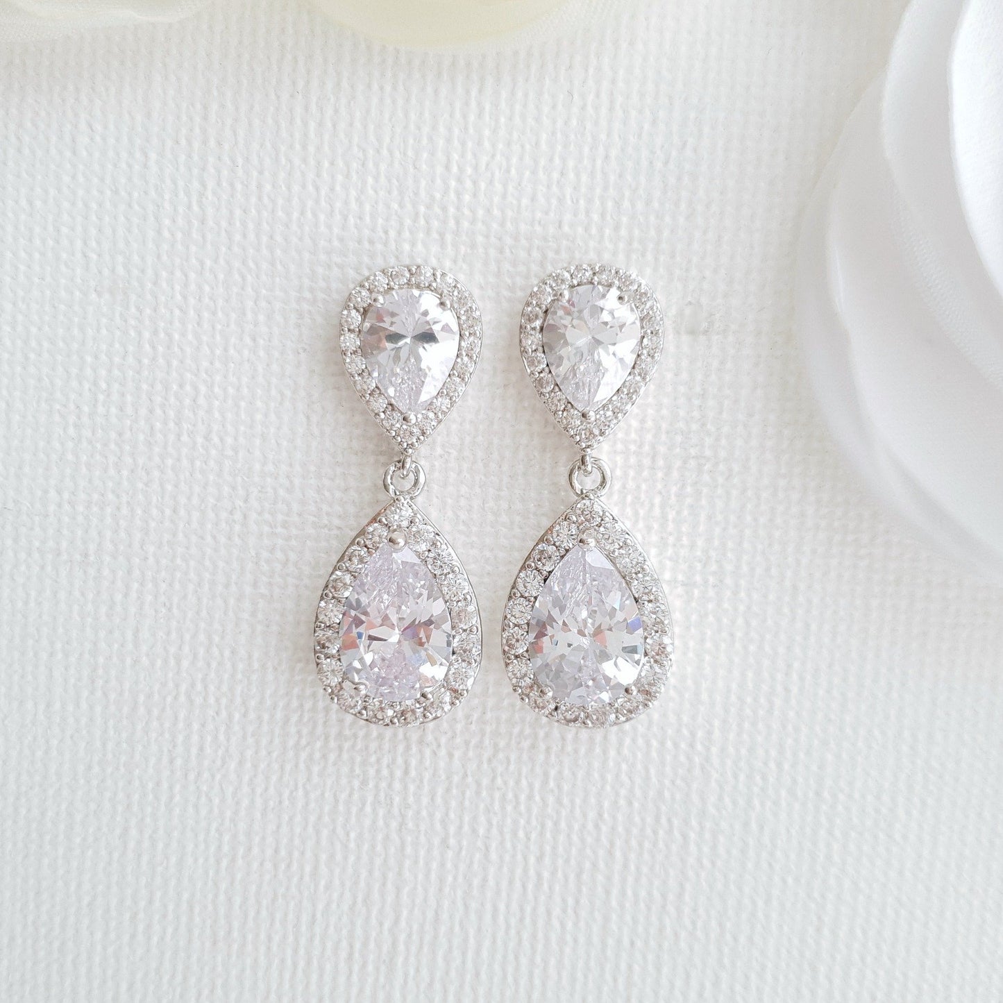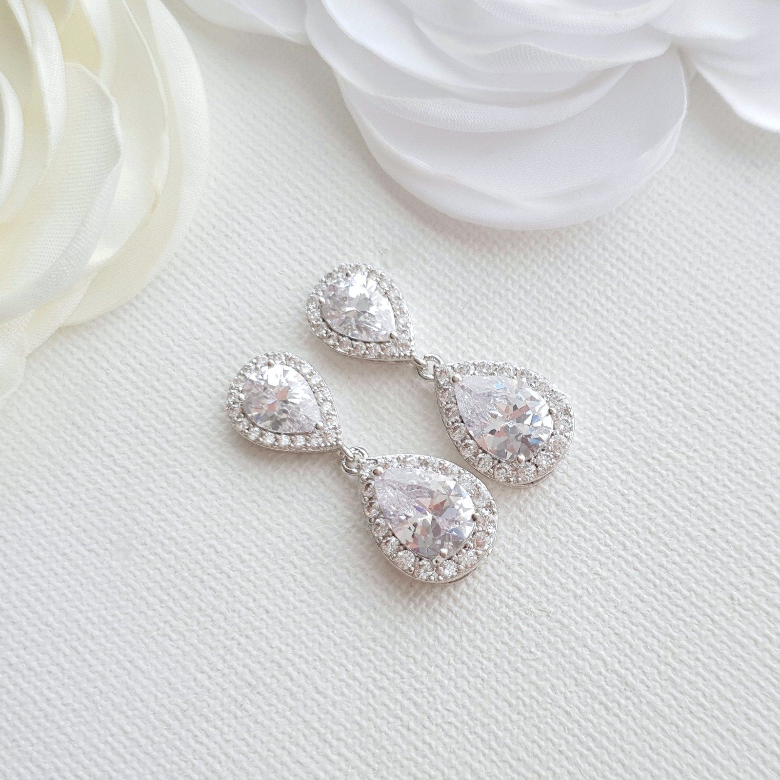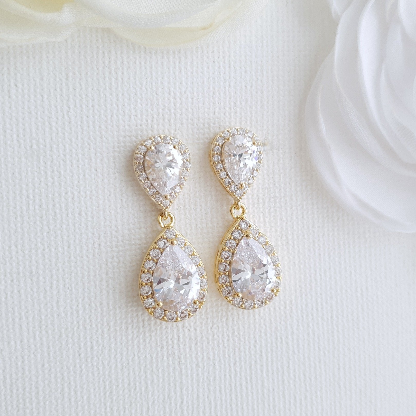 Cubic Zirconia 14K Gold Teardrop Bridal Earrings