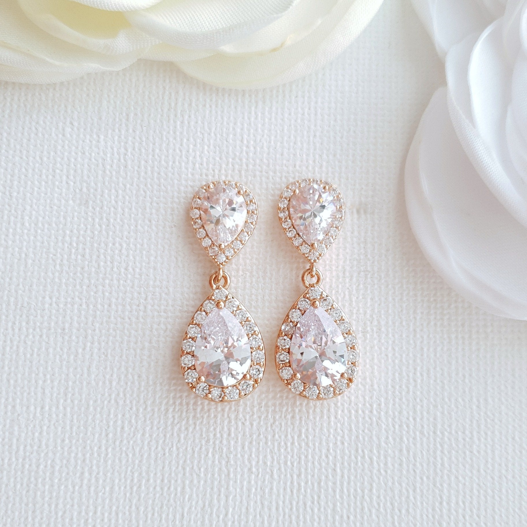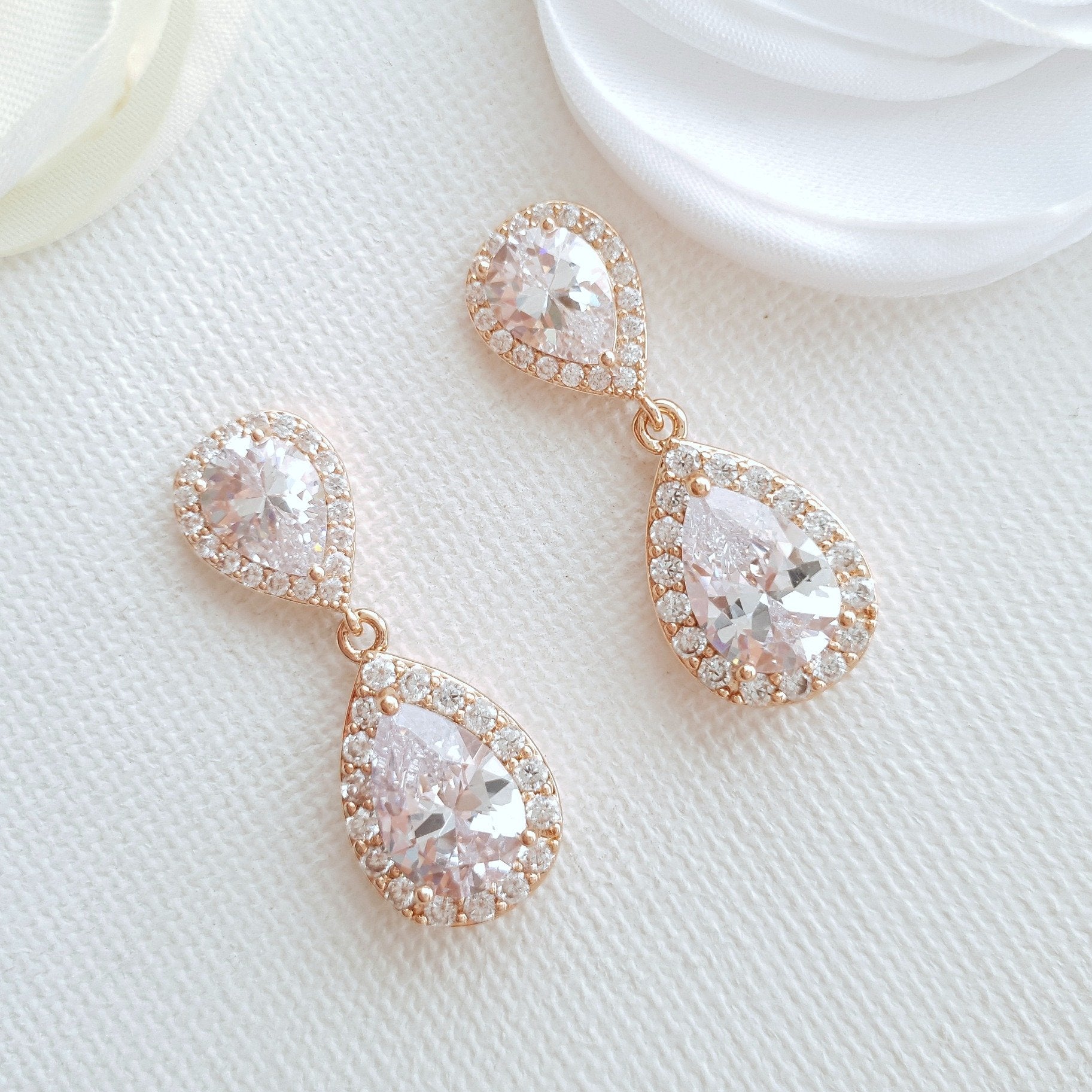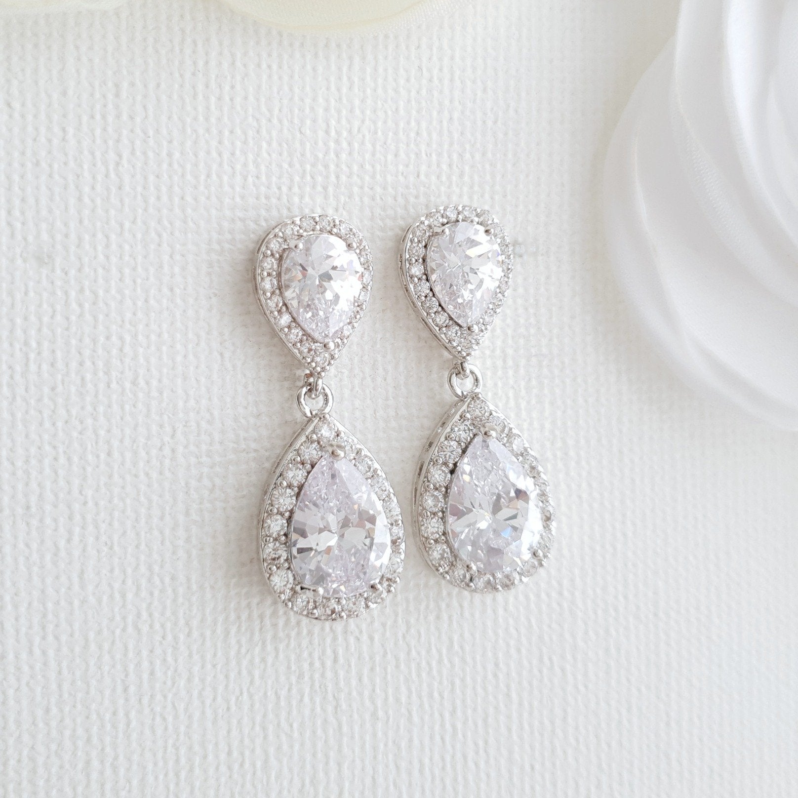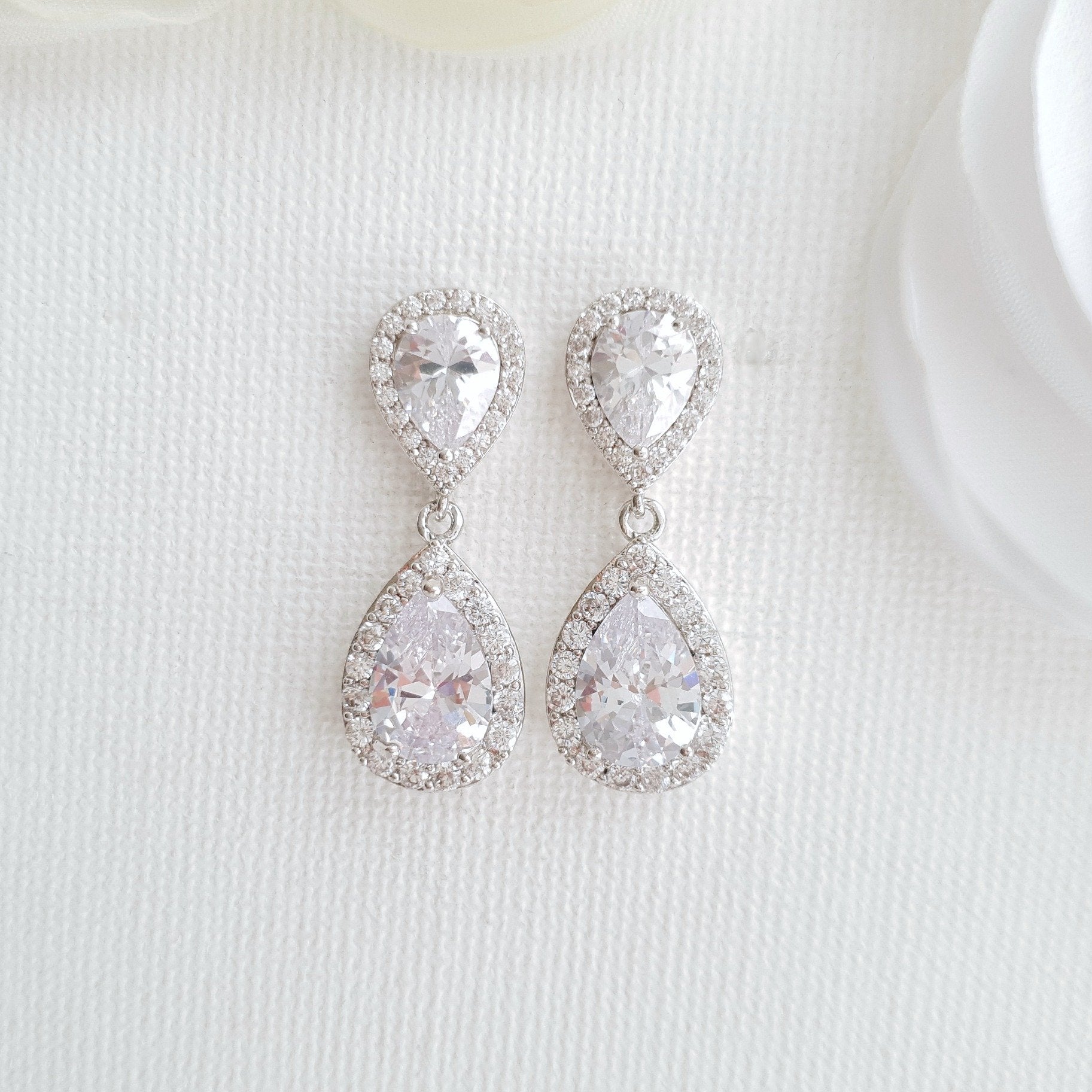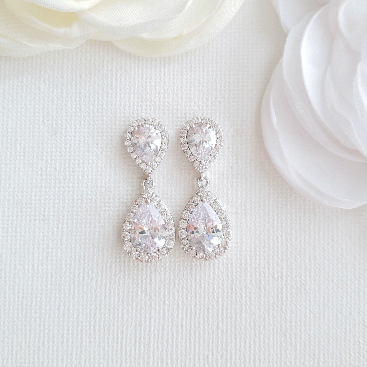 Cubic Zirconia 14K Gold Teardrop Bridal Earrings