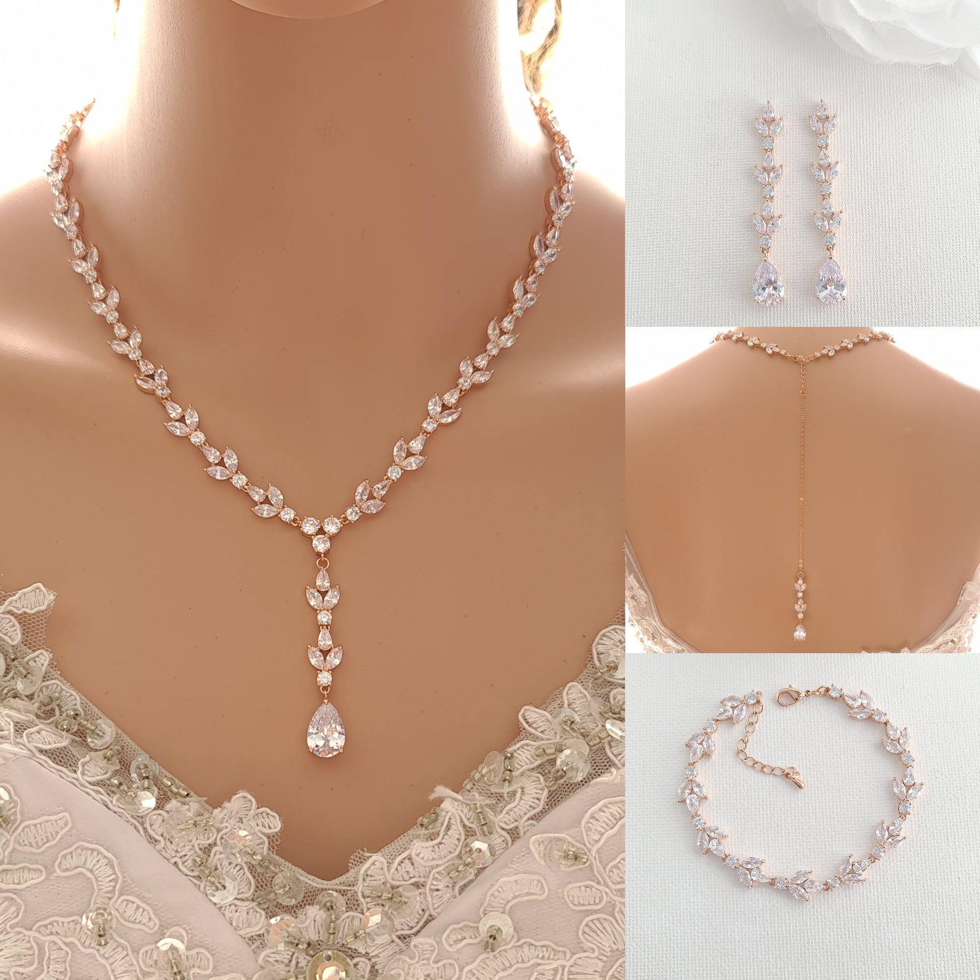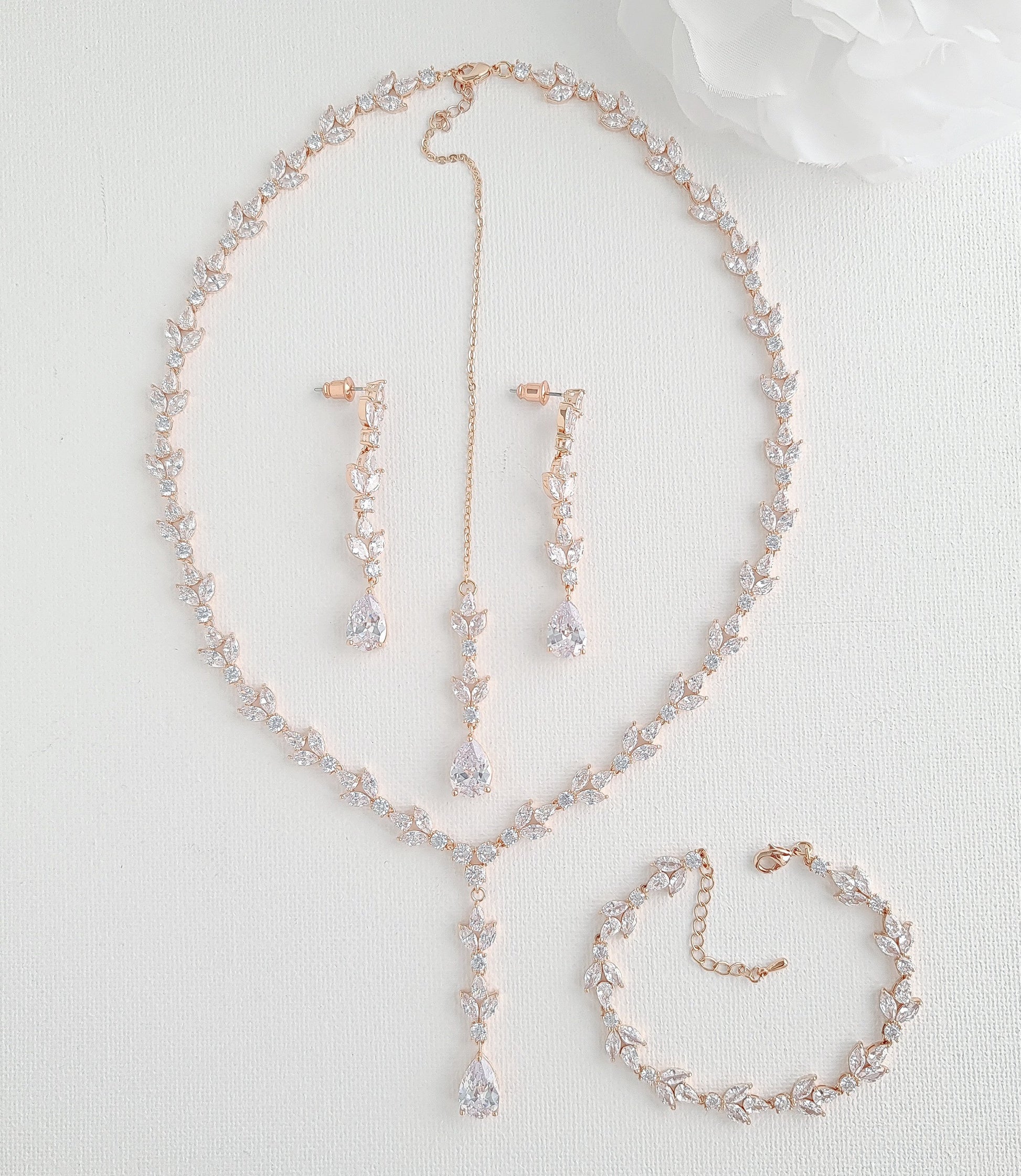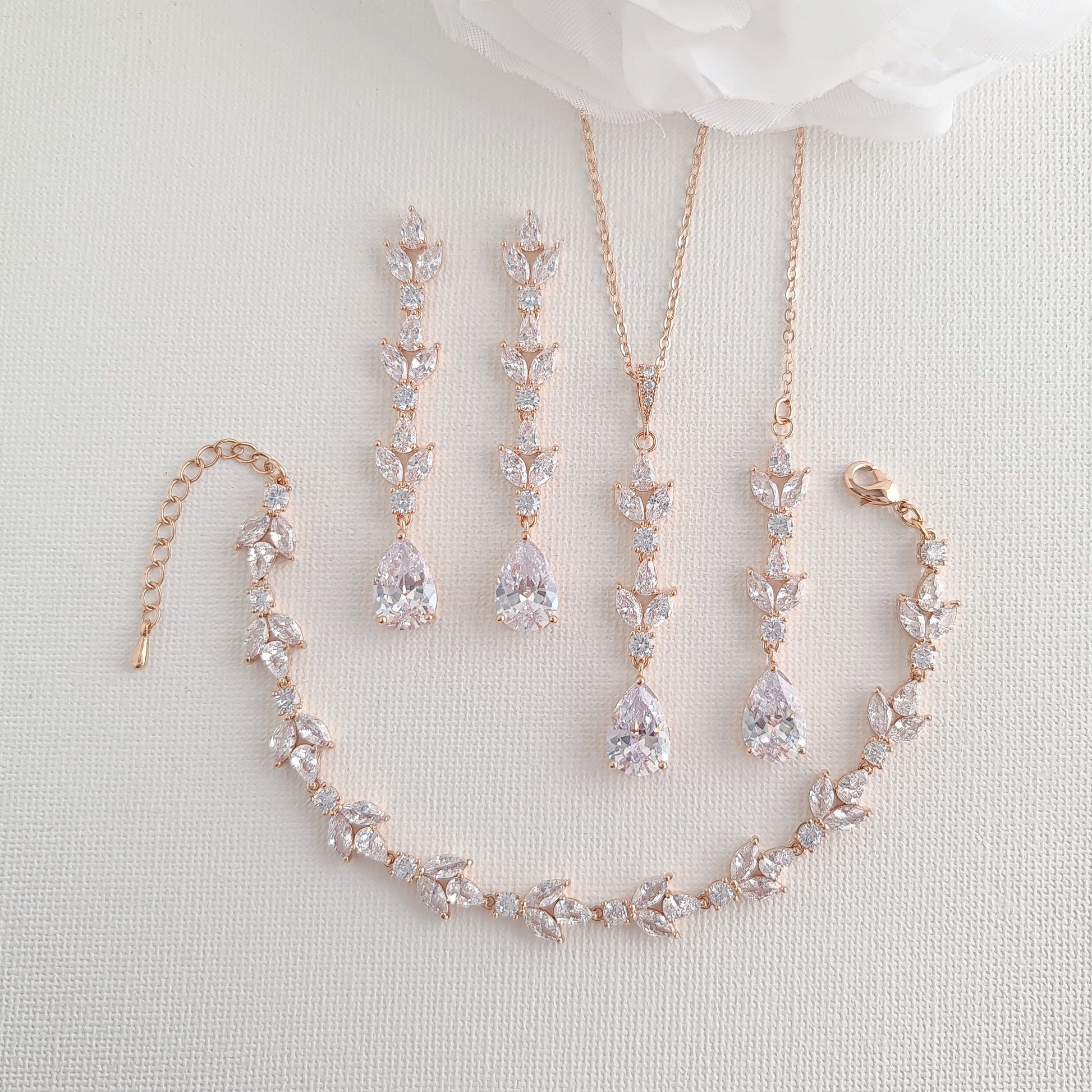 Jewelry Set for Brides in Rose Gold and Cubic Zirconia-Anya