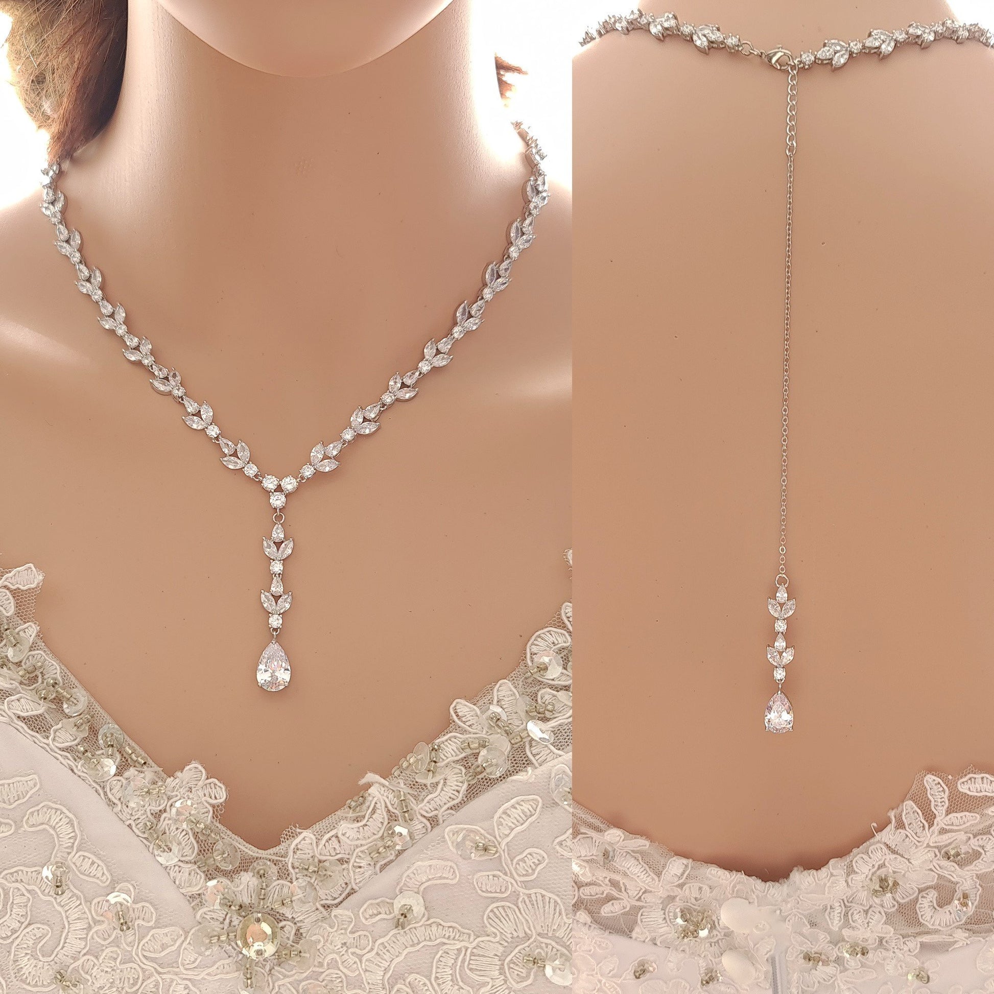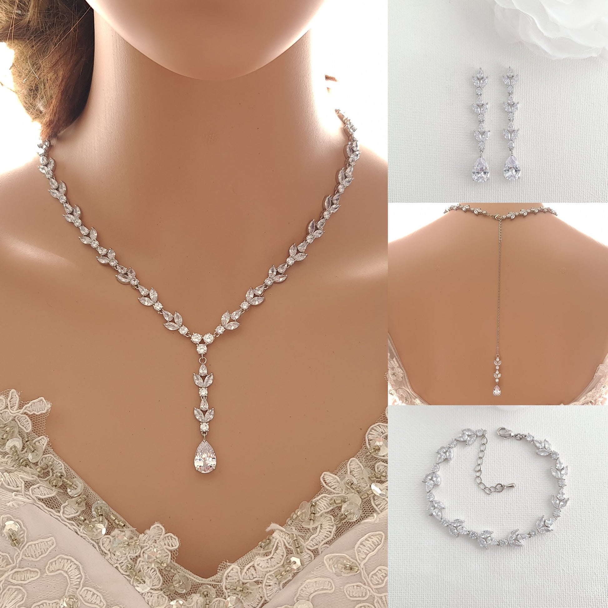 Necklace- A full and sparkly cubic zirconia necklace is also available with an elegant backdrop if you need jewelry for your back. A luxurious necklace to keep and wear at every opportunity for some glam and glitter.
