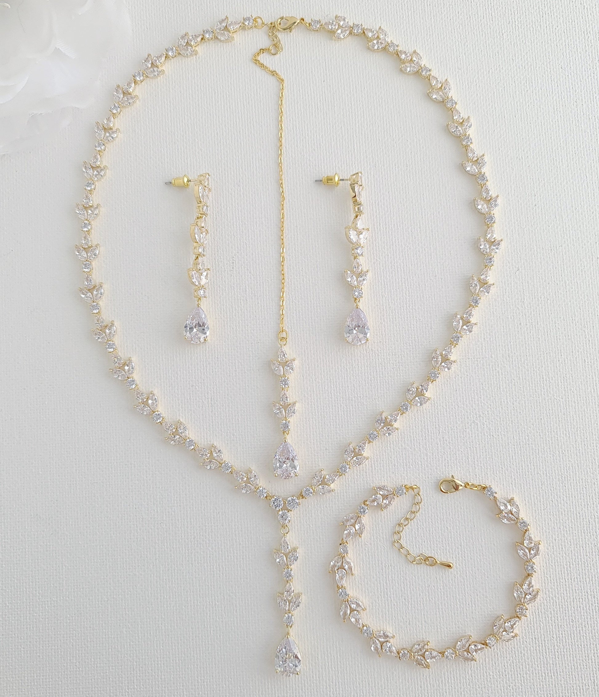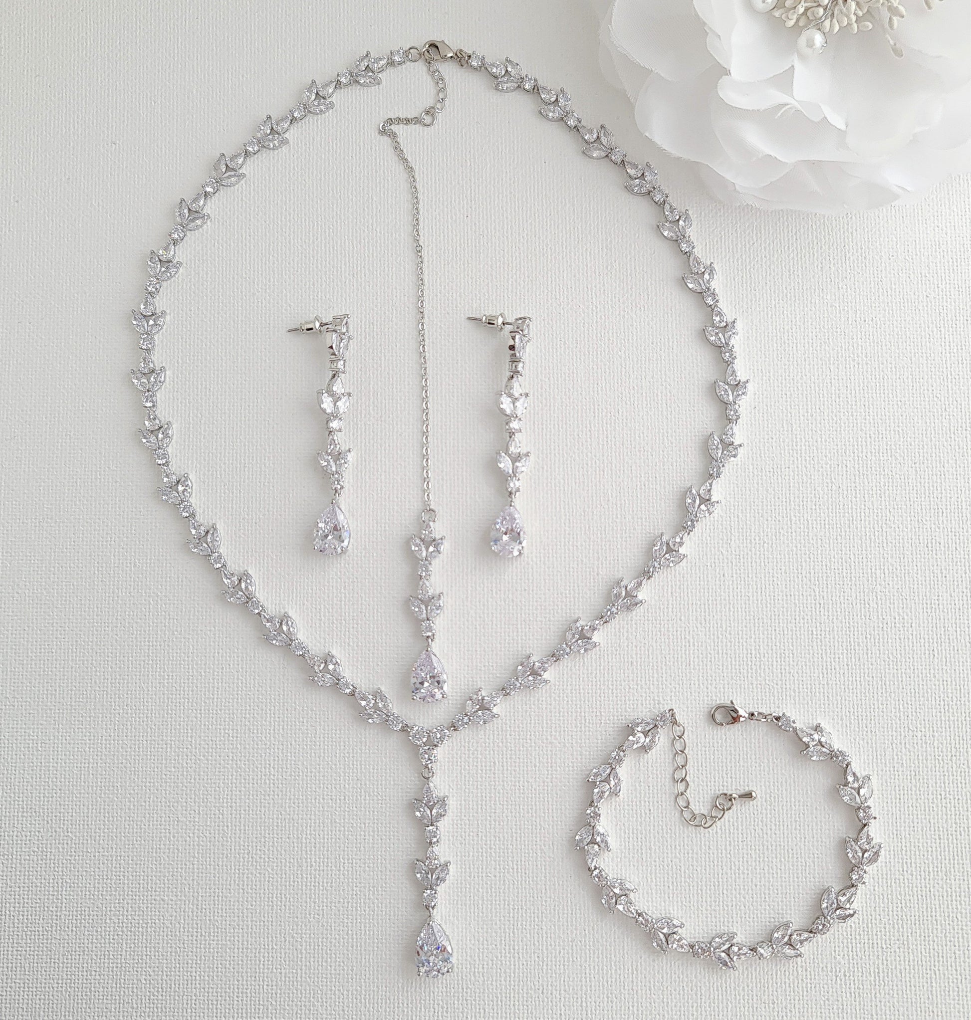 Bracelet- Matching the necklace the bracelet is also made of sparkling cubic zirconia that will complement your complete bridal and evening look. Fits firmly and is adjustable on your wrist with a lobster clasp, also has an extension chain to fit wrist sizes up to 1.18 inches or 3 cms.