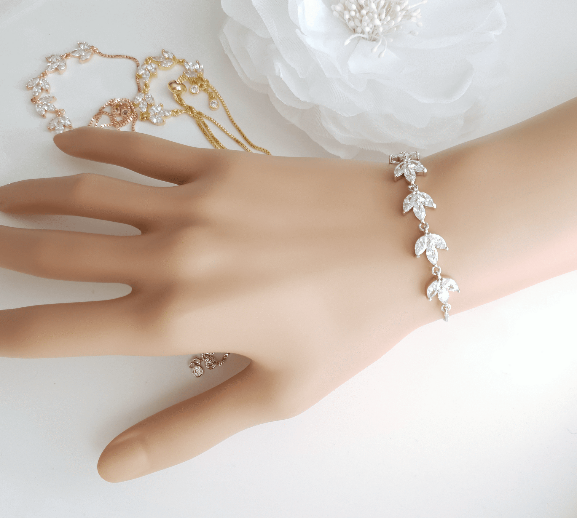 This beautiful jewelry set for brides is in a simple design to ensure that you are able to wear jewelry that is just right and does not overpower any of the other aspects. The bridal jewelry set consists of 3 pieces of dangly earrings, a necklace with or without a backdrop, and a matching bracelet. This simple jewelry set adds a sparkly and fine touch with your wedding dress and wedding day look. This set is available in three finishes of rose gold, silver, gold tones/ platings. Detail description and measurements of each piece of this 3 pcs jewelry set.
