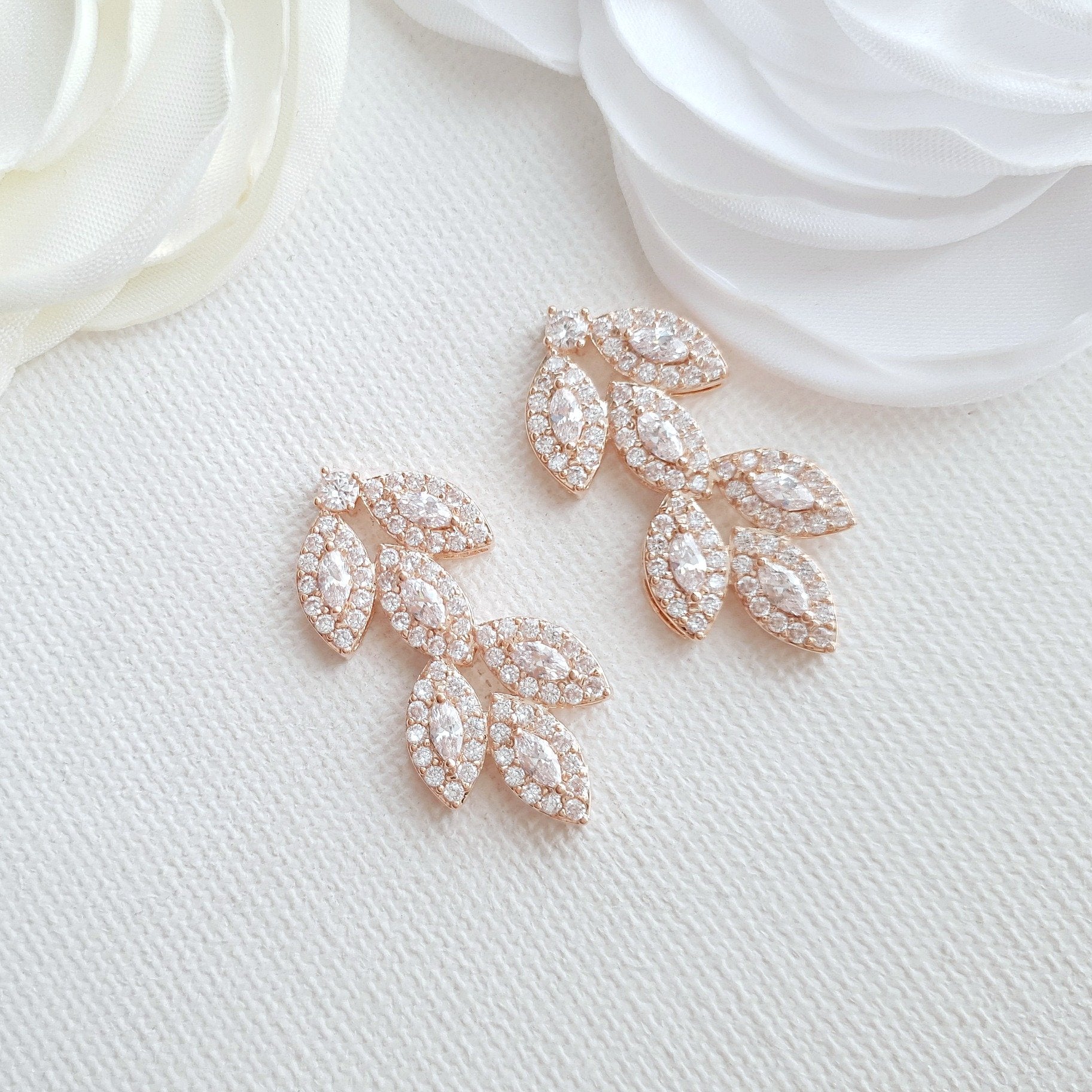 Lovely Leaf Earrings in Cubic Zirconia for Brides & Weddings
