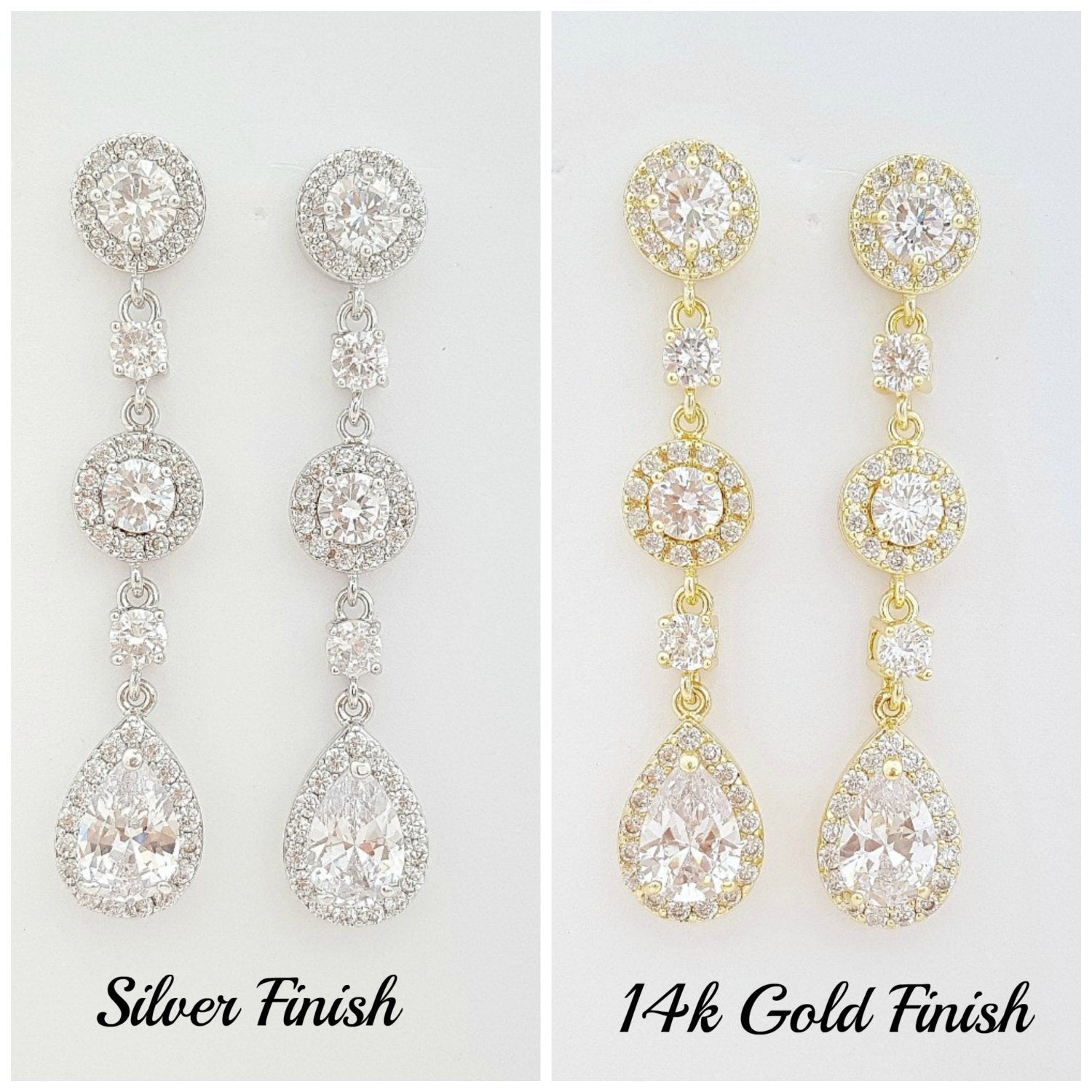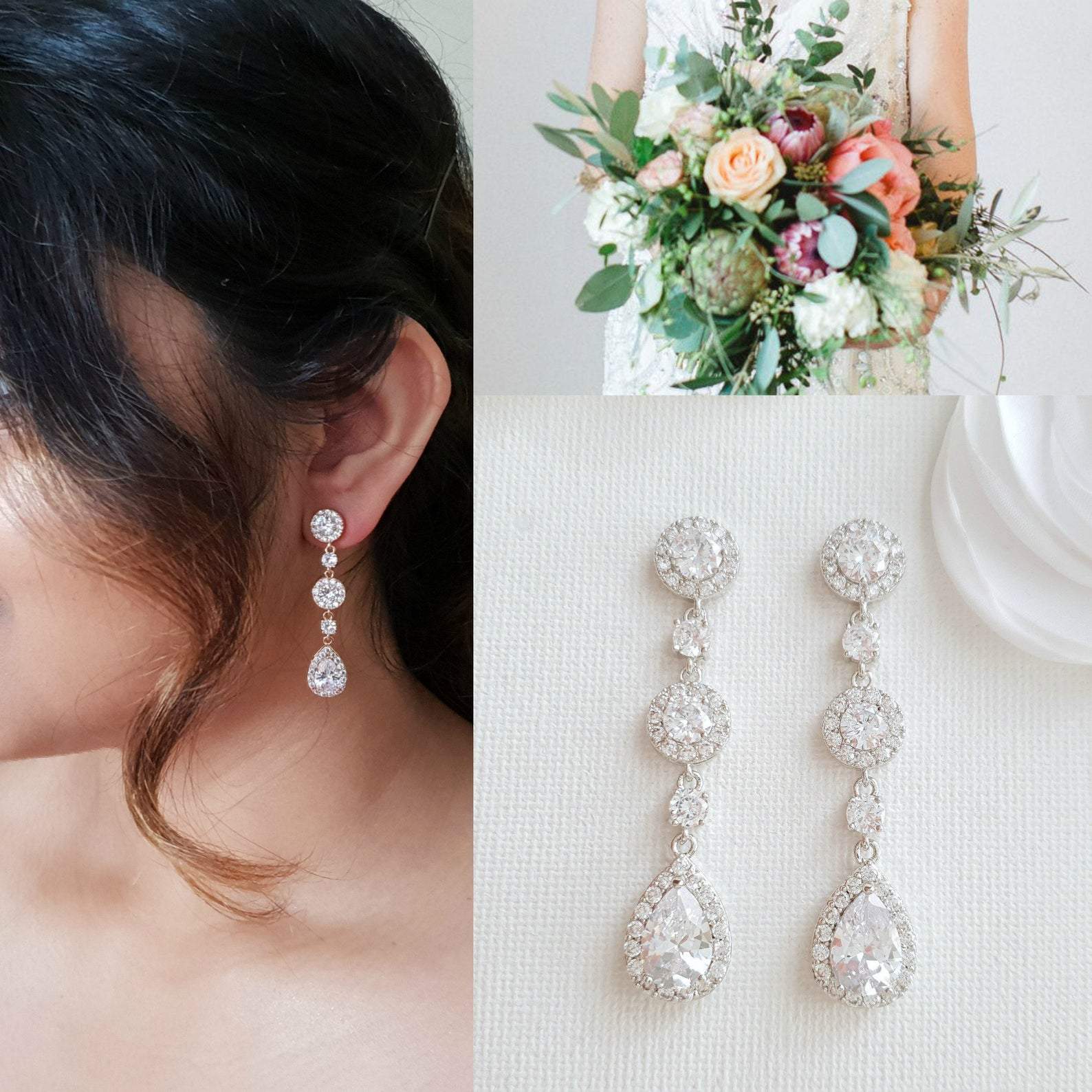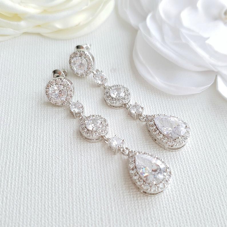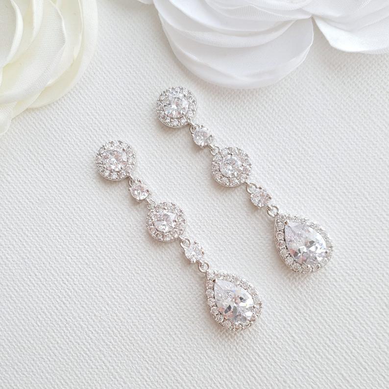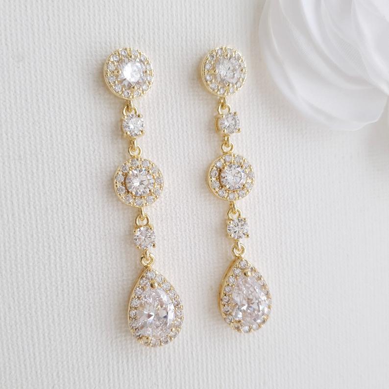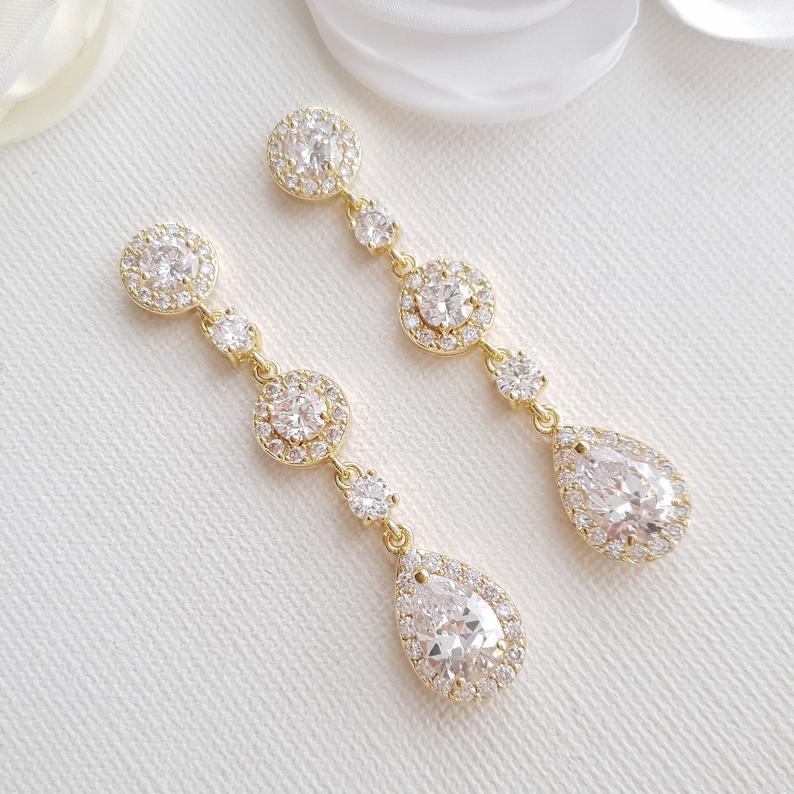 Long Rose Gold Crystal Teardrop Earrings for Brides