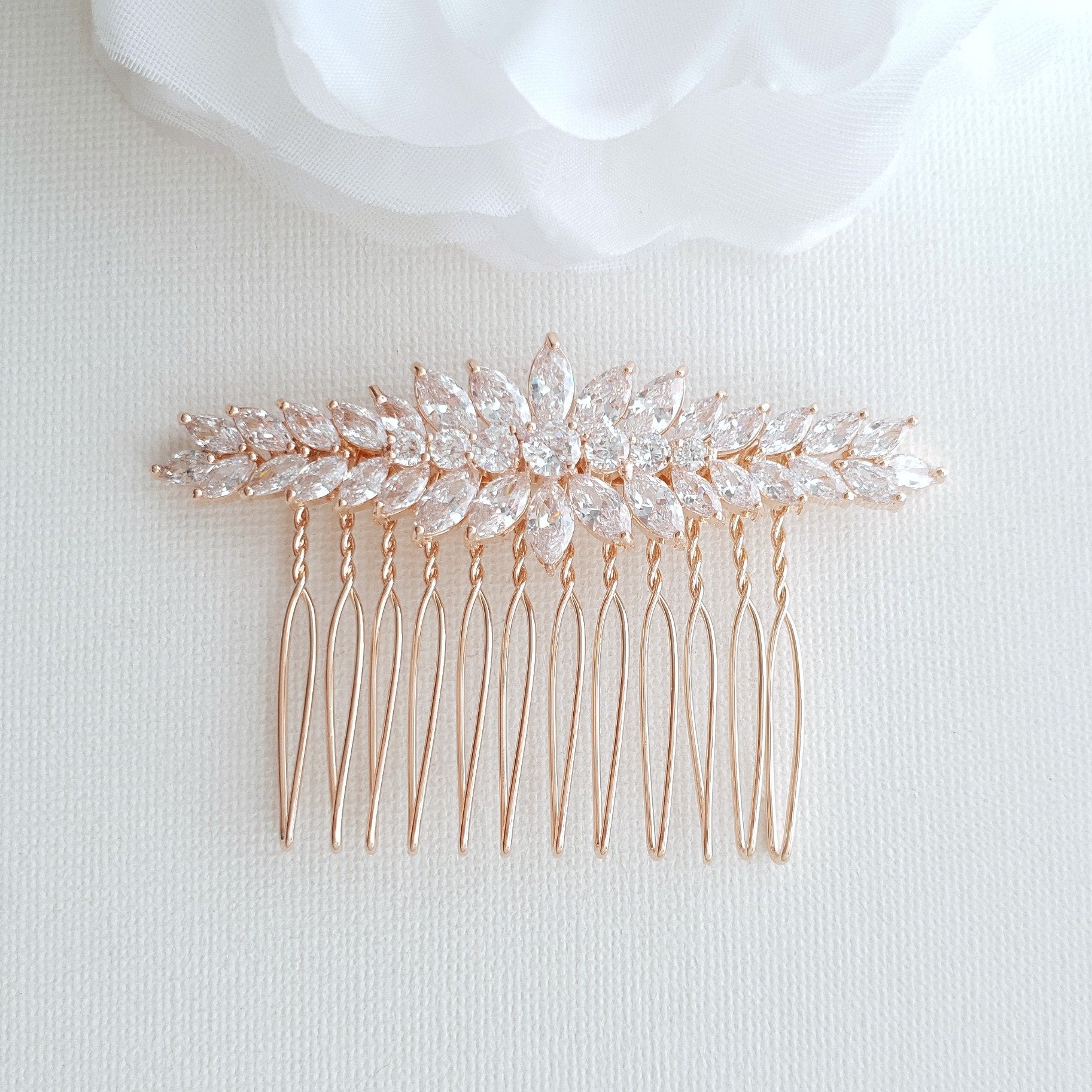 Marquise Hair Comb for Brides in Rose Gold-Giselle