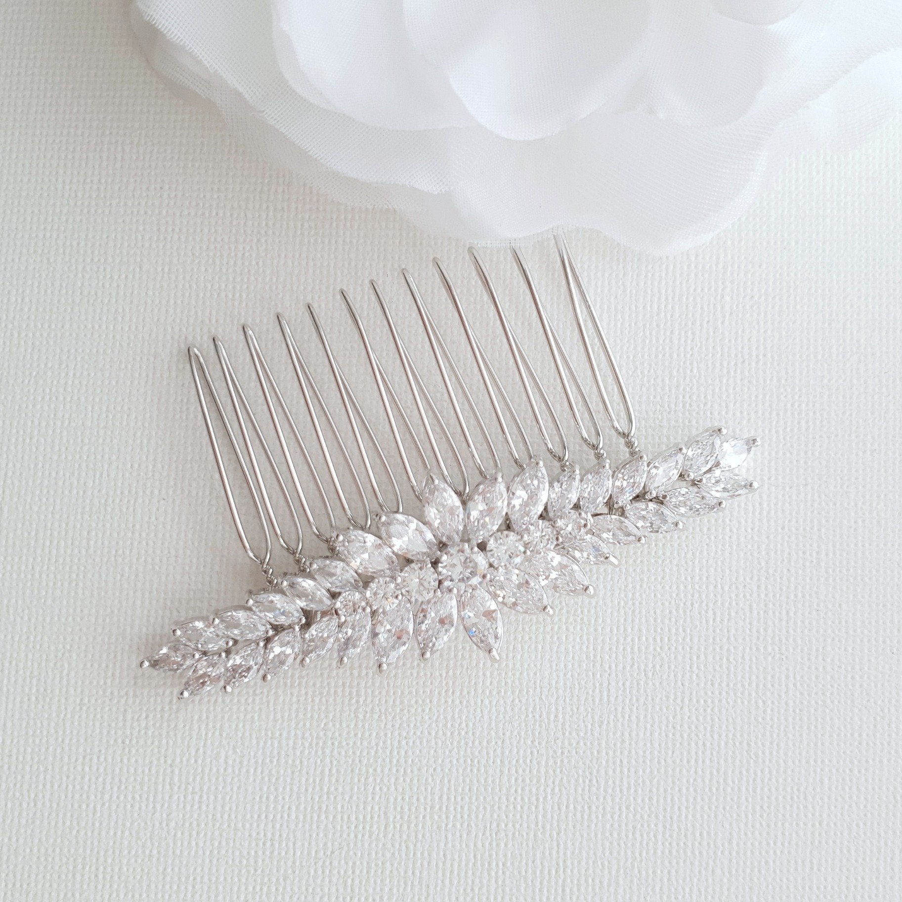 In rose gold color this marquise hair comb is super sparkly, dainty, and perfect for brides. A great hairpiece to seamlessly match with your other marquise jewelry or your wedding ring.